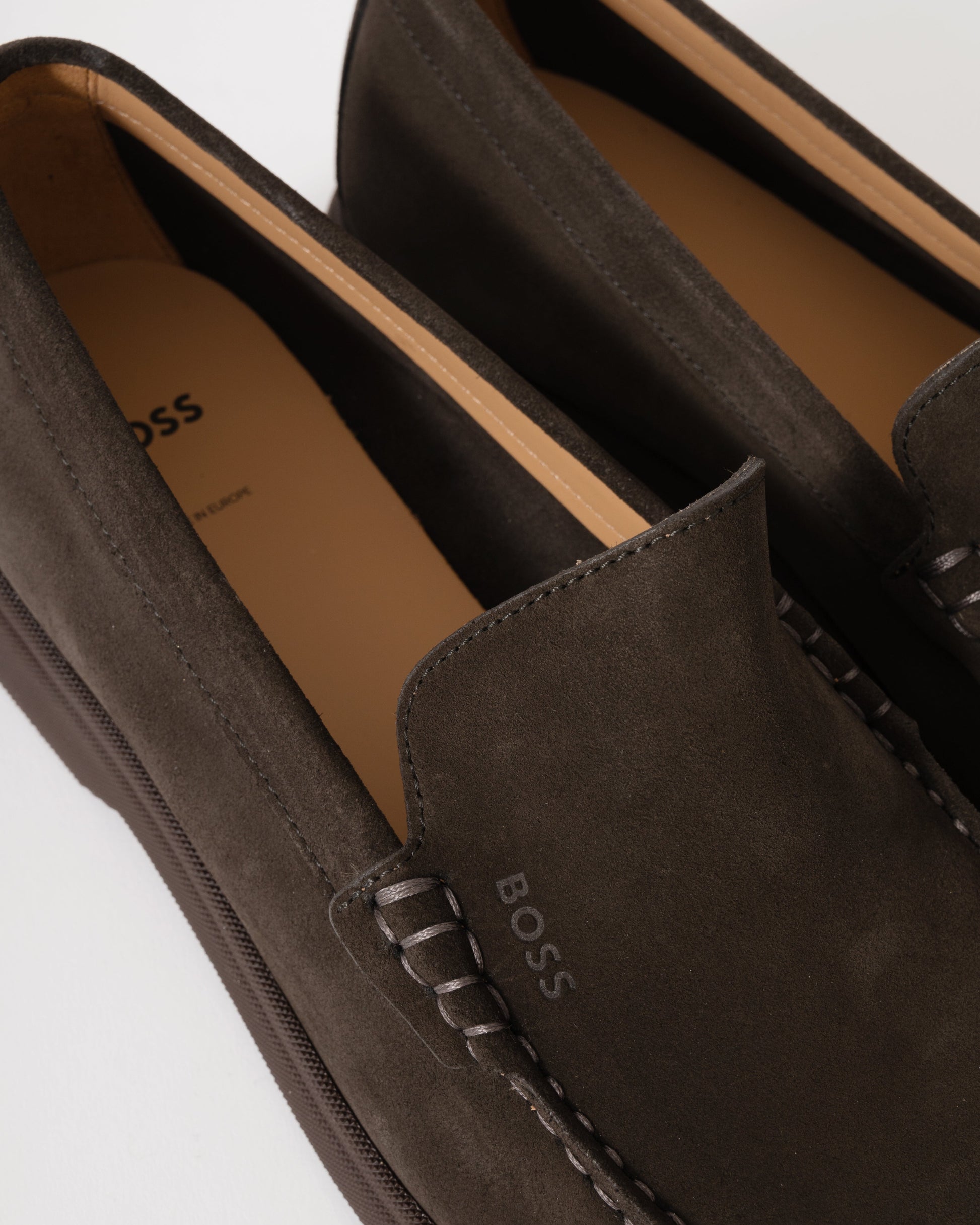 BOSS Orange Sienna Mens Suede Loafers in Dark Brown 203