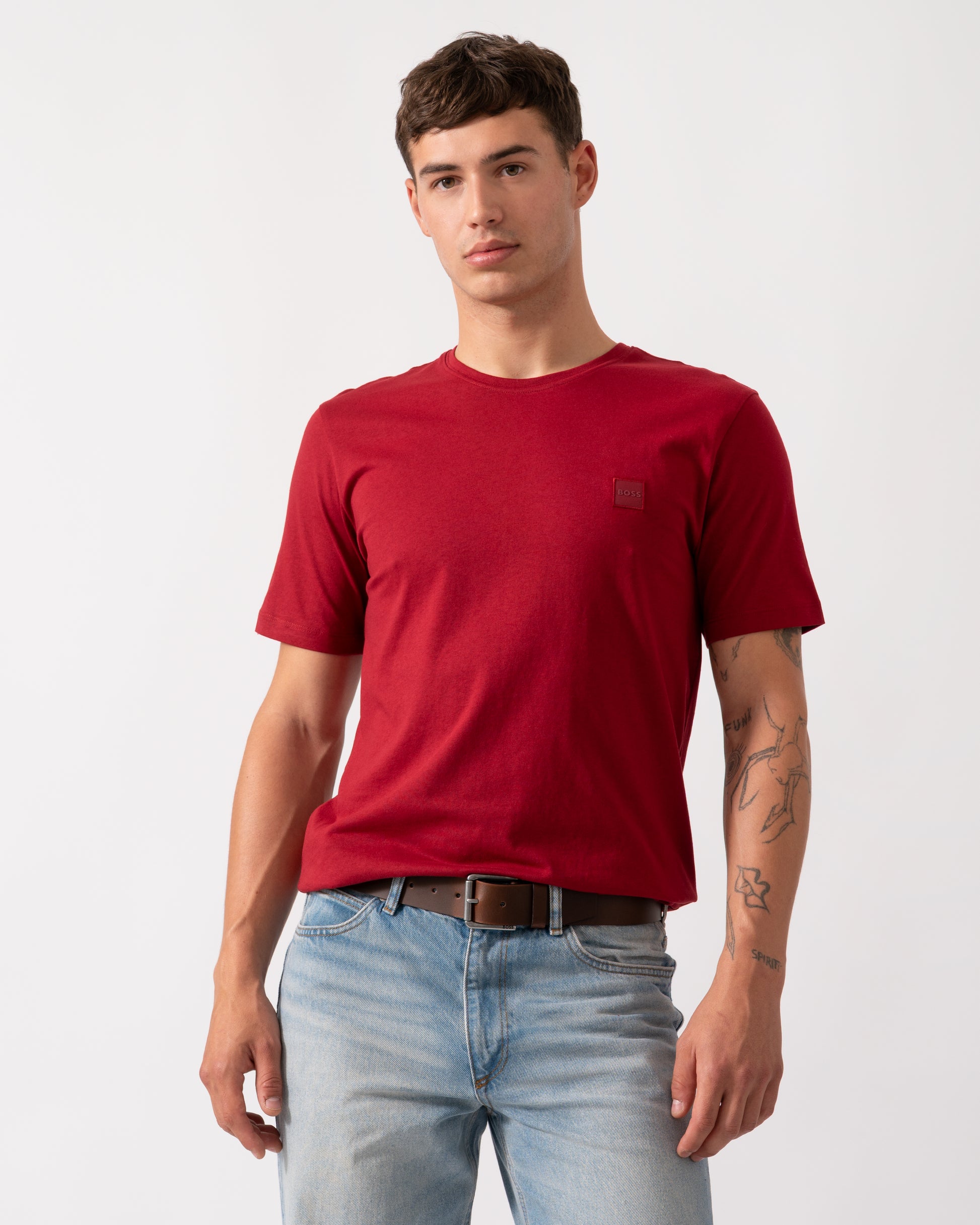 Tales Mens Cotton-Jersey T-shirt With Logo Patch - Medium Red 614