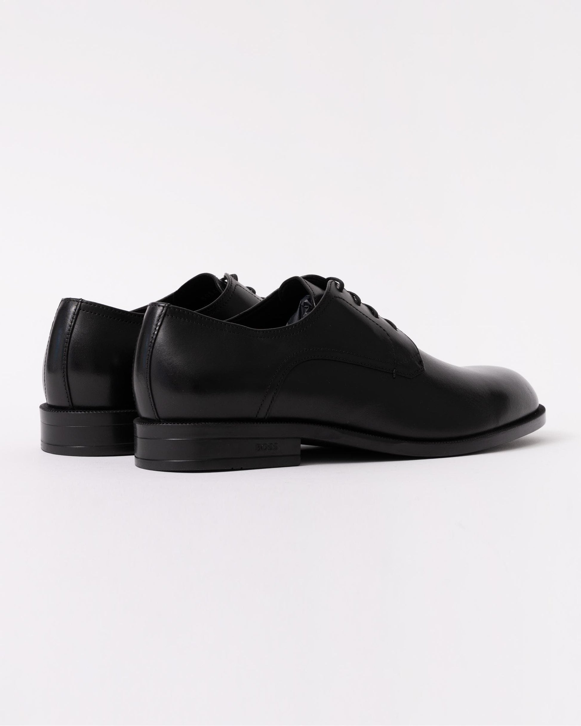 Featuring smooth leather uppers with intricate stitching, these BOSS Menswear Derby shoes are a refined formal touch. Durable heel with embossed logo.