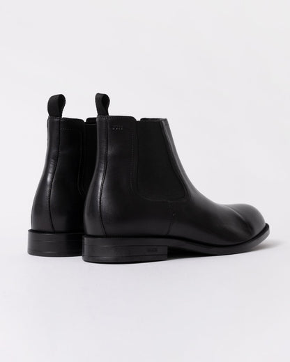 Distinctive Chelsea boots by BOSS. Featuring signature accents, this pair is crafted in smooth leather with stitching details.