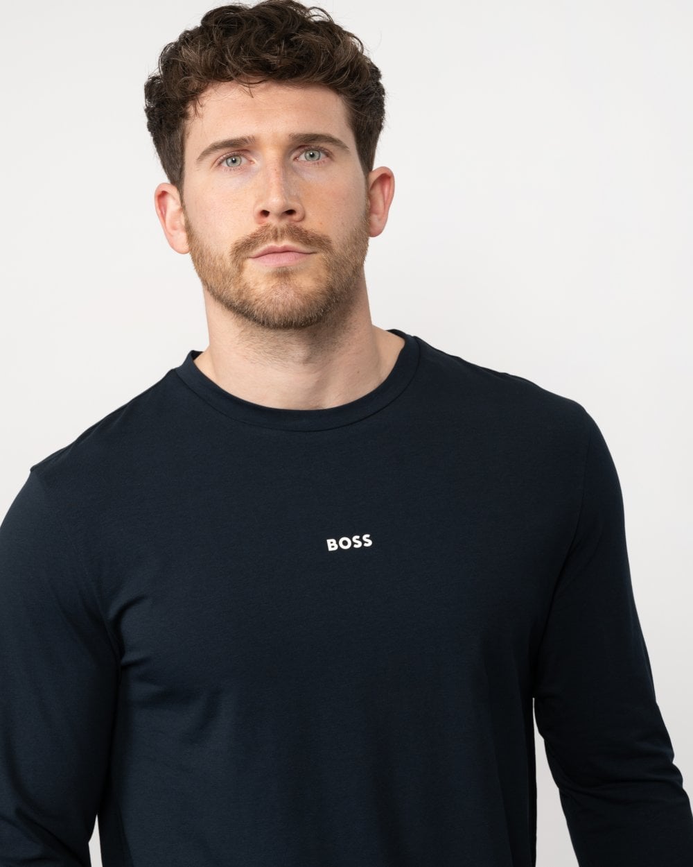 BOSS Orange Tchark Mens Long Sleeve Stretch Cotton T-Shirt - Open Blue 495 - Open Blue 495