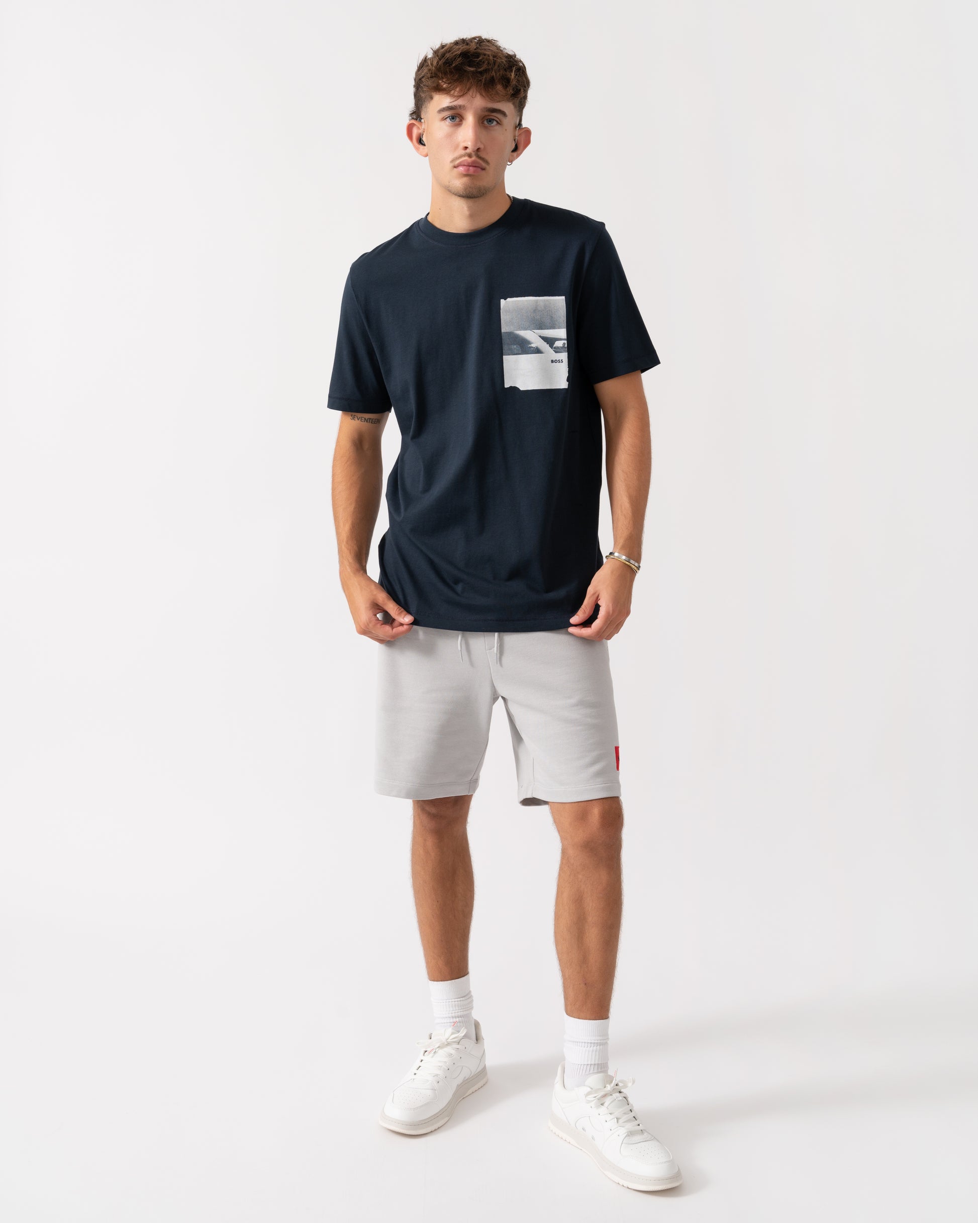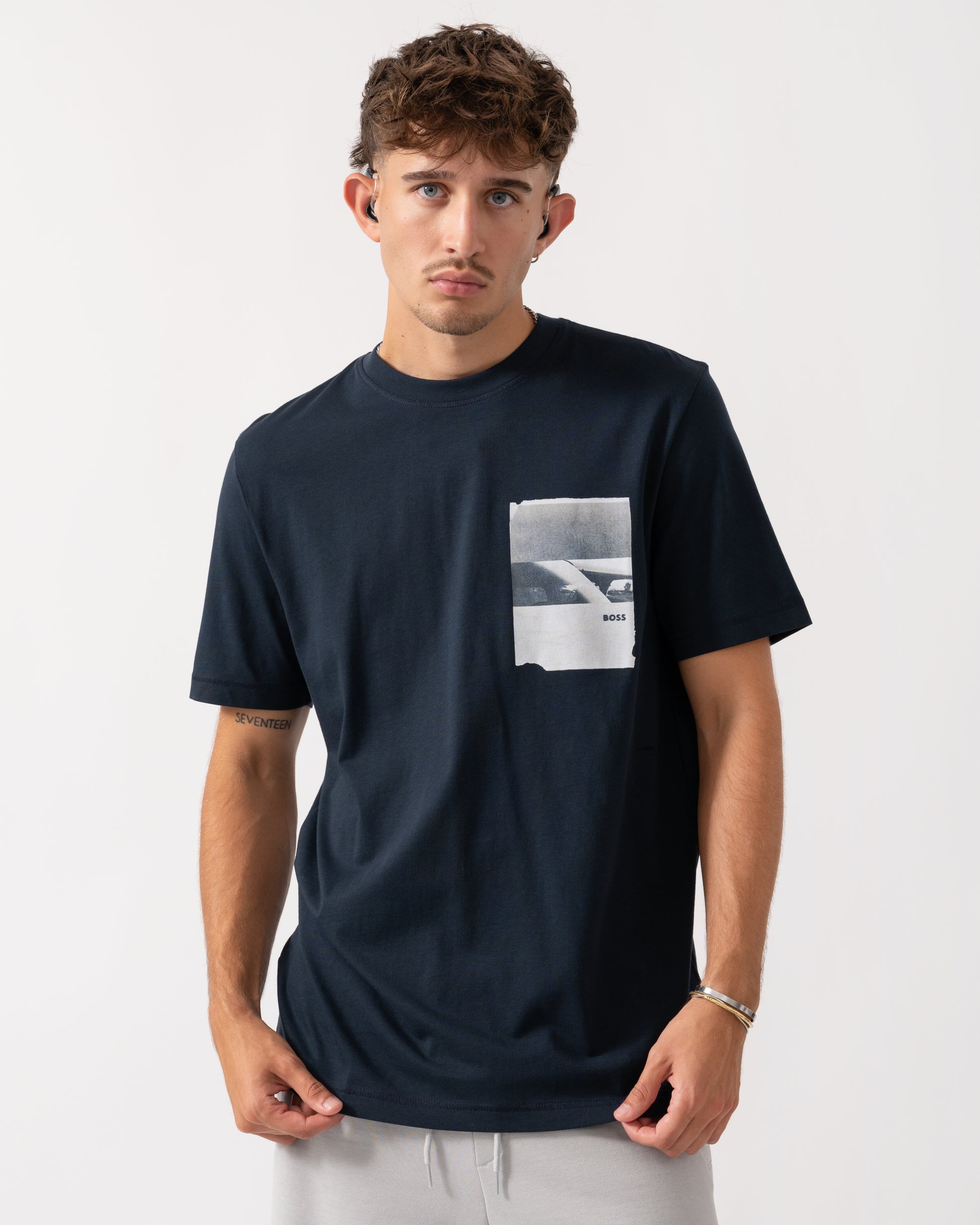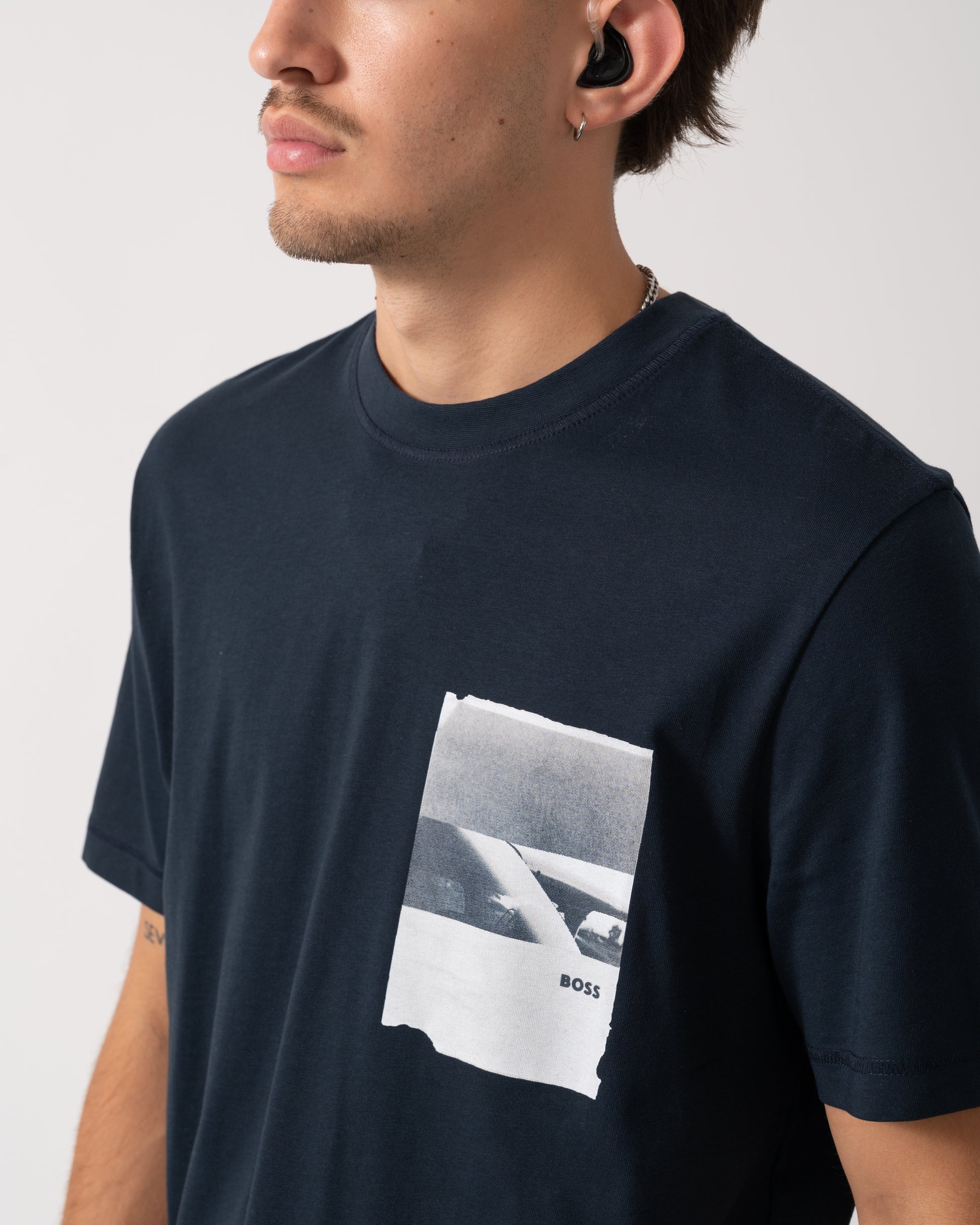 Featuring creative artwork showcasing the BOSS logo, this BOSS Menswear T-shirt is an effortless casual option. Straight fit in soft, breathable cotton. This product contains at least 60% better raw materials. This piece is made with at least 60% cotton derived from regenerative agriculture.