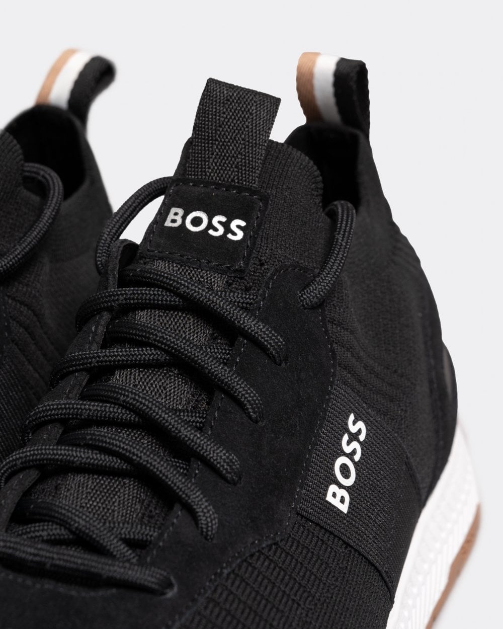 Contemporary sock-style trainers by BOSS, detailed with branding and suede trims.
