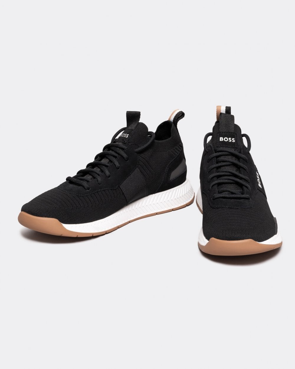 BOSS Orange Titanium_Runn Mens Structured-Knit Sock Trainers With Branding NOS in Charcoal 014