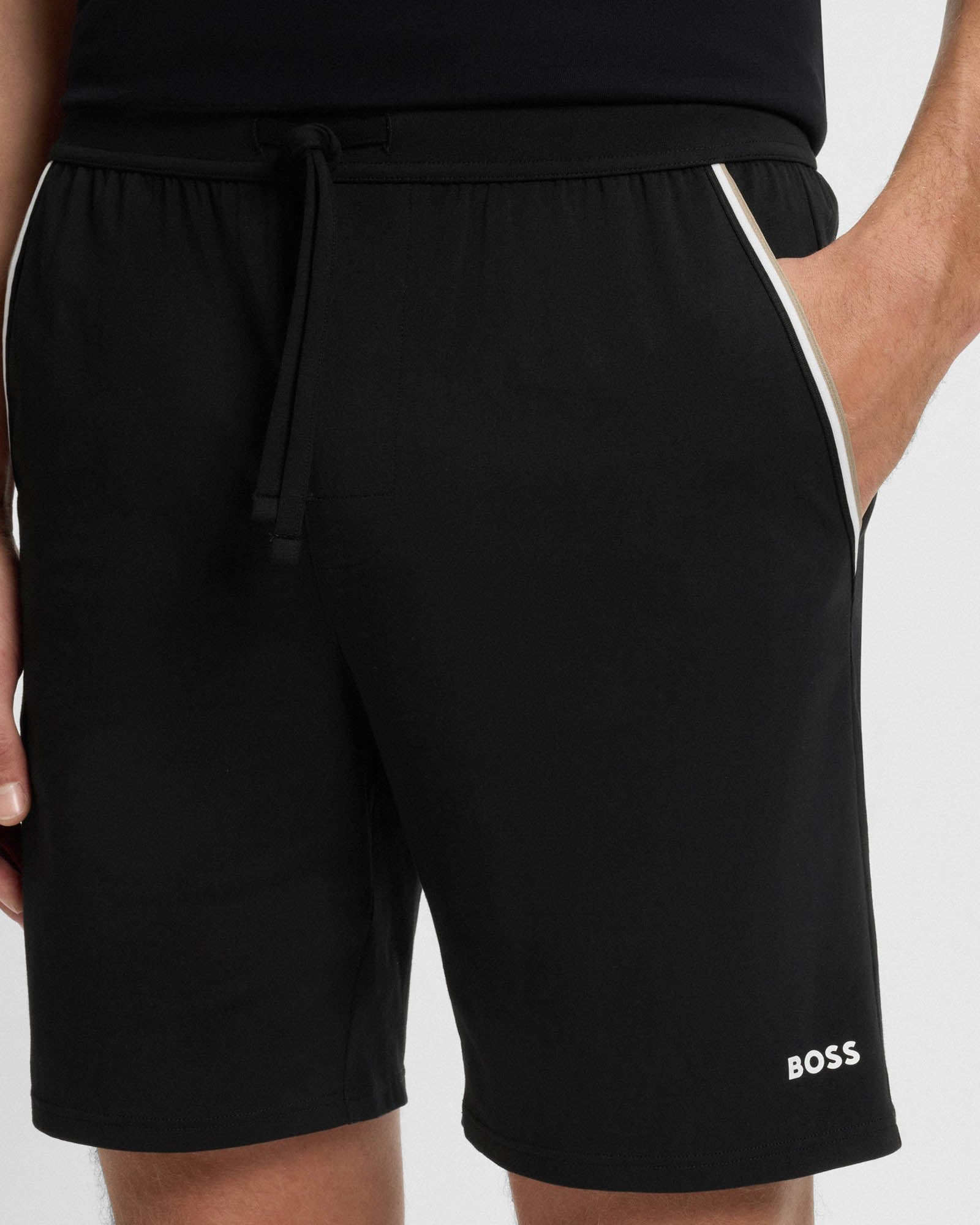 Unique Mens Stretch-Cotton Pyjama Shorts with Tape Trims - Black 001