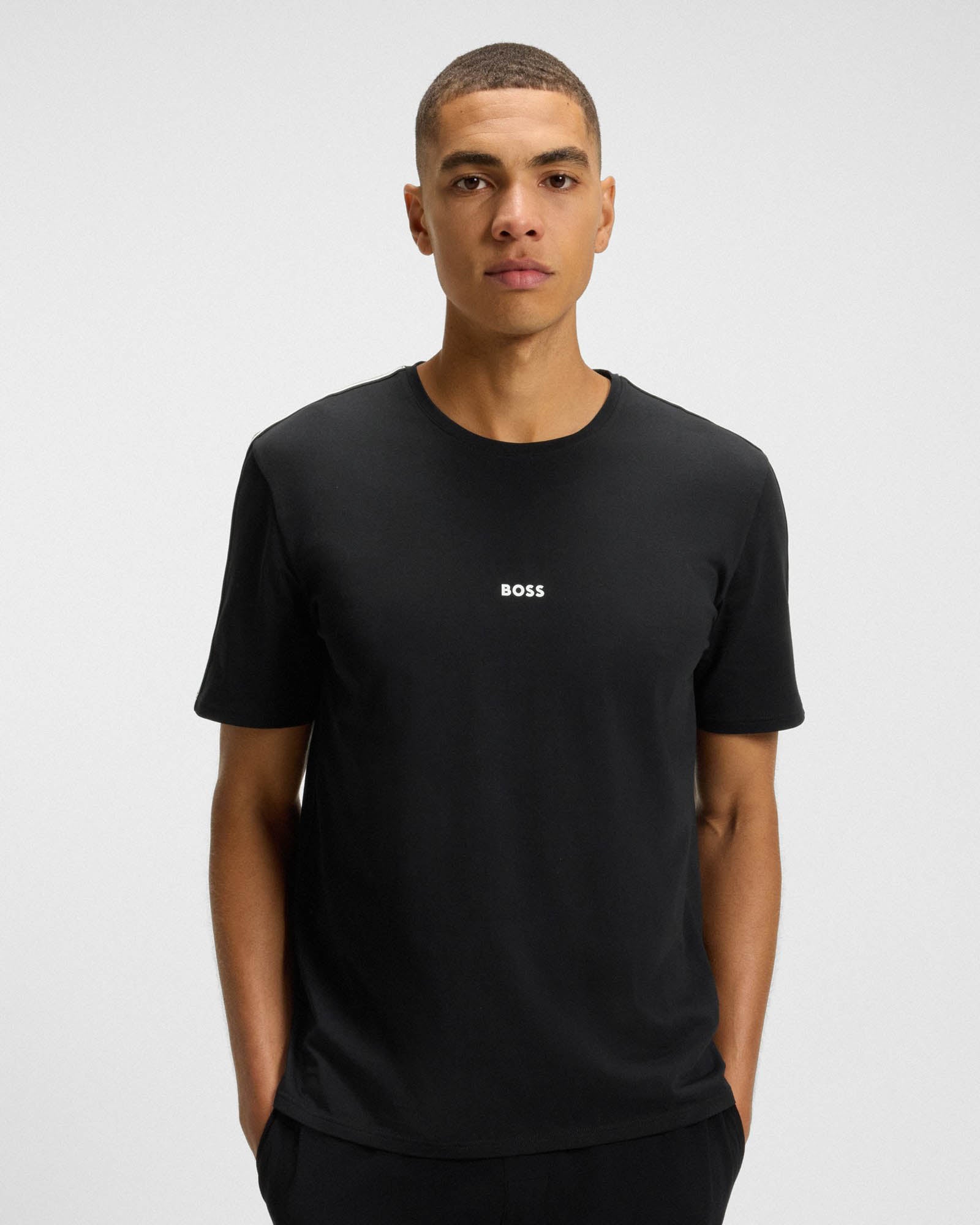 With a contrast logo and signature-stripe tape, this BOSS Menswear pyjama T-shirt is an off-duty essential. Straight fit. Breathable stretch-cotton jersey.