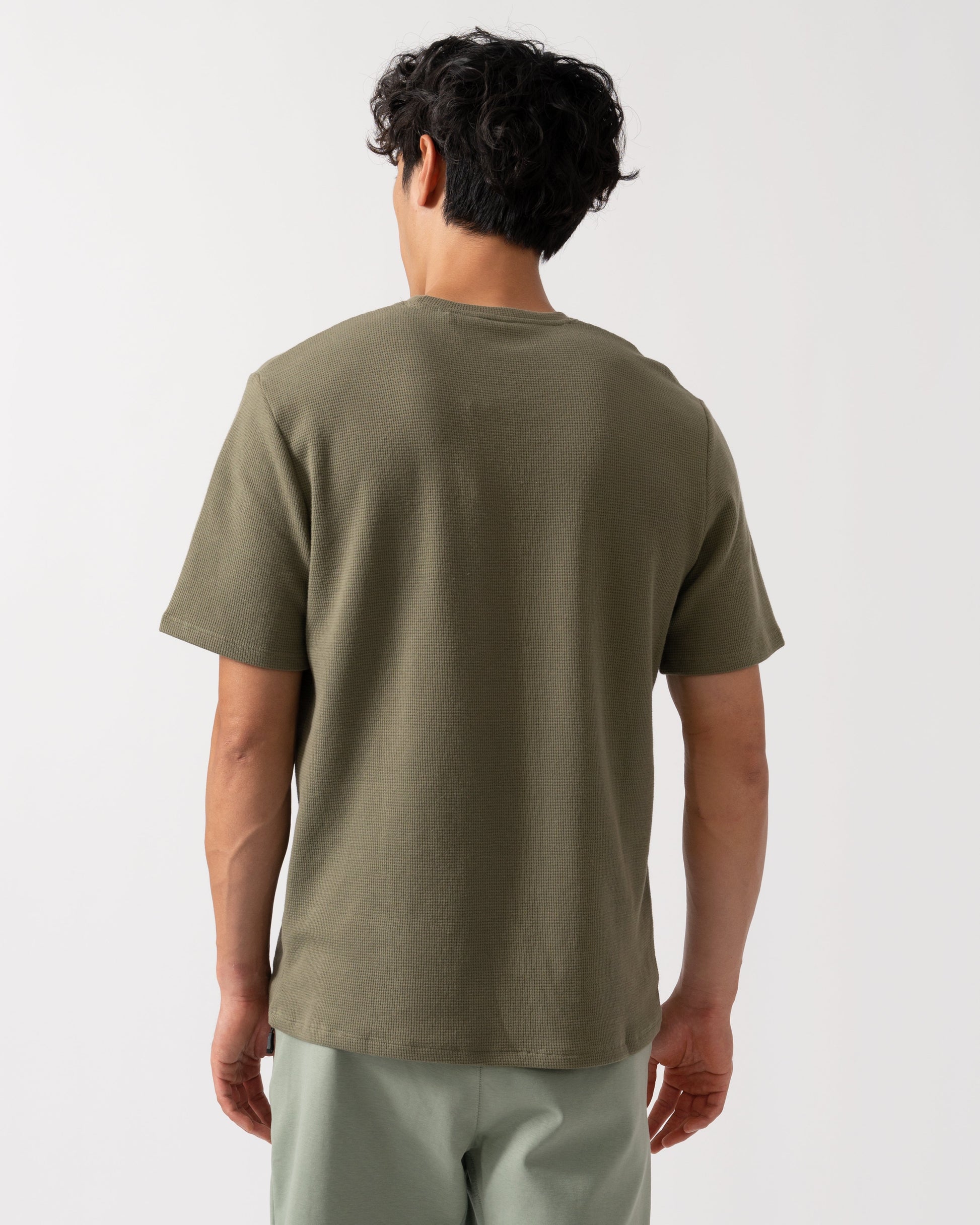 Waffle Mens Cotton-Blend Pyjama T-Shirt with Embroidered Logo - Open Green 349