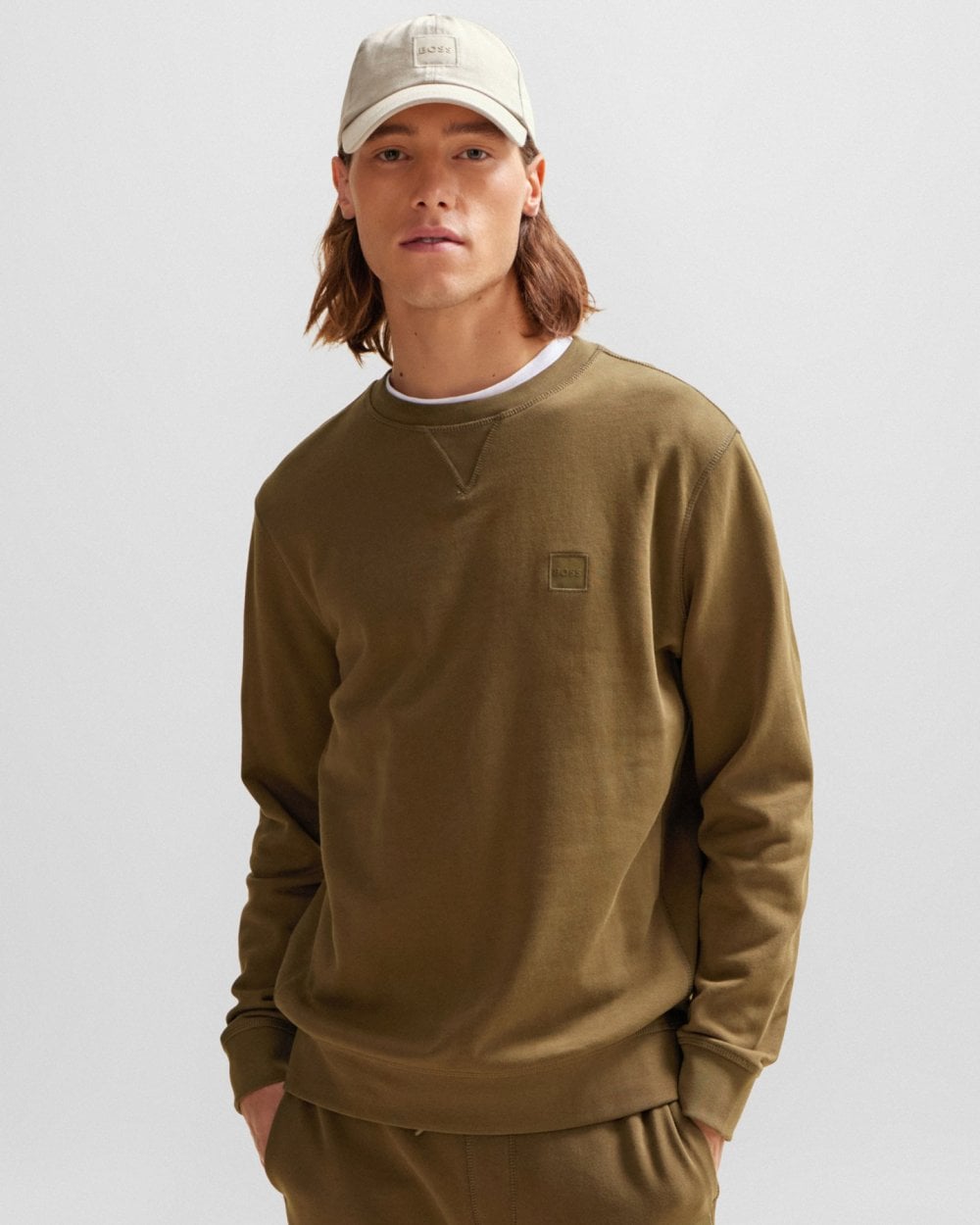 A relaxed sweatshirt cut to a laid-back fit in French terry with a tonal logo patch at the left chest by BOSS Menswear.