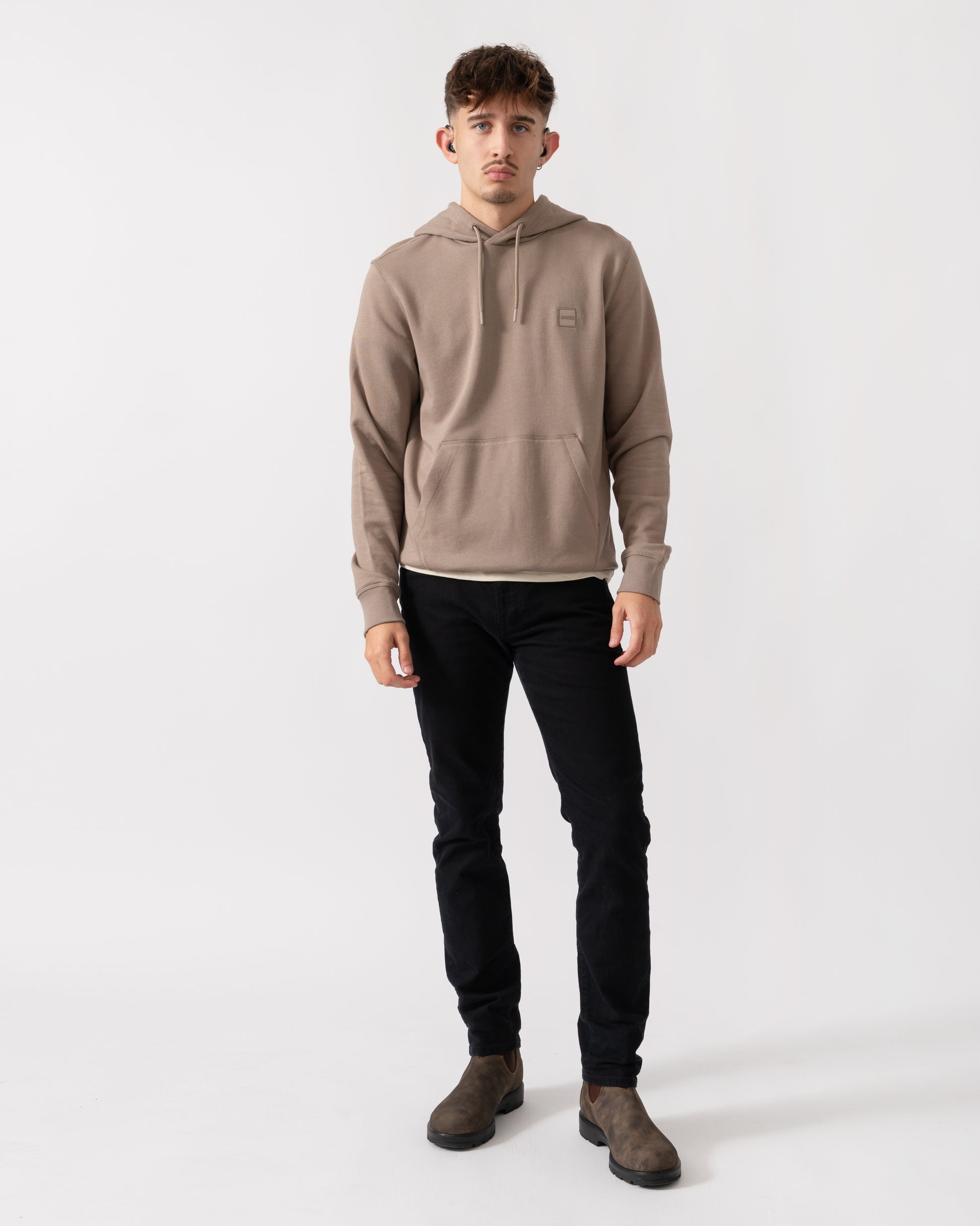 BOSS Orange Wetalk Mens Pullover Hoodie With Logo Patch - Brown 368 - Brown 368