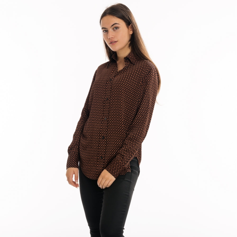 Print Geometric Relaxed Long Sleeve Womens Shirt