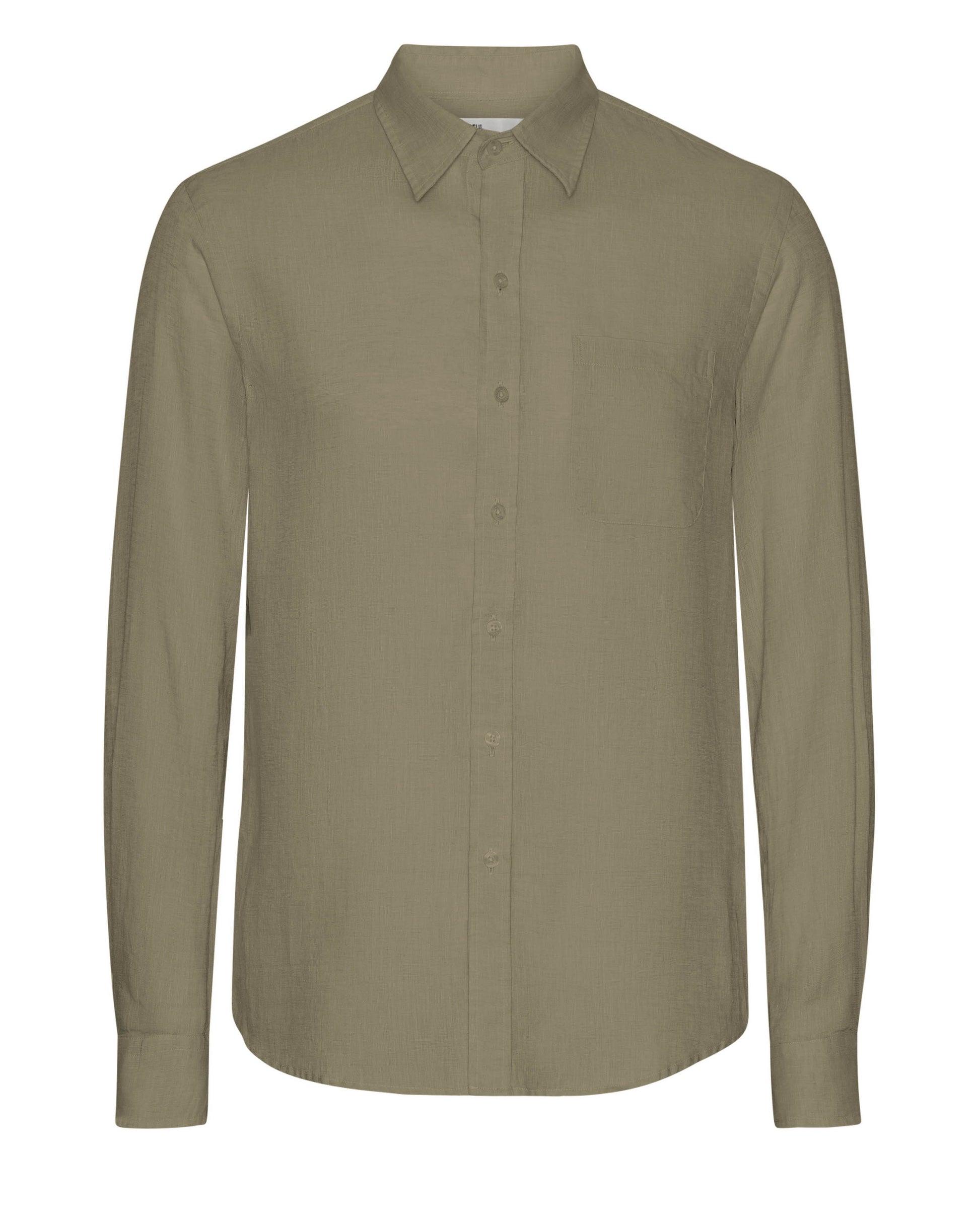 Mens Long Sleeve Linen Shirt - Dusty Olive