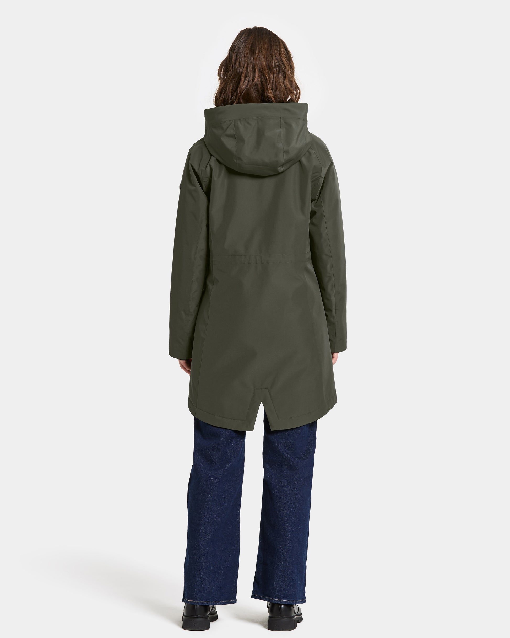 Alana is a sleek parka with padding, perfect for both everyday use and outdoor activities. It is water- and windproof with taped seams and made from a breathable material, making it ideal for all weather conditions. The parka features a two-way zip at the front and an adjustable hood for extra protection. The waist can be adjusted with a drawstring on the inside for a personalised fit. The side pockets close with buttons and the cuffs have elasticated edges for extra comfort. The zip never sits directly against the chin thanks to the collar's design.