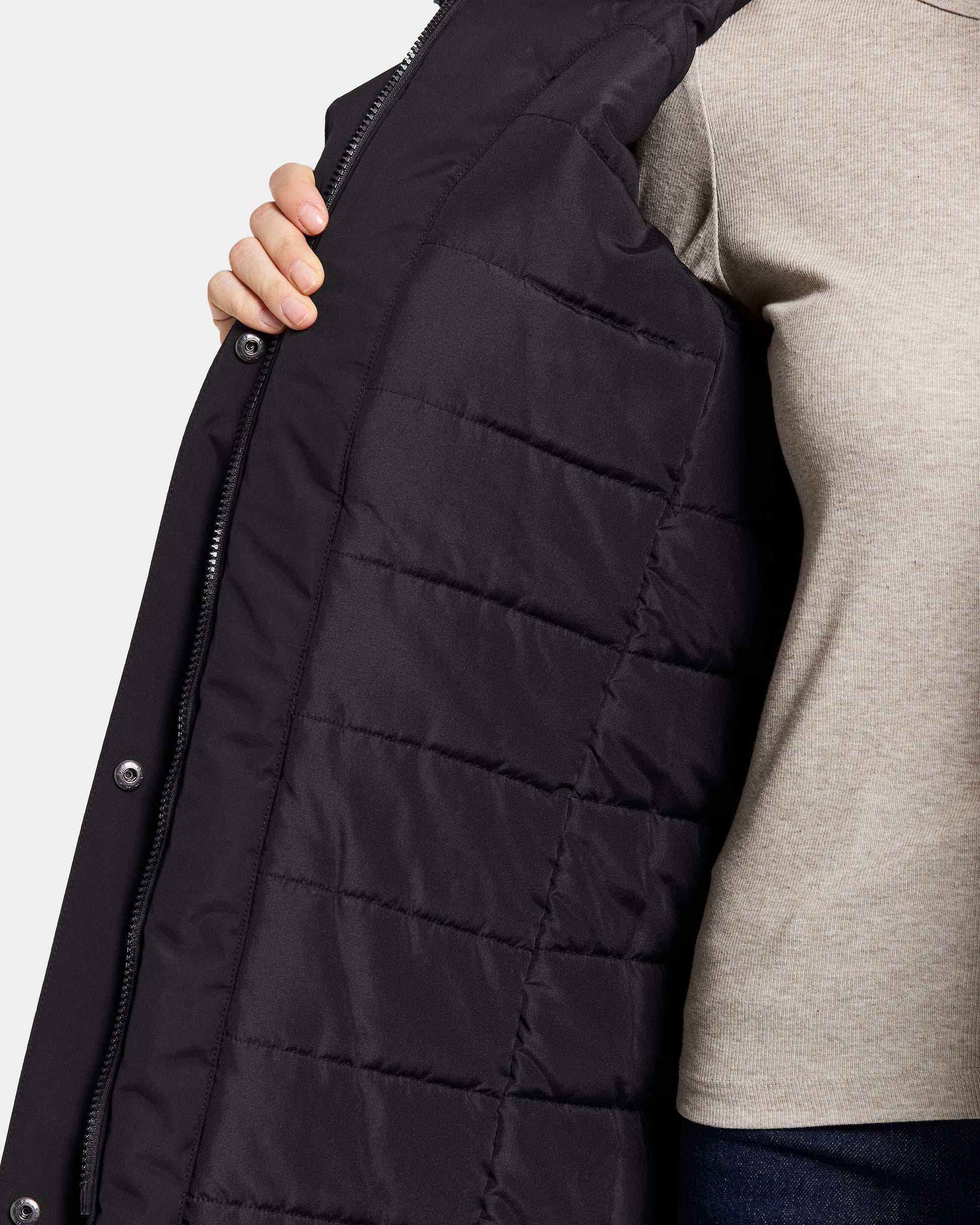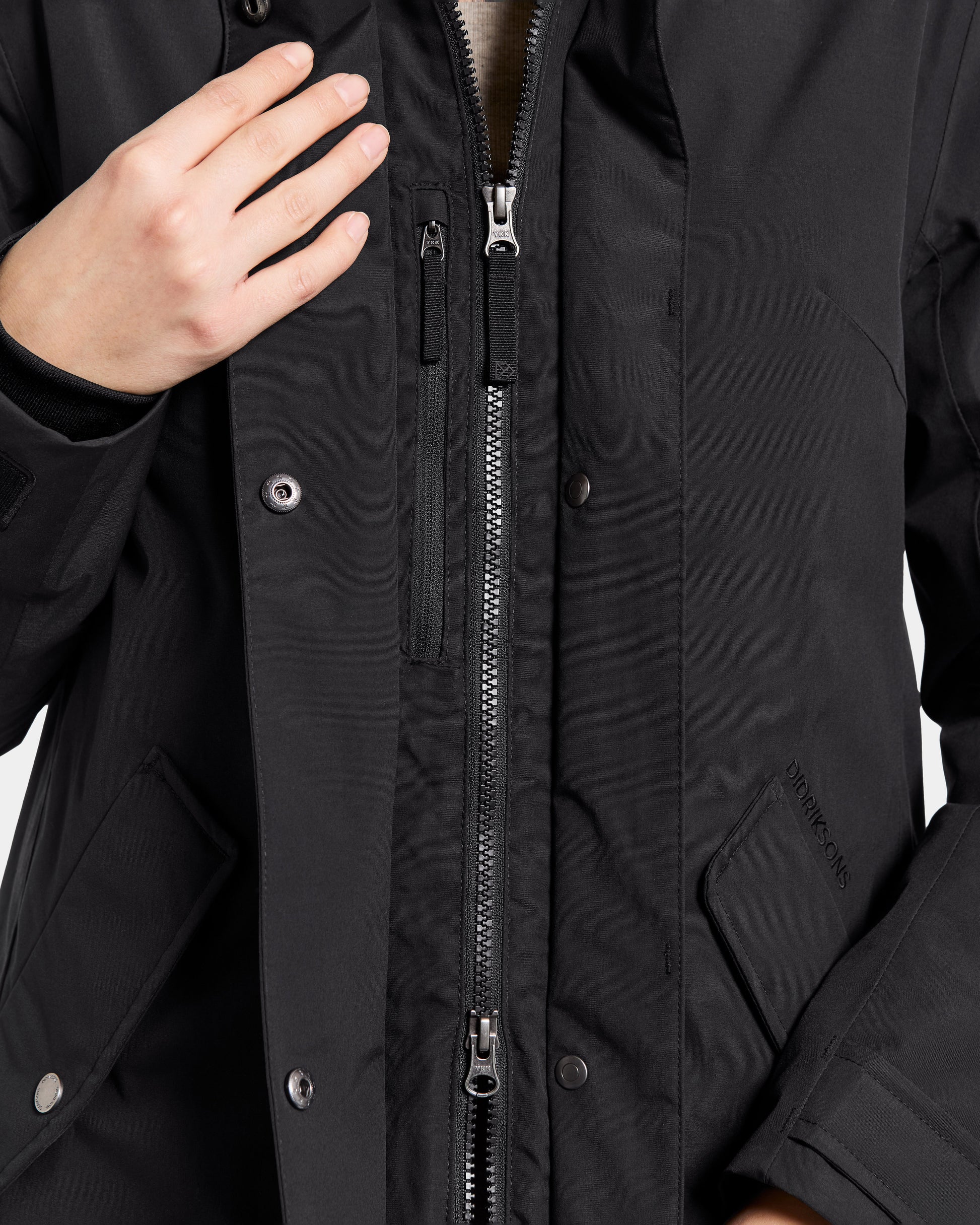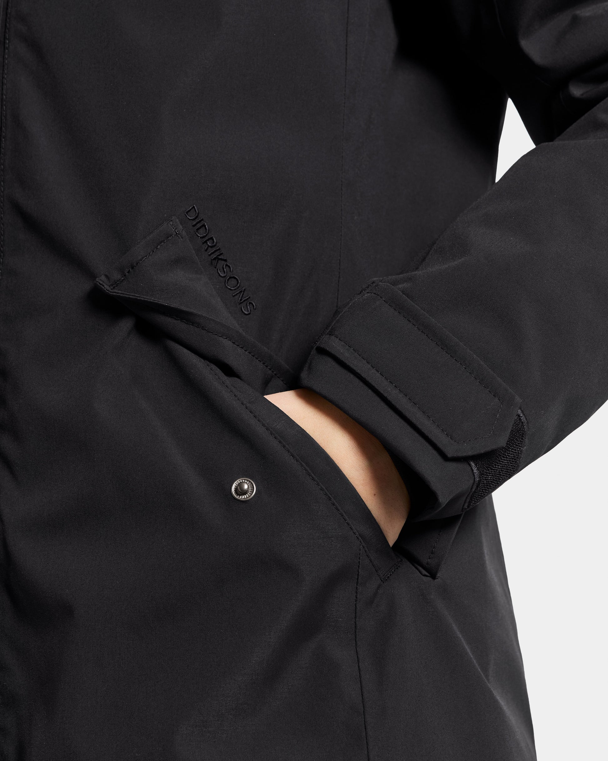 Erna is a warm parka with a feminine fit, perfect for everyday use. It is water- and windproof with taped seams and made from a breathable material, making it ideal for all weather conditions. The parka features a detachable synthetic fur on the hood and an adjustable waist with a drawstring for a personalised fit.