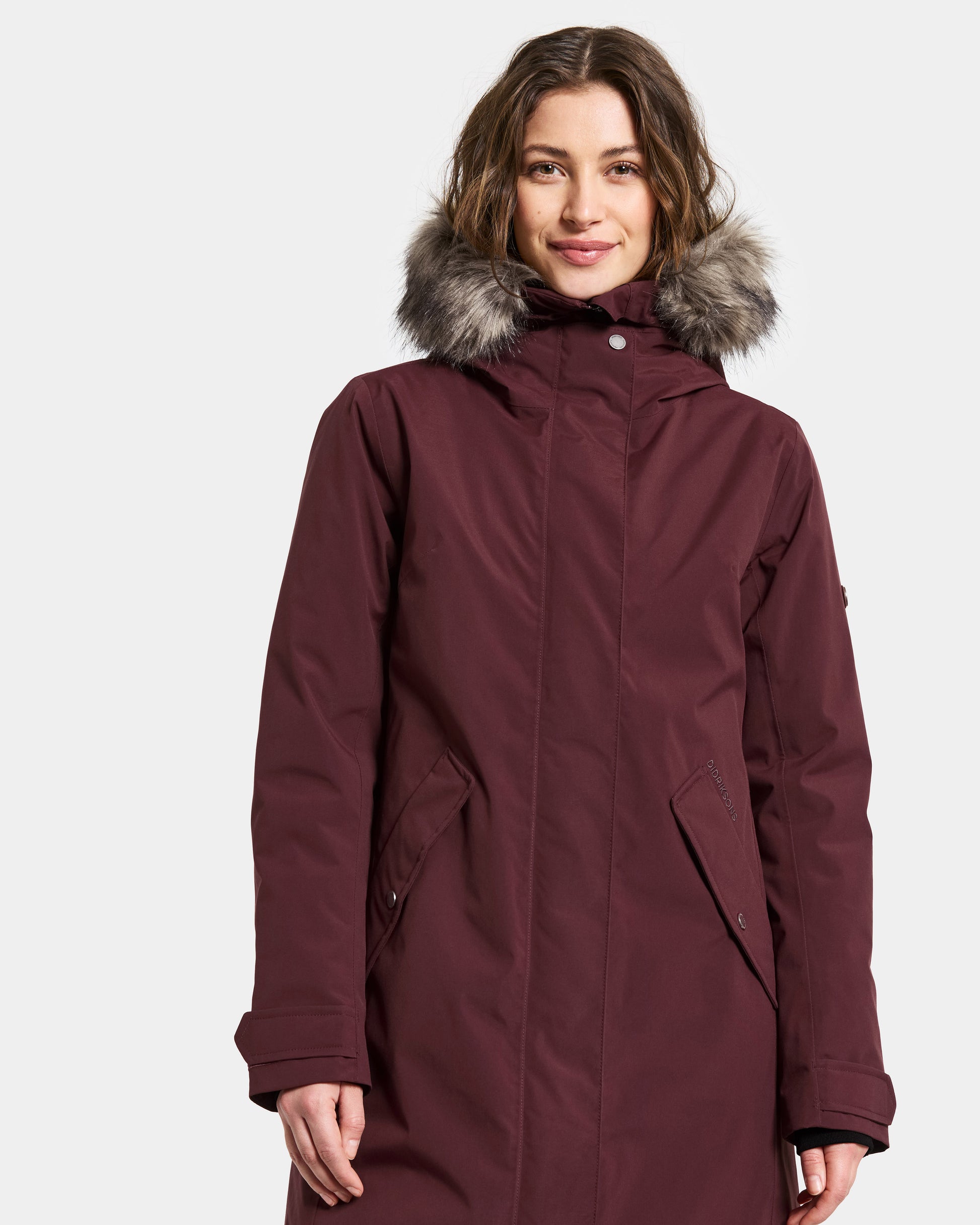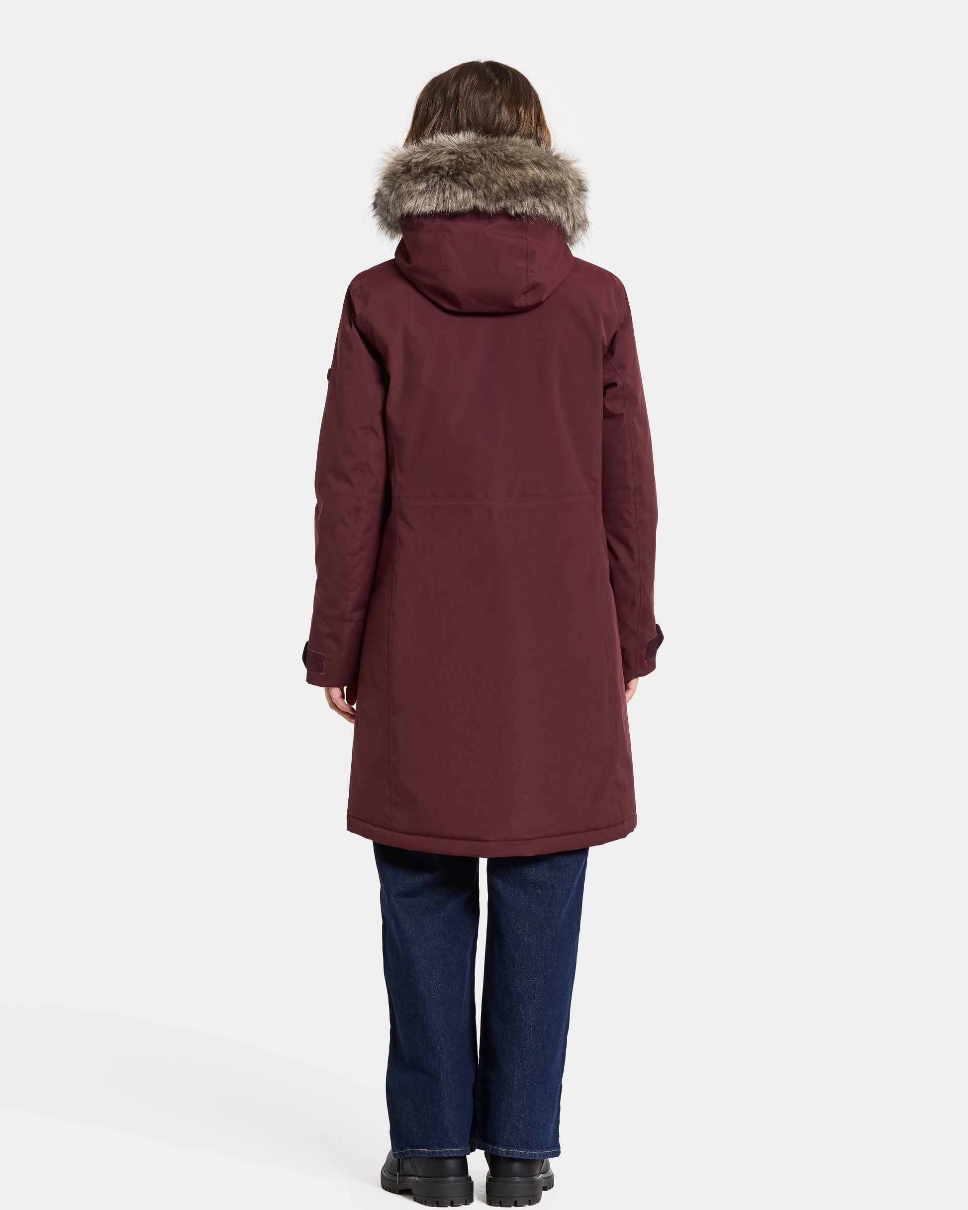 Erna is a warm parka with a feminine fit, perfect for everyday use. It is water- and windproof with taped seams and made from a breathable material, making it ideal for all weather conditions. The parka features a detachable synthetic fur on the hood and an adjustable waist with a drawstring for a personalised fit.