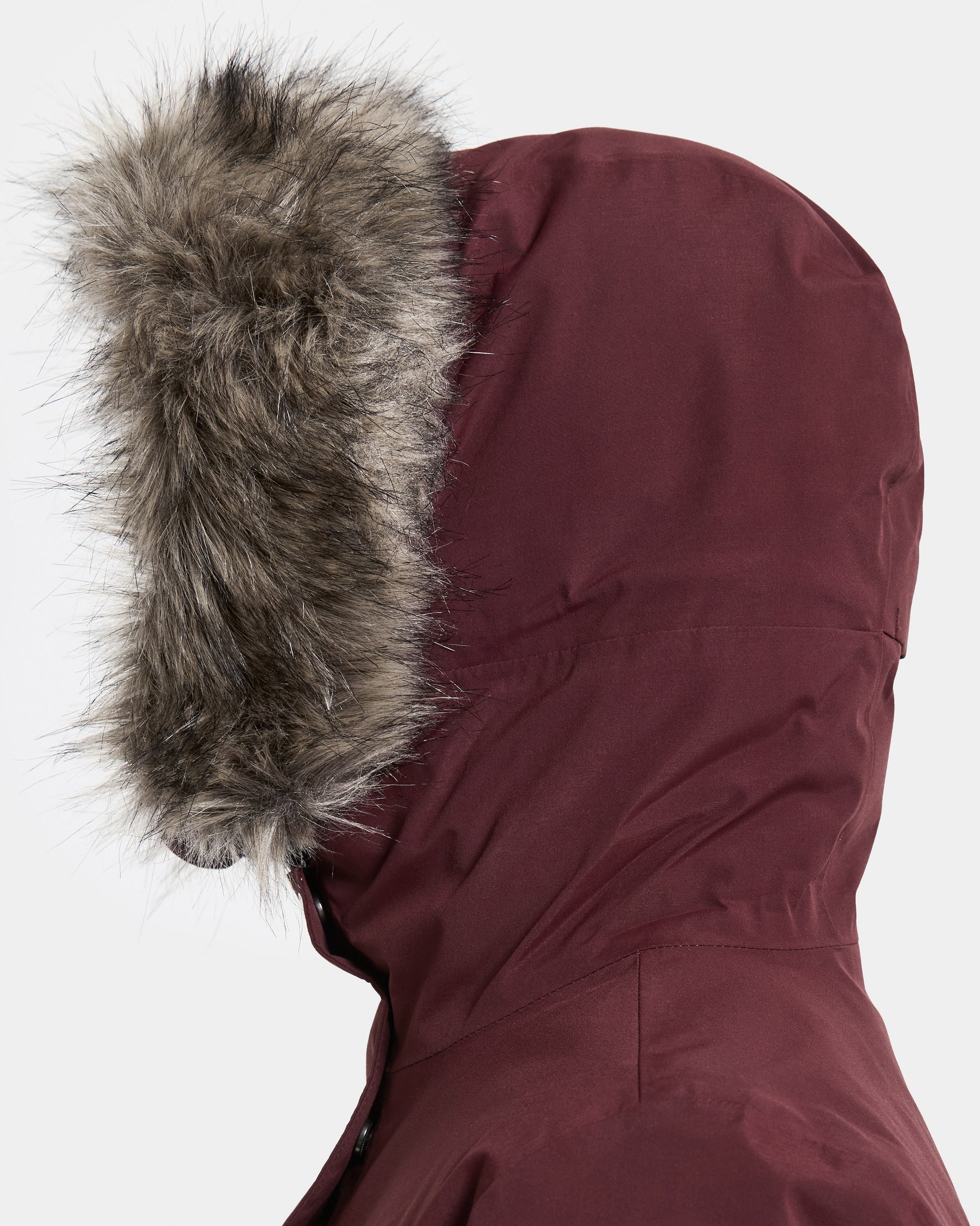 Detachable synthetic furThe detachable synthetic fur protects the face from cold winds.
