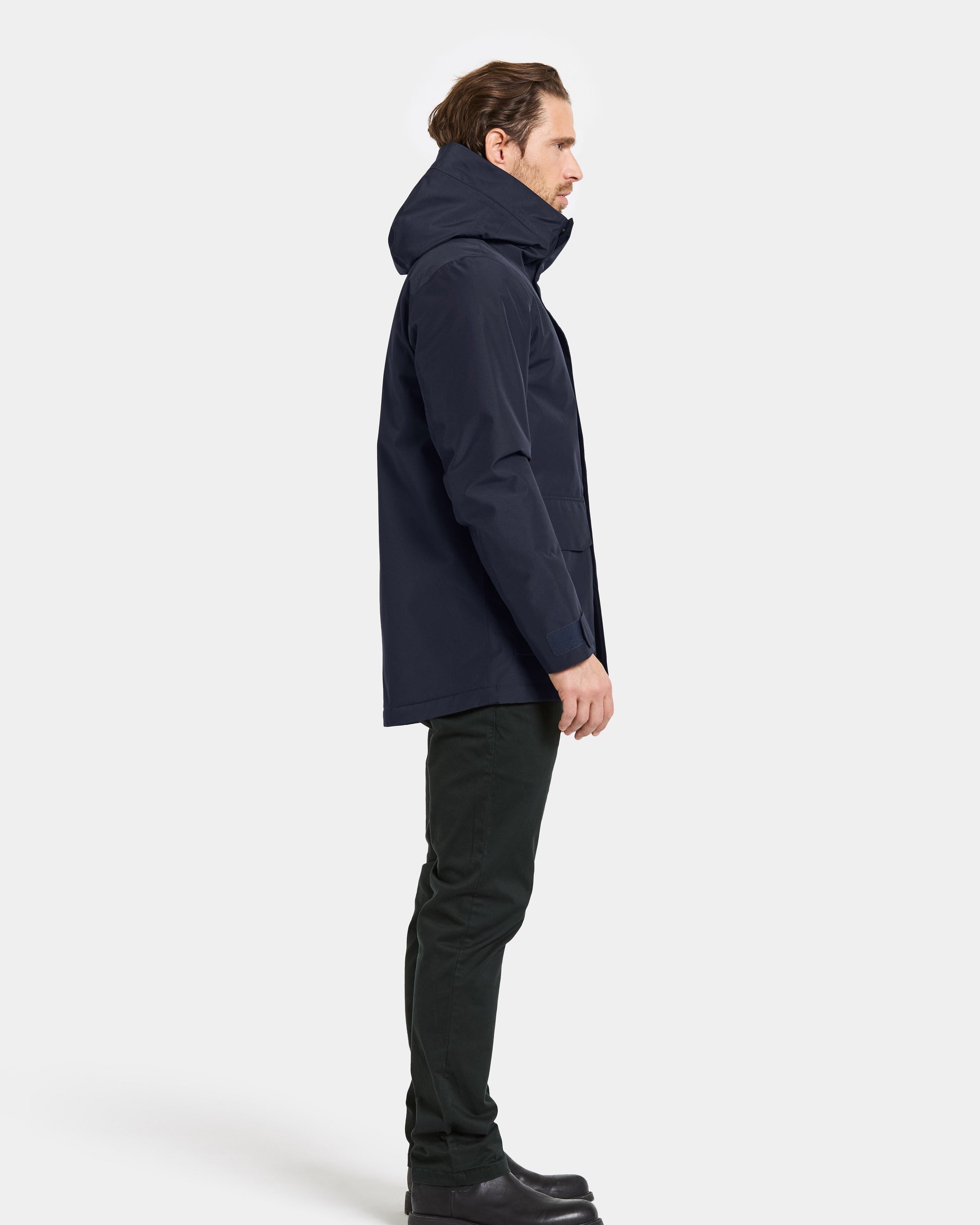 Liam is a functional everyday jacket for men, designed to provide comfort and protection in all weather conditions. The jacket is water- and windproof with taped seams and made from a breathable material, making it ideal for daily use. It has a straight fit and is equipped with an adjustable hood and waist for optimal fit.