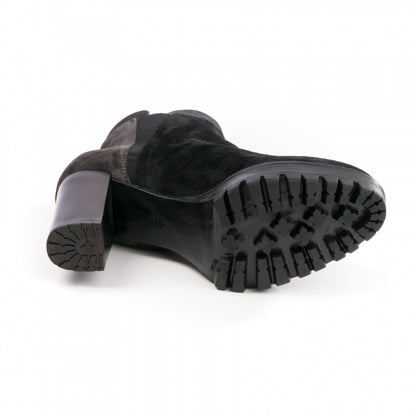 The Elia B Urban Chic Boots in Black Leather are new in for the Autumn Winter season. Made from black suede, this style draws influence from the classic chelsea boots with the elasticated insert panels on each side of the boot. This point-toe pair is skilfully crafted with a sturdy stacked heel and a smooth interior leather lining. Team this style with a longline blazer and mini skirt.