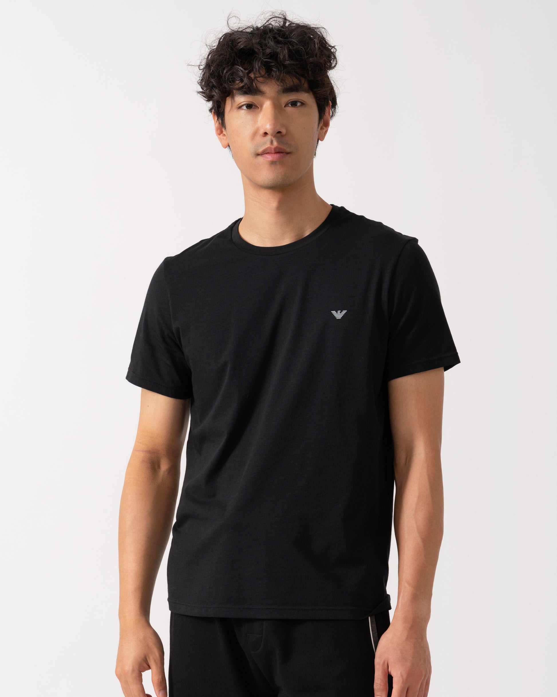 Emporio Armani 2 Pack Mens Eagle Logo Loungewear T-Shirt - Black/Black - Black/Black