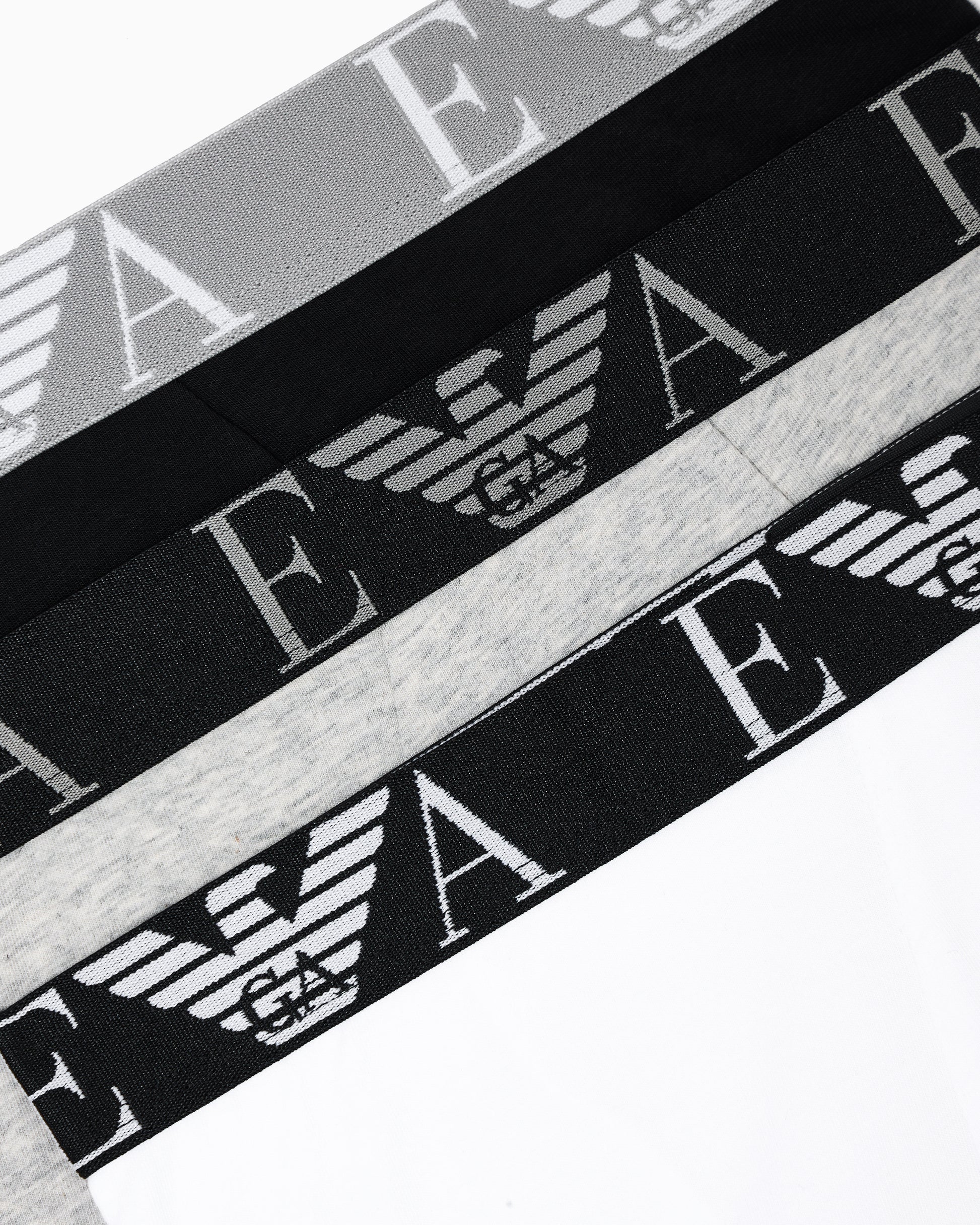 3-Pack Mens Boxers with Bold Monogram Logo Waistband - Black/Light Melange Grey/White