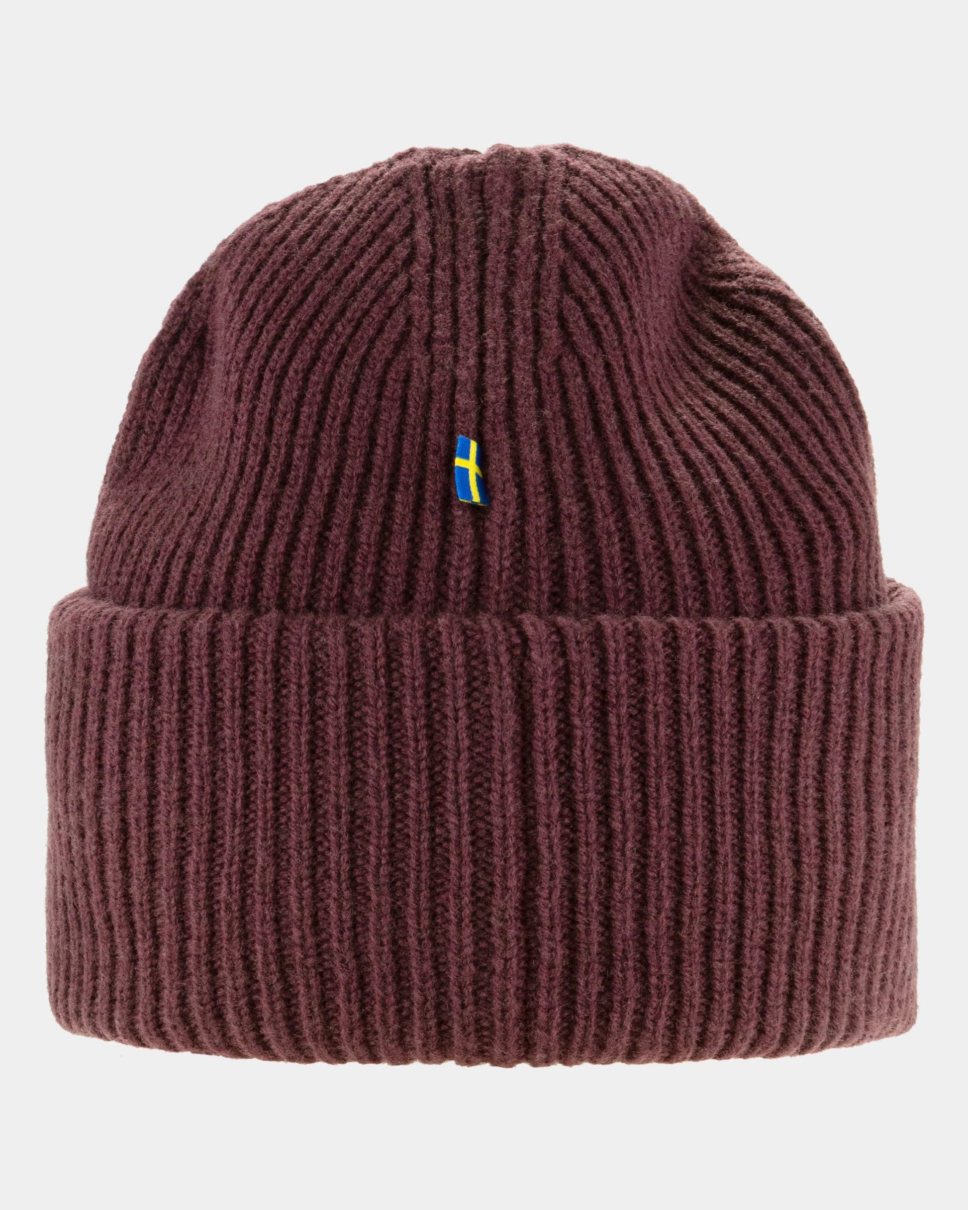 Rib-knitted hat in soft, warm lambswool. Robust, two-layer knitting with wide folded edge. Embroidered Fjällräven emblem on the front.