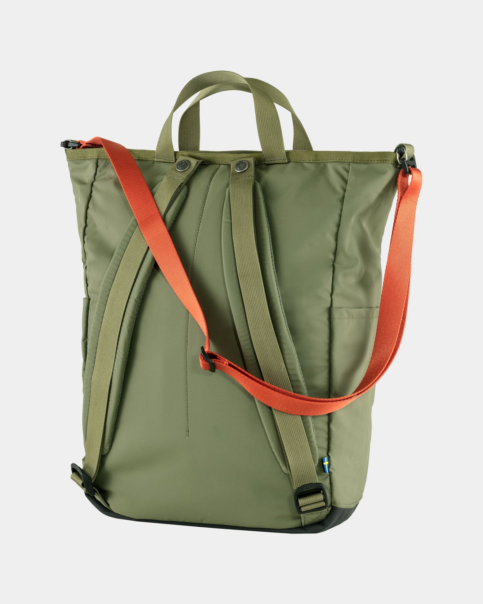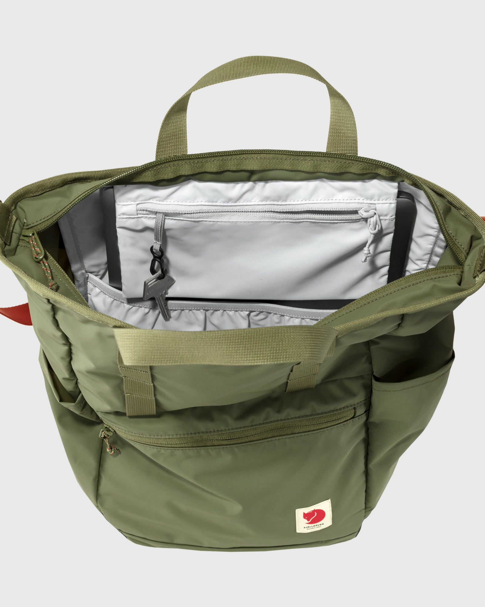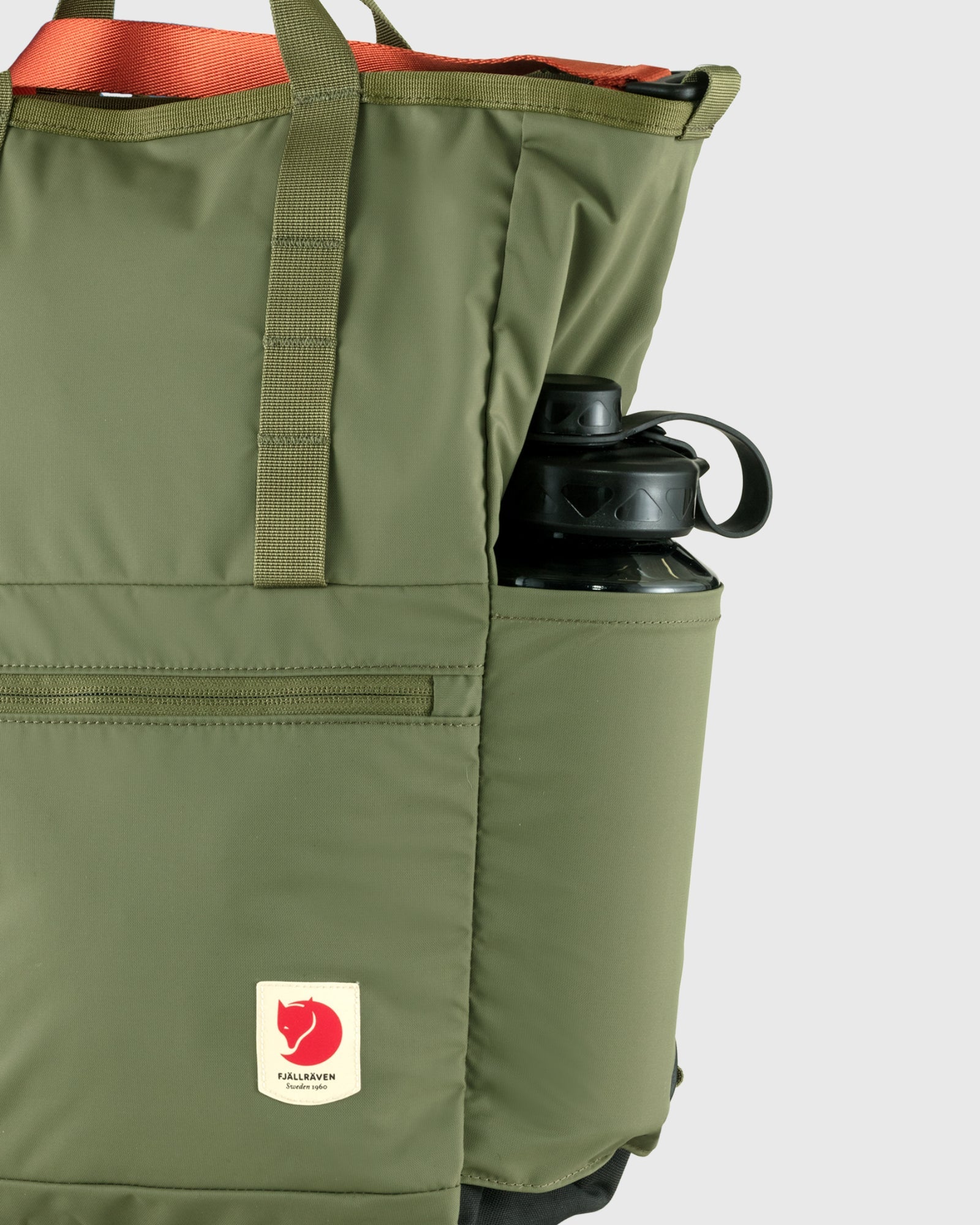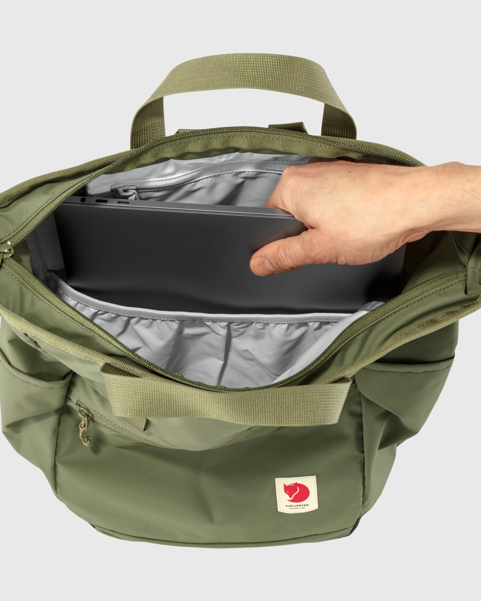 Versatile, light and practical – High Coast Totepack is a perfect companion for everyday life and travelling, both in town and on easy hikes. You can carry it over your shoulder, in your hand or on your back. The main compartment has a computer pocket with a padded base and a small zippered pocket. The entire bag can be folded into its front pocket when not in use. Although the outer fabric is waterproof, the zippers and seams are not, so the bag can handle rain and splashes but is not fully waterproof.