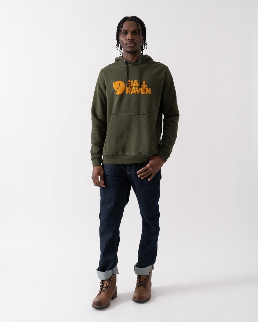 Fjallraven Logo Mens Hoodie in Deep Forest 662