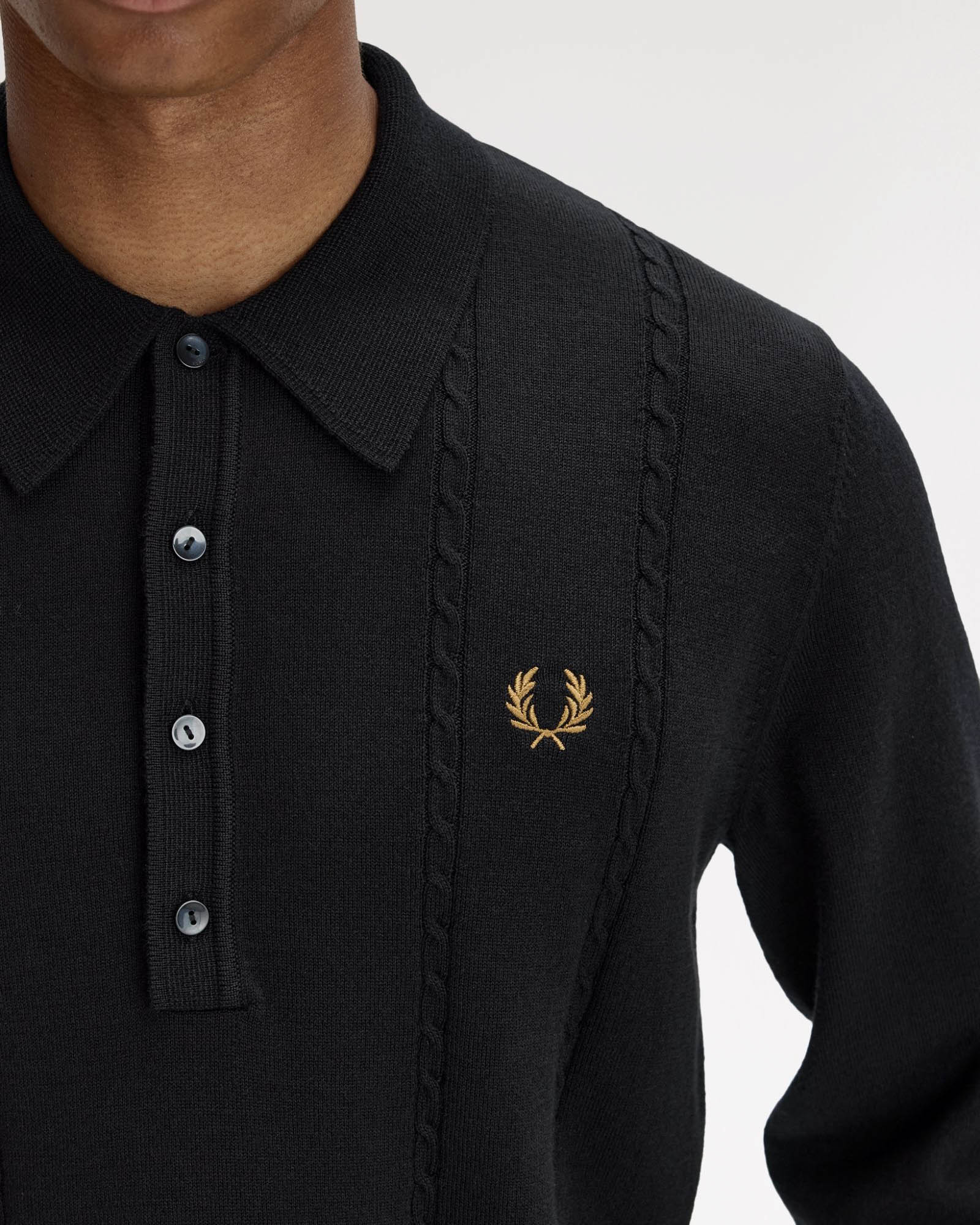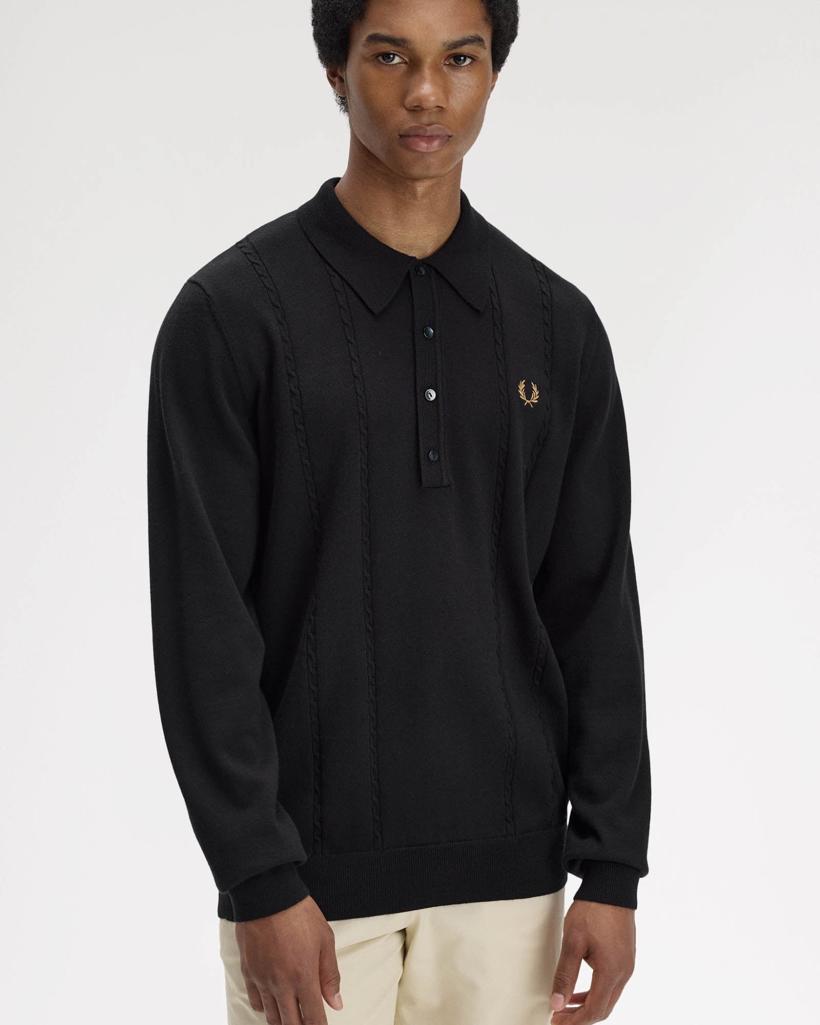Mens Cable Knitted Long Sleeve Polo Shirt - Black 102