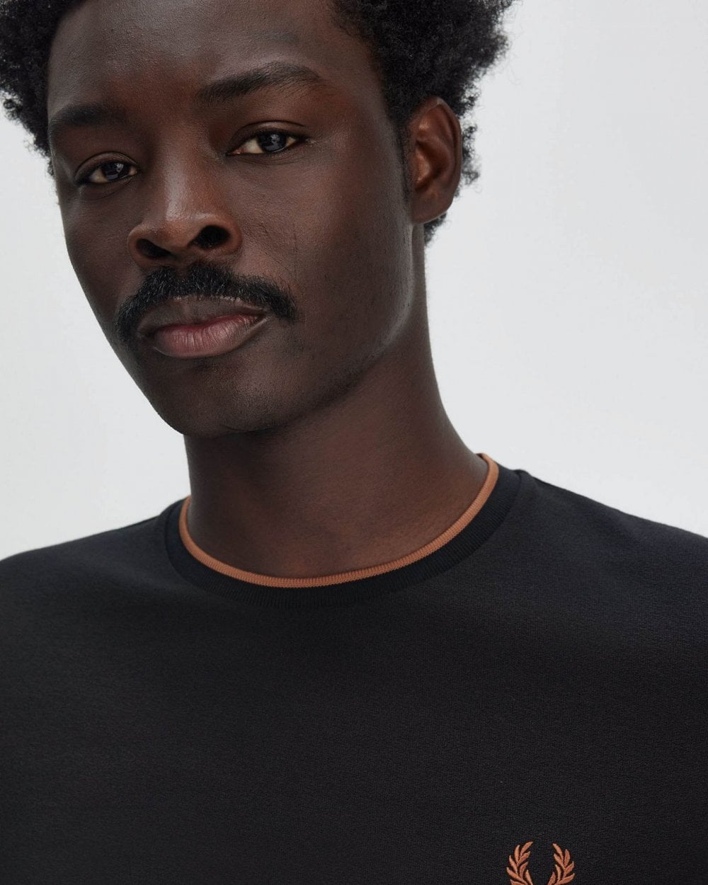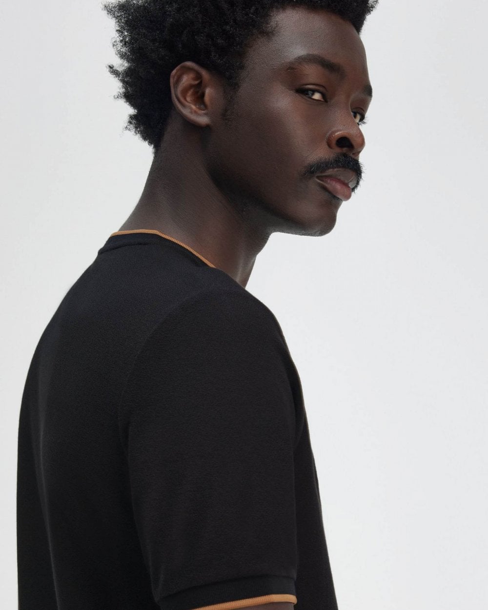A crepe cotton piqué t-shirt featuring unmistakable Fred Perry details. Constructed from signature cotton piqué with a crepe effect, giving a good drape, a soft hand feel, and a smart matte finish for added depth of colour. Signed off with single tipping to the crew neck and cuffs, and a matching Laurel Wreath in pride of place.