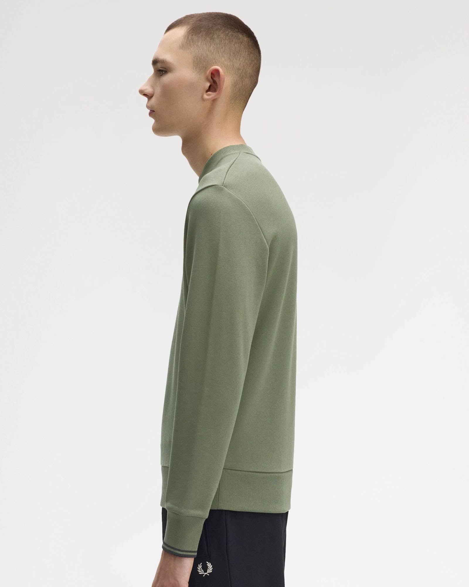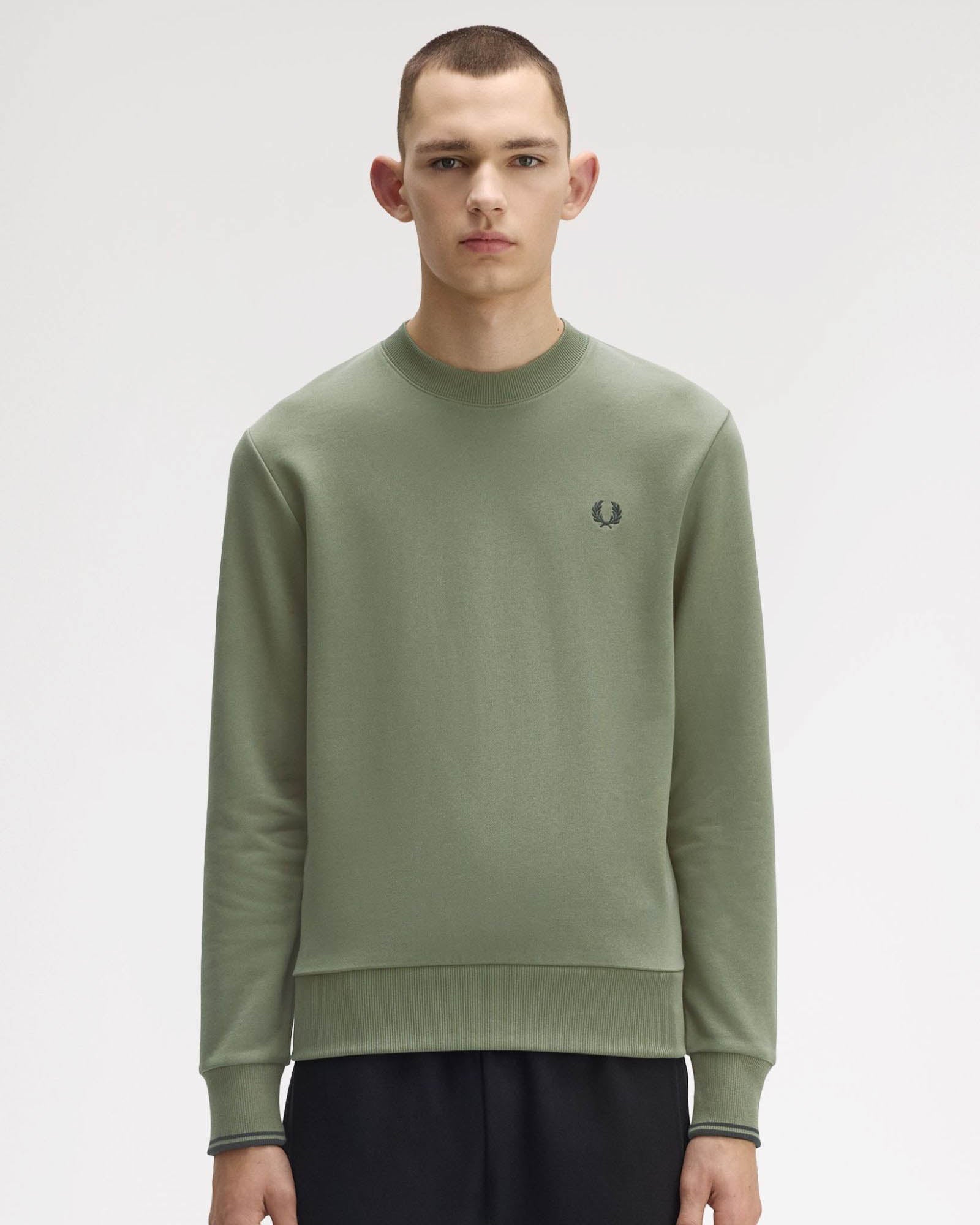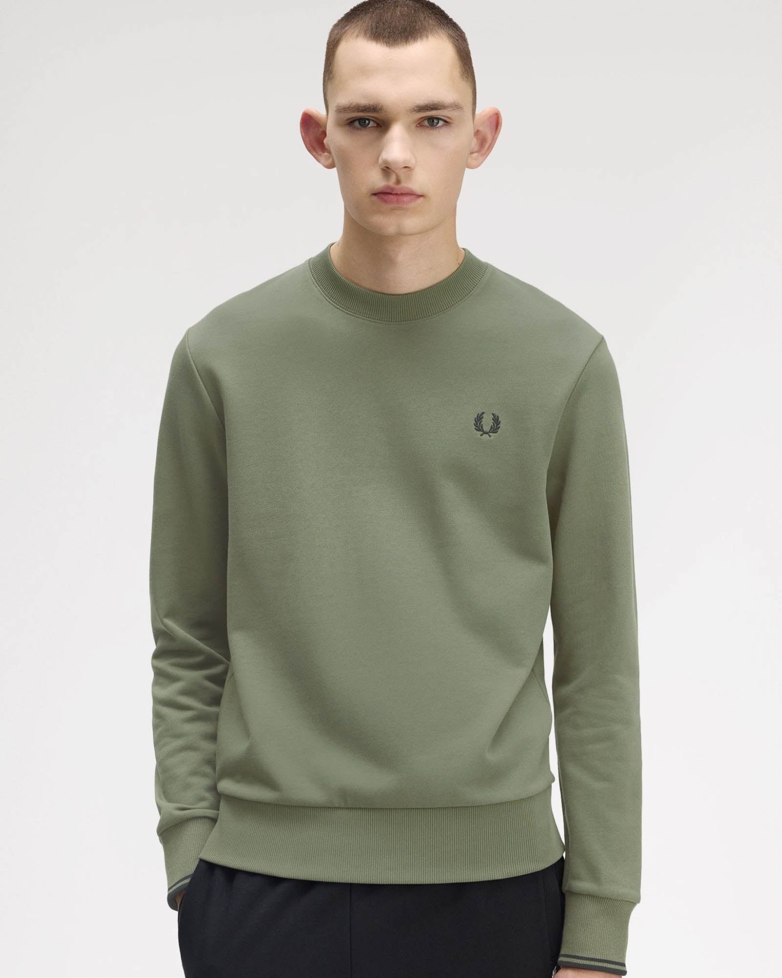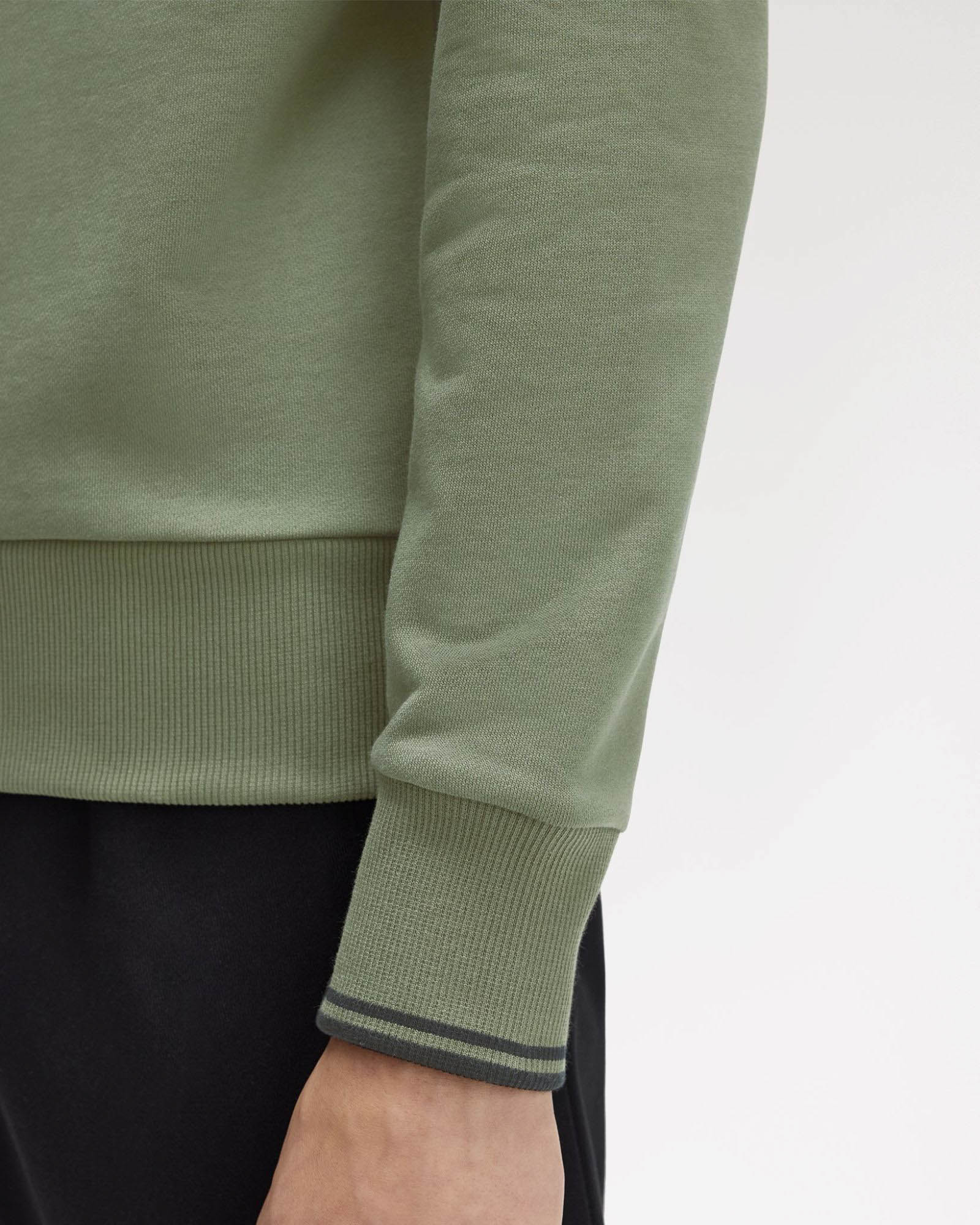 Adopted by athletes in winter training sessions, the cotton sweatshirt is a sportswear classic. This one features subtle Fred Perry design details, with twin tipping at the cuffs.