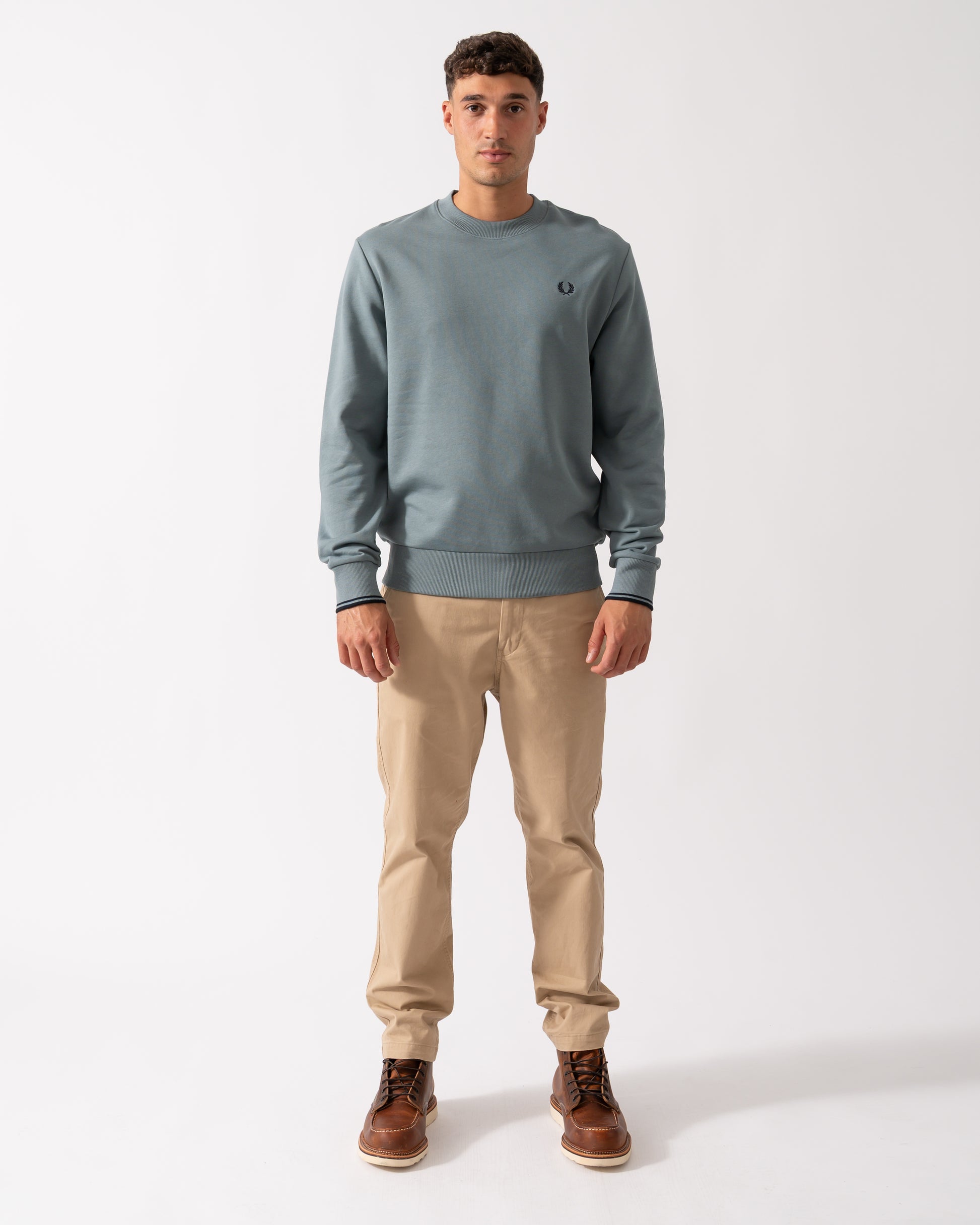 Fred Perry Mens Crew Neck Sweatshirt - Shaded Stone/Ecru/Dark Petrol Z60 - Shaded Stone/Ecru/Dark Petrol Z60
