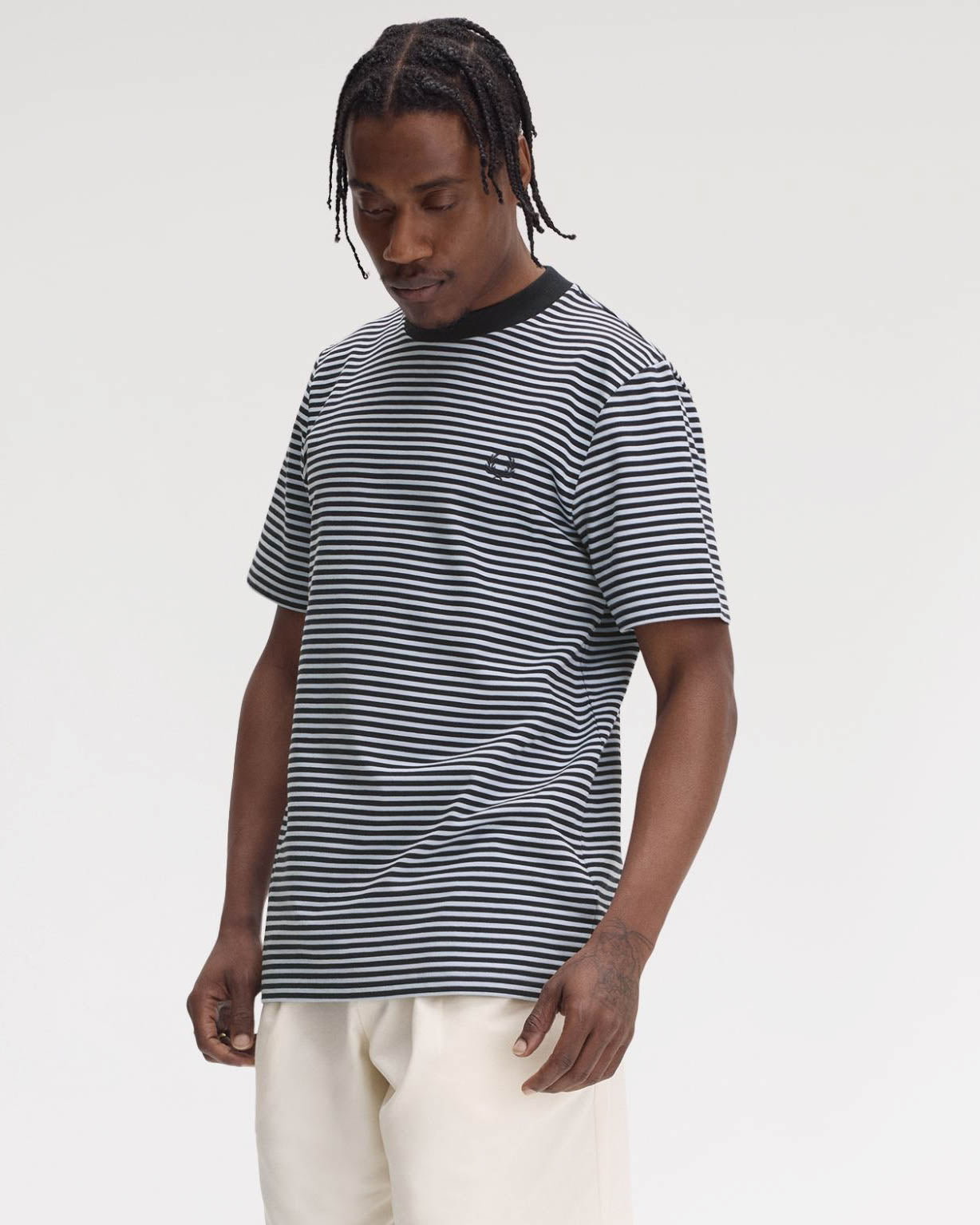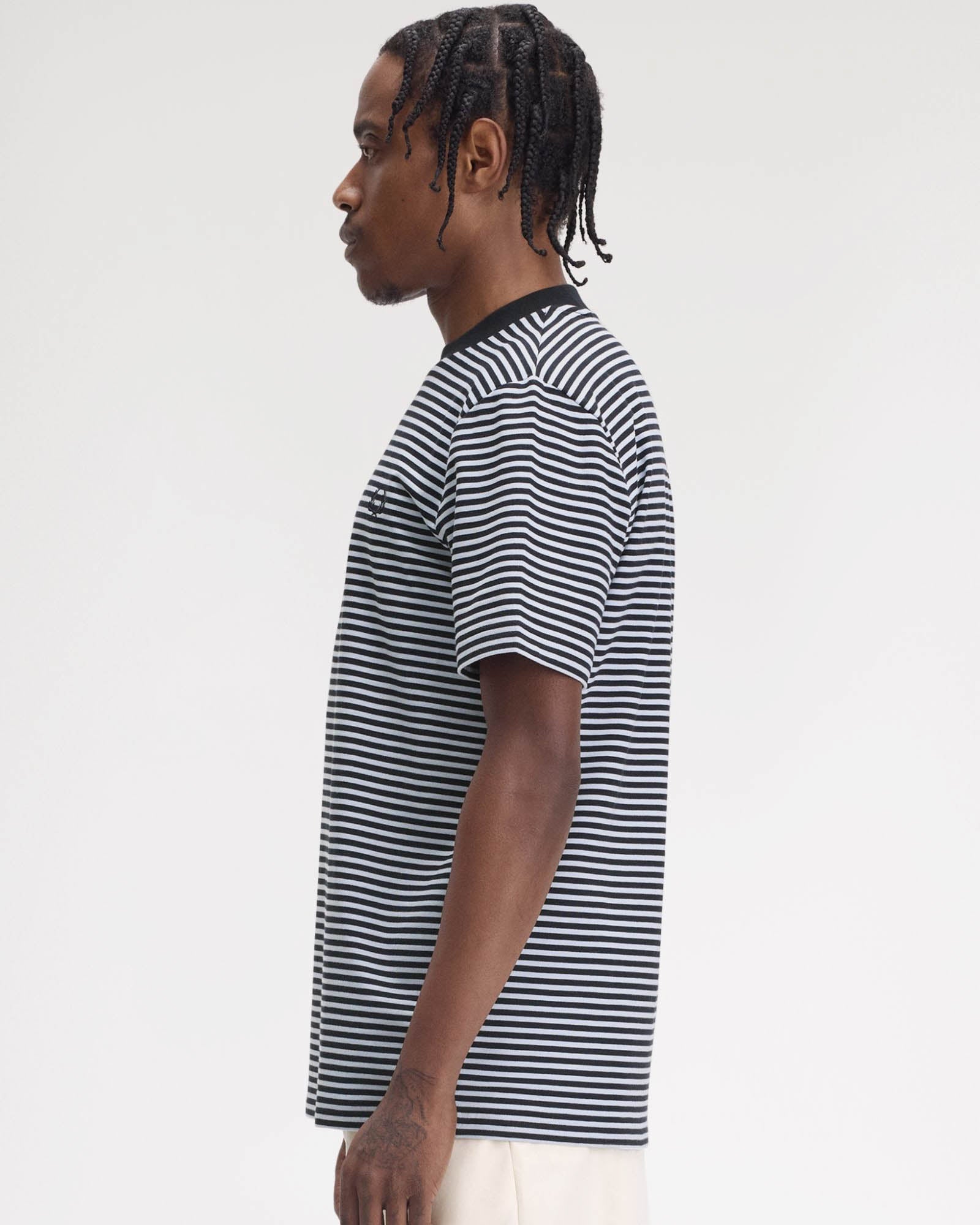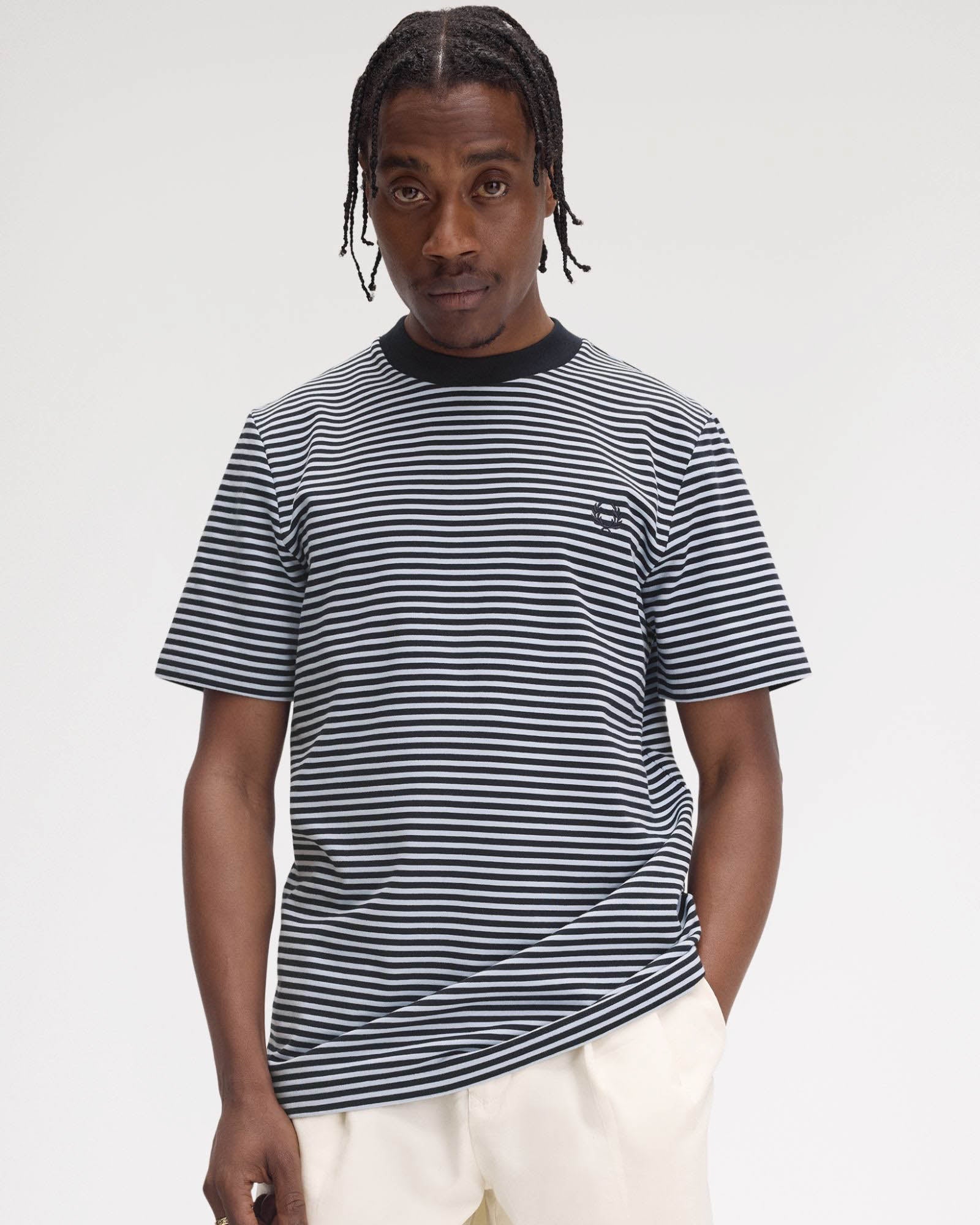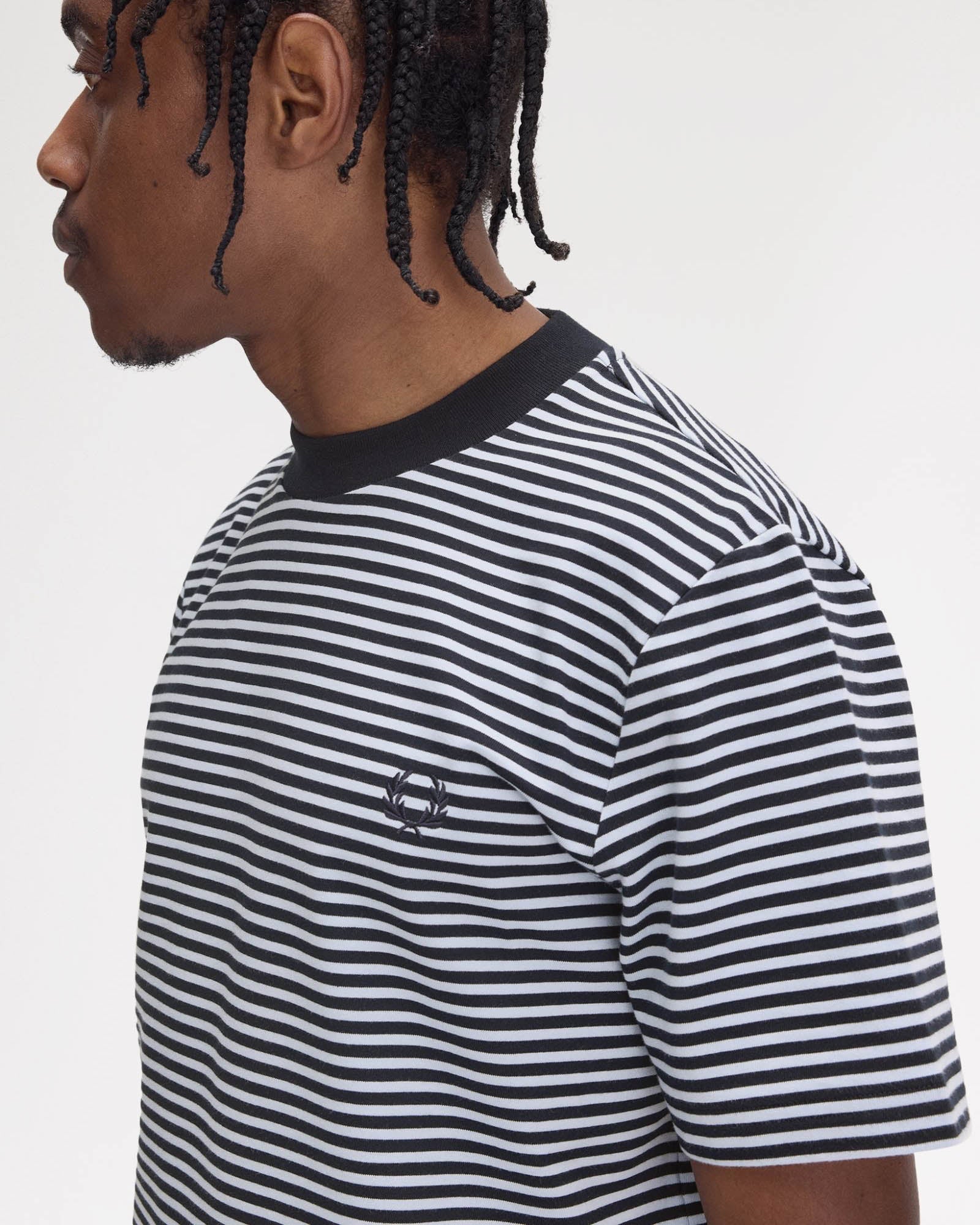 Fred Perry Mens Fine Stripe Heavyweight T-Shirt - Navy/Snow White 267 - Navy/Snow White 267