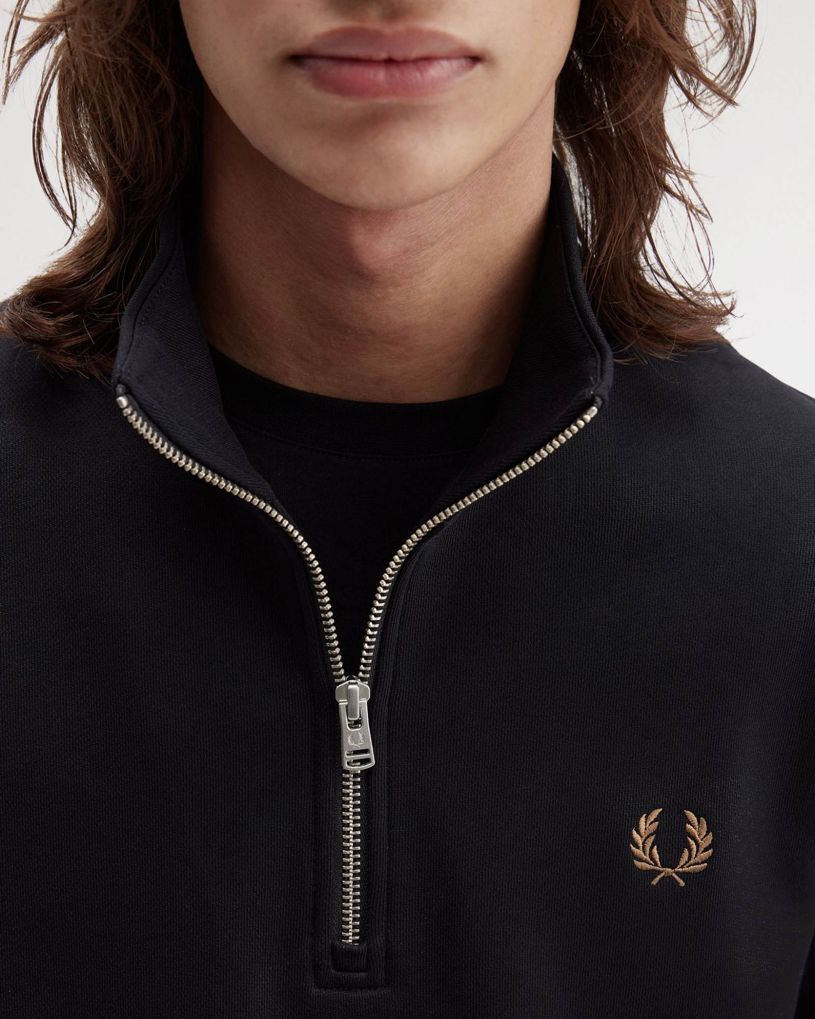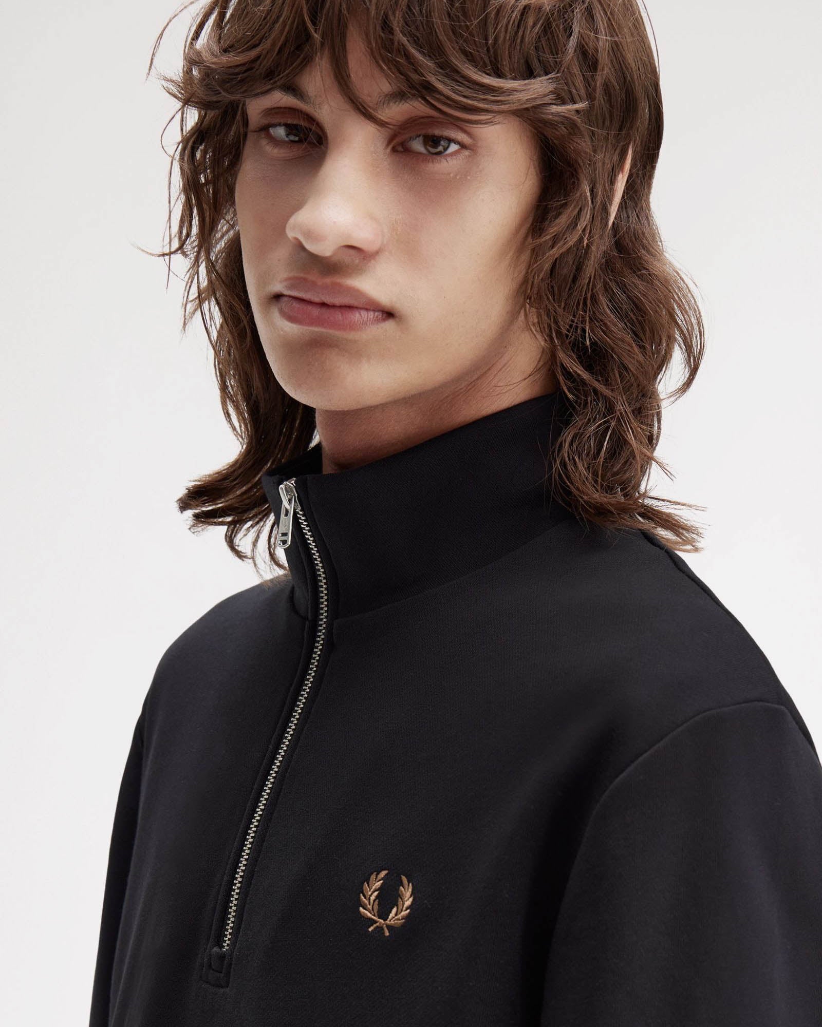 A stripped back Half Zip sweatshirt constructed from a cotton-rich blend and featuring signature Fred Perry detailing.