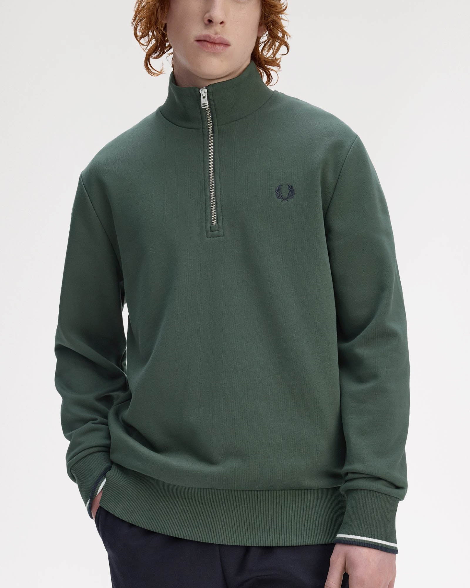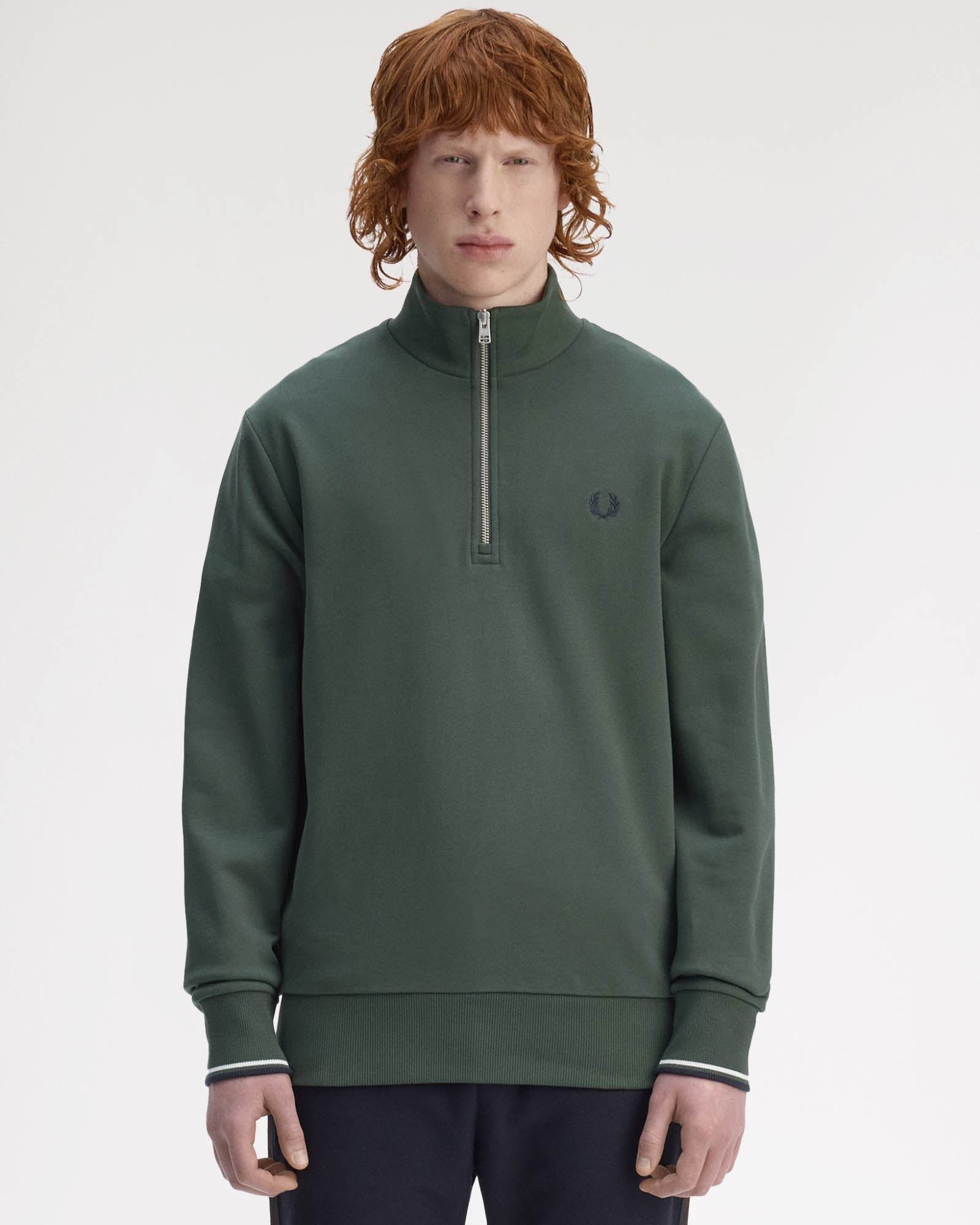 A perfect mid-point between relaxed casual wear and timeless sophistication, the Half-Zip sweatshirt is a versatile wardrobe staple that seems to be having a bit of a moment right now. Fred Perry's latest iteration of the Half Zip sweatshirt comes in a stripped back, minimalist design featuring their signature Laurel Wreath embroidery and twin tipped cuffs.
