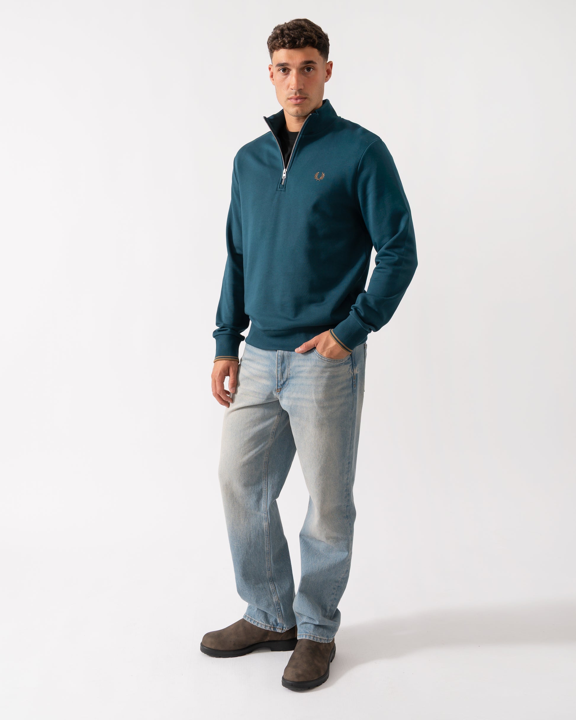 Fred Perry Mens Half Zip Sweatshirt - Dark Airforce/Light Ice/Bayleaf Z47 - Dark Airforce/Light Ice/Bayleaf Z47