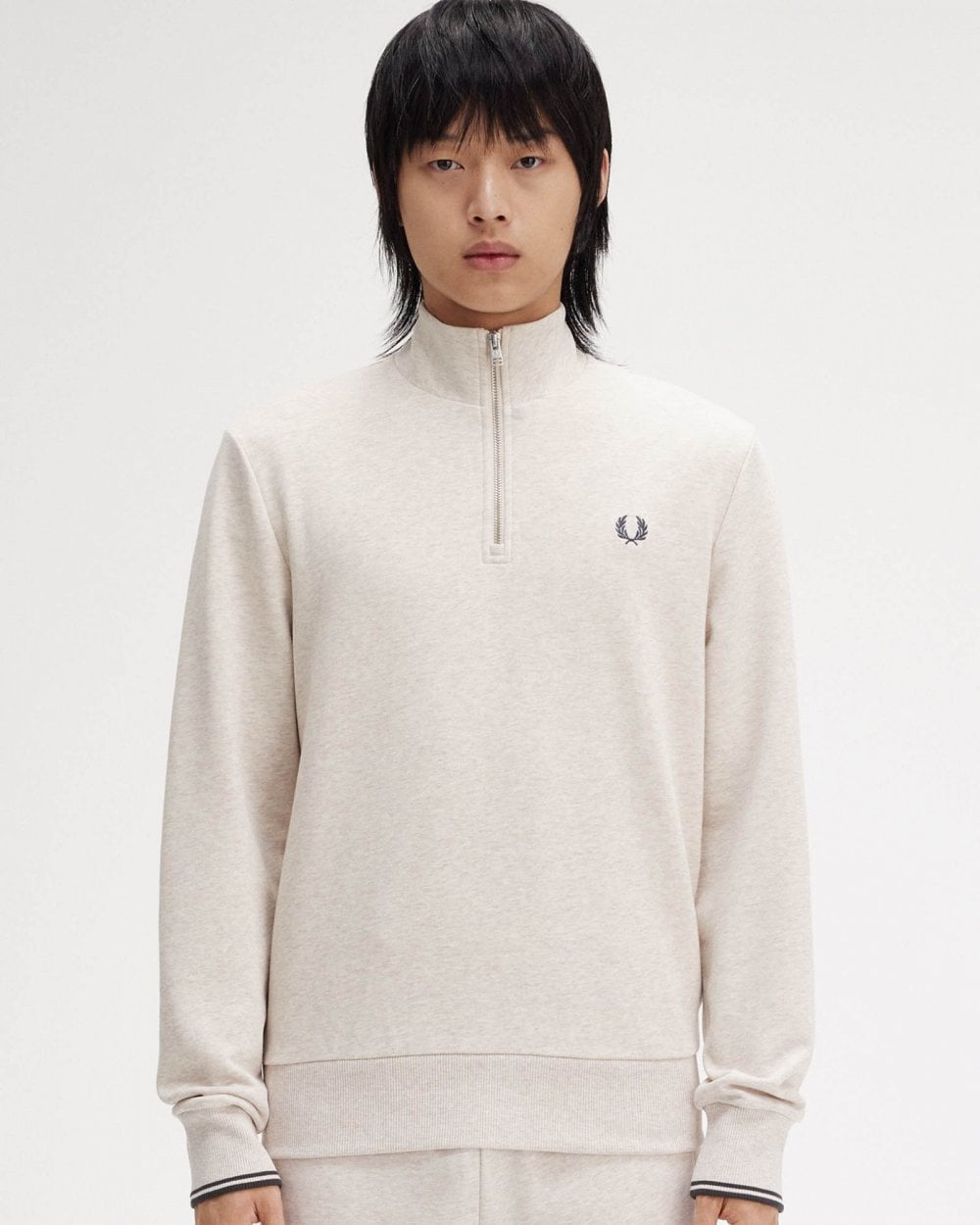 Fred Perry Mens Half Zip Sweatshirt in Porridge Marl/Anchor Grey W50