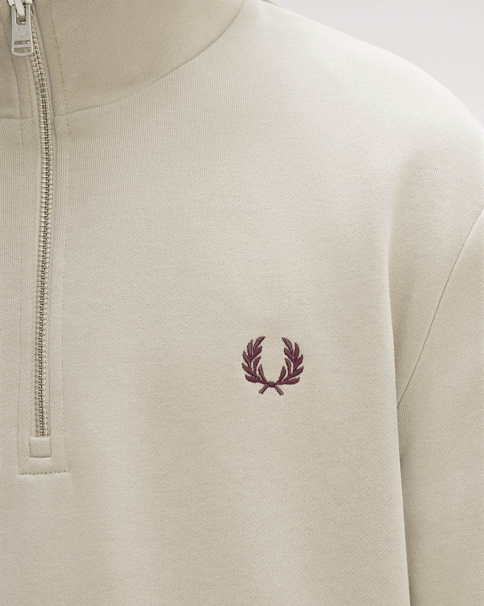 A perfect mid-point between relaxed casual wear and timeless sophistication, the Half-Zip sweatshirt is a versatile wardrobe staple that seems to be having a bit of a moment right now. Fred Perry's latest iteration of the Half Zip sweatshirt comes in a stripped back, minimalist design featuring their signature Laurel Wreath embroidery and twin tipped cuffs.