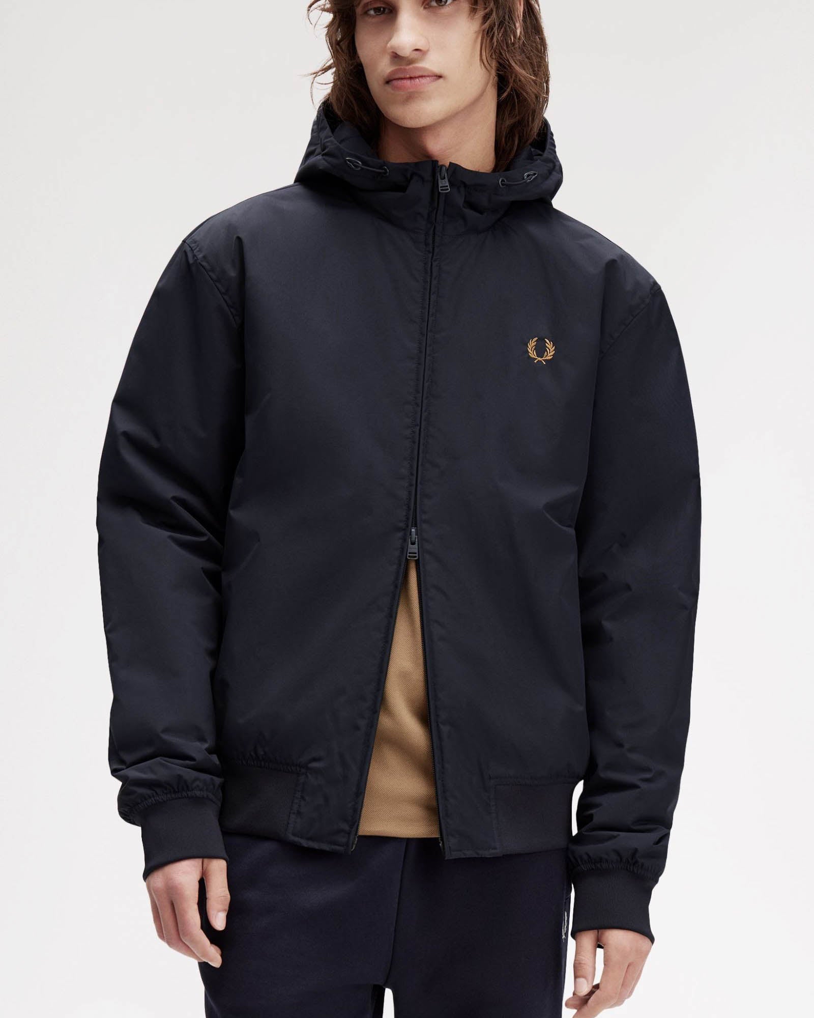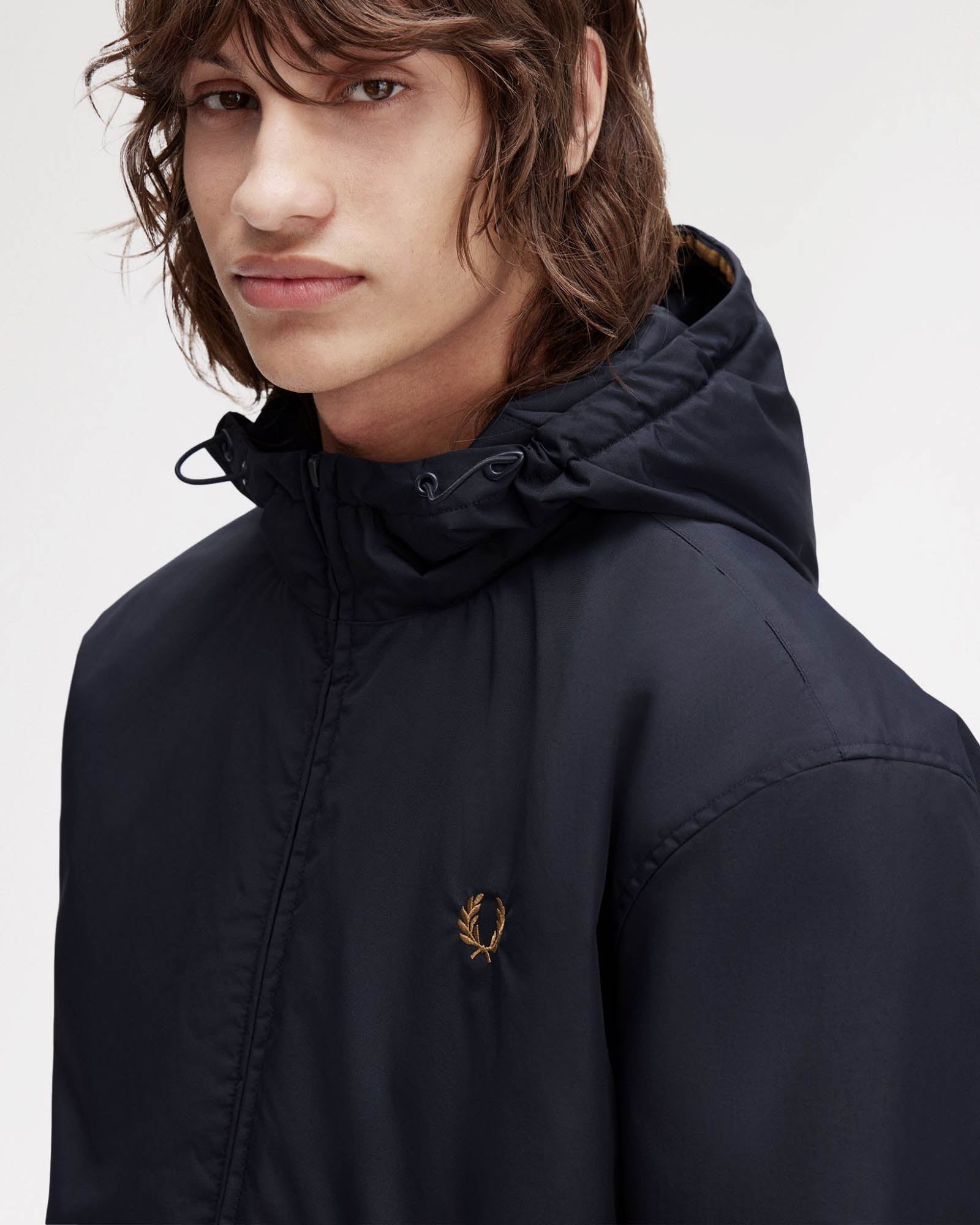 Based on traditional British outdoor gear, this variation of the Brentham jacket fuses sports styling with a dressed-up aesthetic. Taking its name from Brentham Tennis Club in West London where a young Fred cut his teeth on the court, this piece retains its classic ribbed trims, and gets a warmer composition with wadding to the body and sleeve and a mesh lined hood. Finishing touches take it to the next level, including a two-way branded zip, and a hood with Fred Perry's signature twin tipping at the edge.