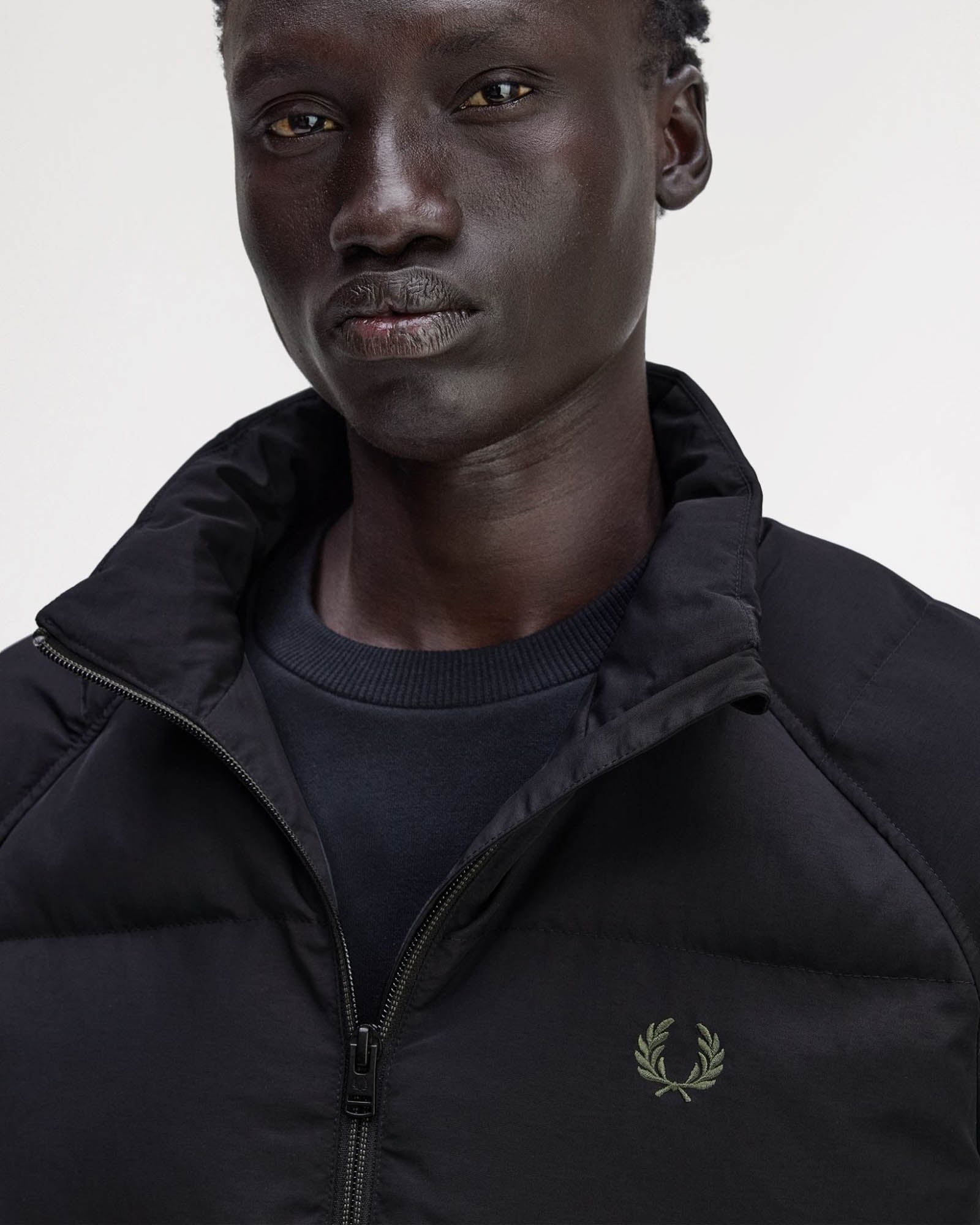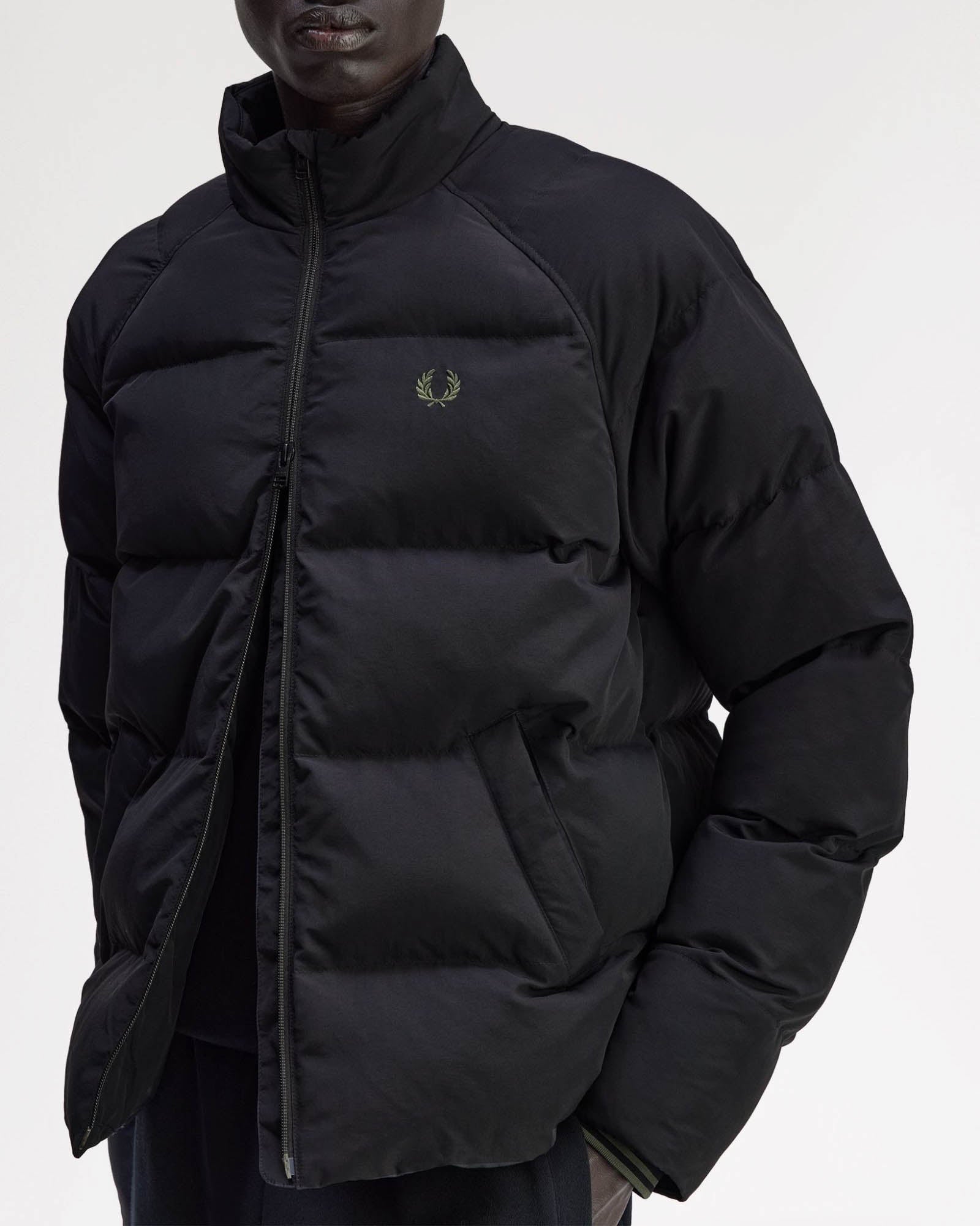 The puffer jacket has become a notable staple of city-street fashion, but this one translates seamlessly into proper outdoor gear. Crafted from durable, water-resistant, recycled Taslan, the interior is padded with large loose-fill baffles for insulation against sudden temperature drops. A raglan sleeve feels sporty and allows full movement, while the body fit feels boxy and slightly cropped. Finished with a funnel neck for extra warmth, a two-way zip with a Fred Perry's branded puller, and welt pockets to the sides.