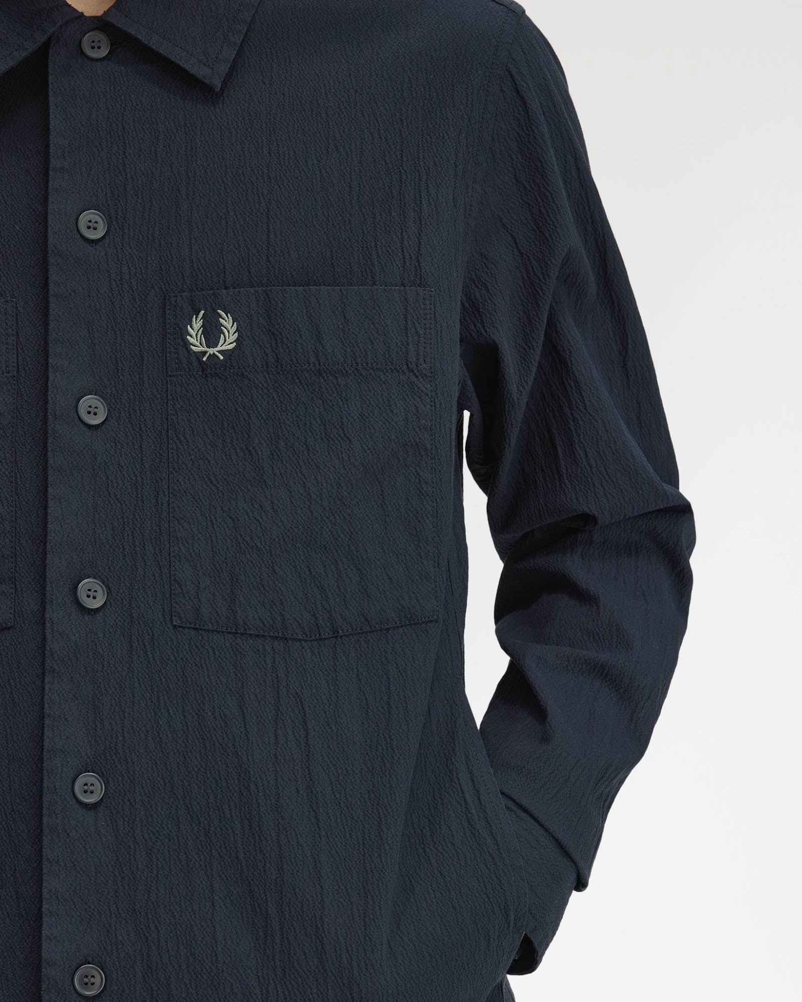 Mens Seersucker Overshirt - Navy 608