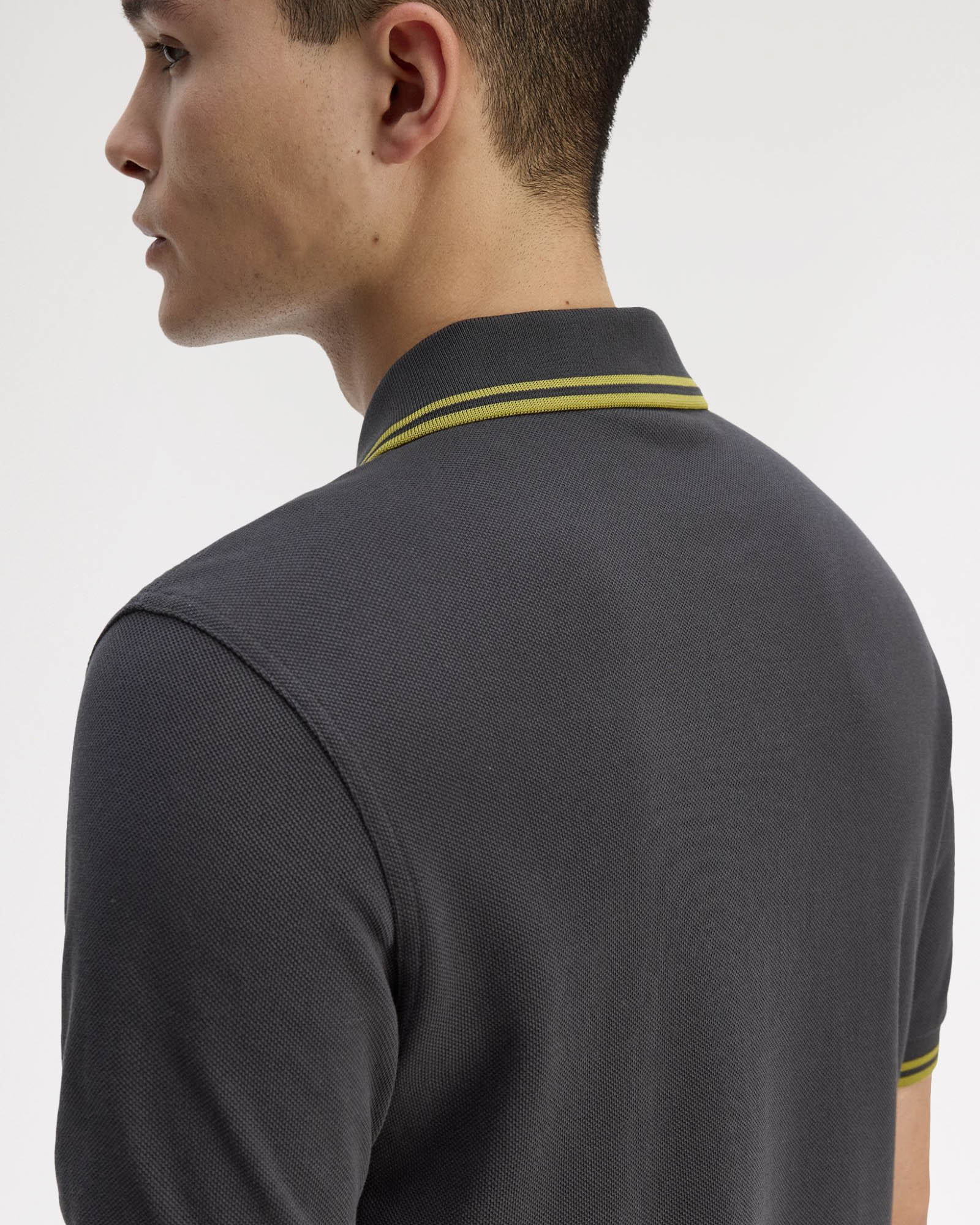 Mens Twin Tipped Signature Polo Shirt - Anchor Grey/Tennis Ball Yellow 58A