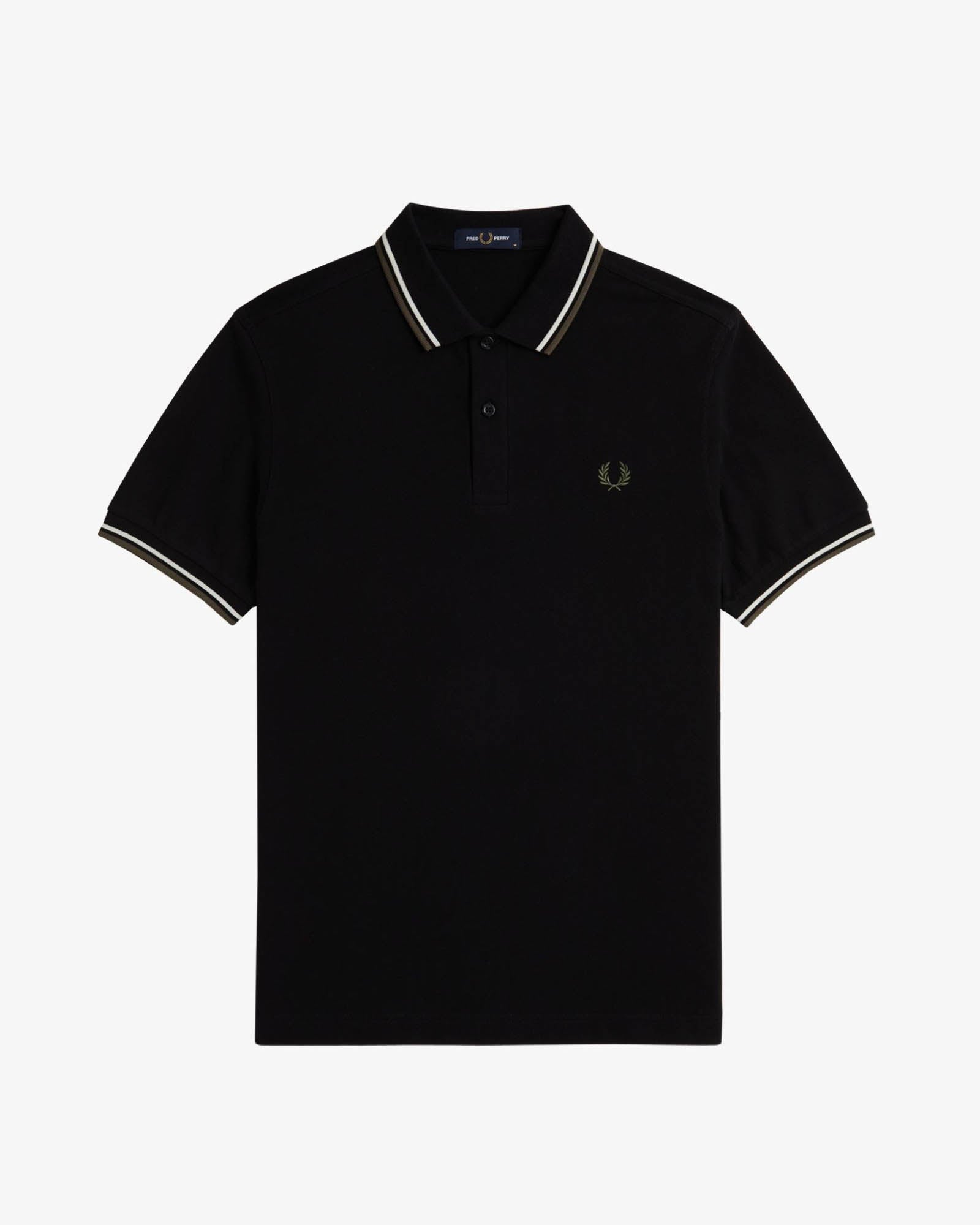 Fred Perry Mens Twin Tipped Signature Polo Shirt - Laurel Wreath Green/Black/Black Z50 - Laurel Wreath Green/Black/Black Z50