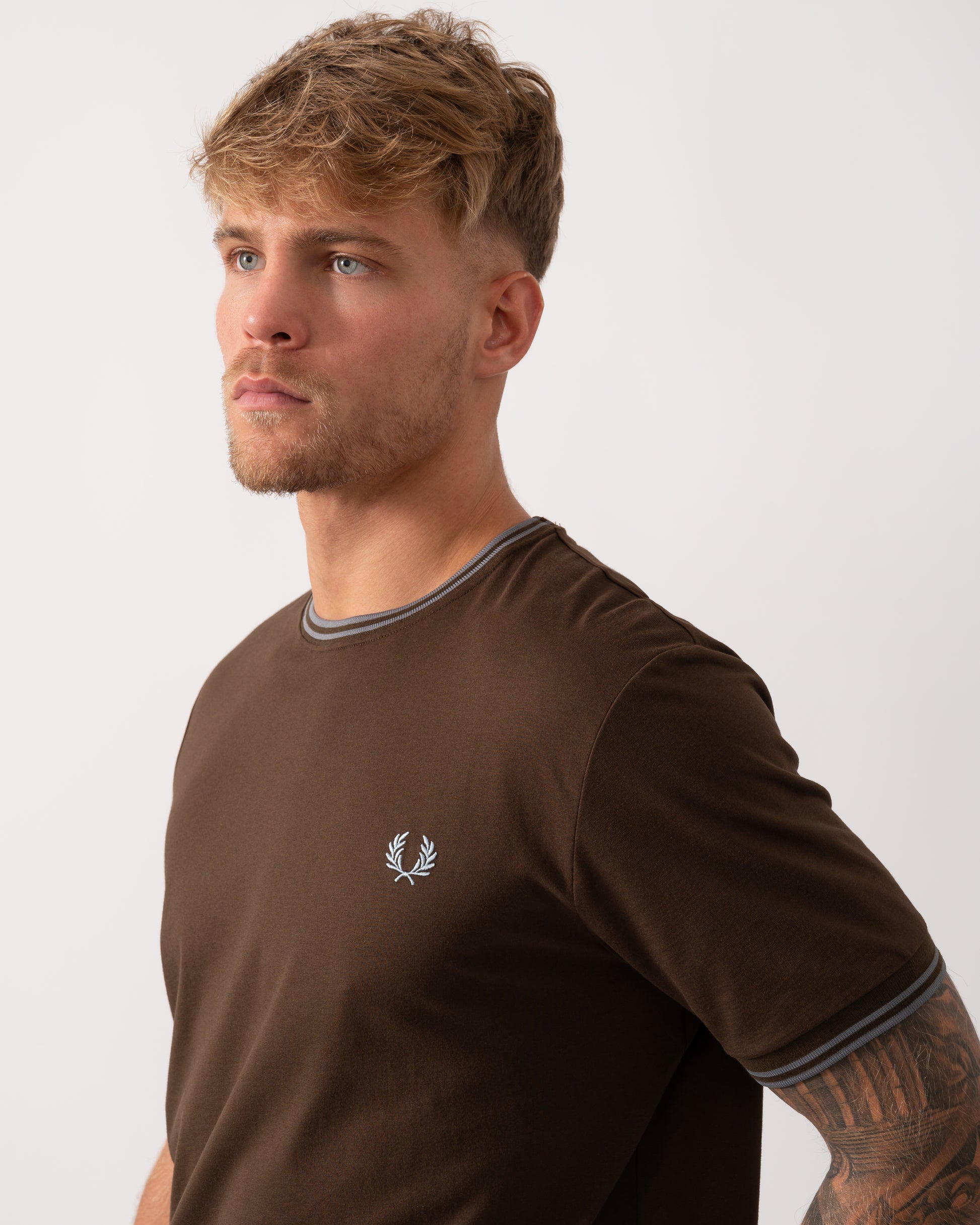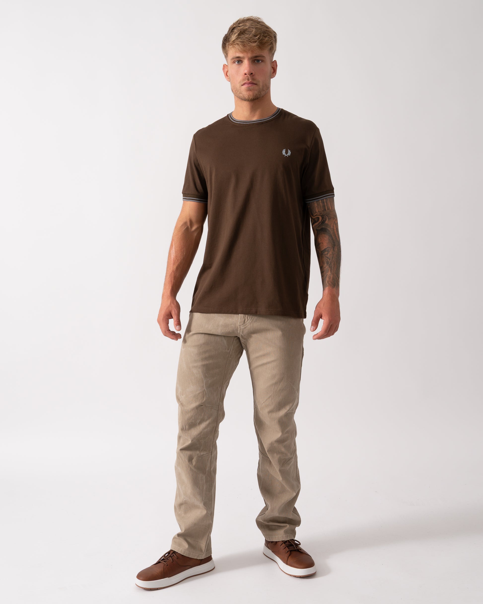 Fred Perry Mens Twin Tipped T-Shirt - Oatmeal/Warm Stone/Shaded Stone Z53 - Oatmeal/Warm Stone/Shaded Stone Z53