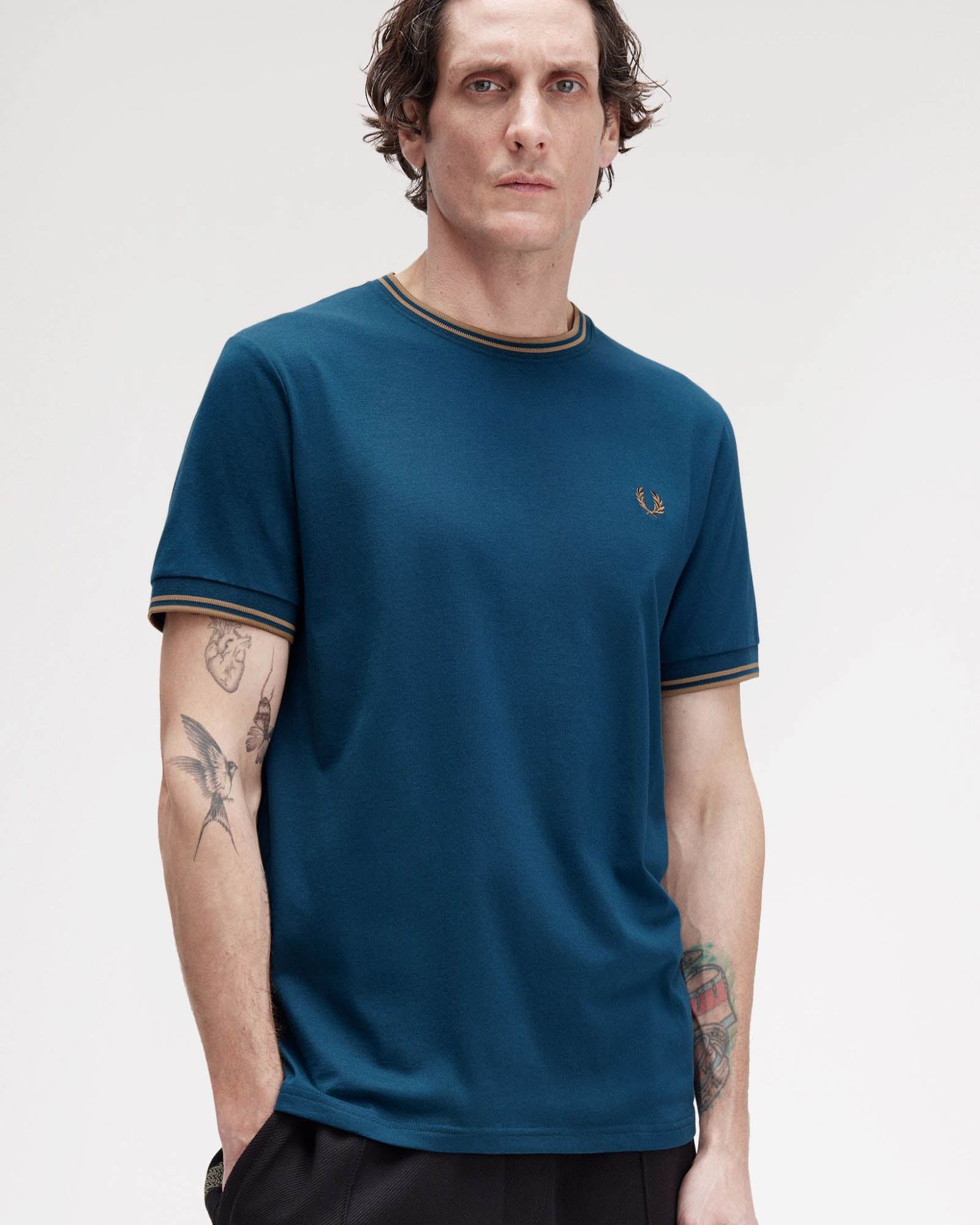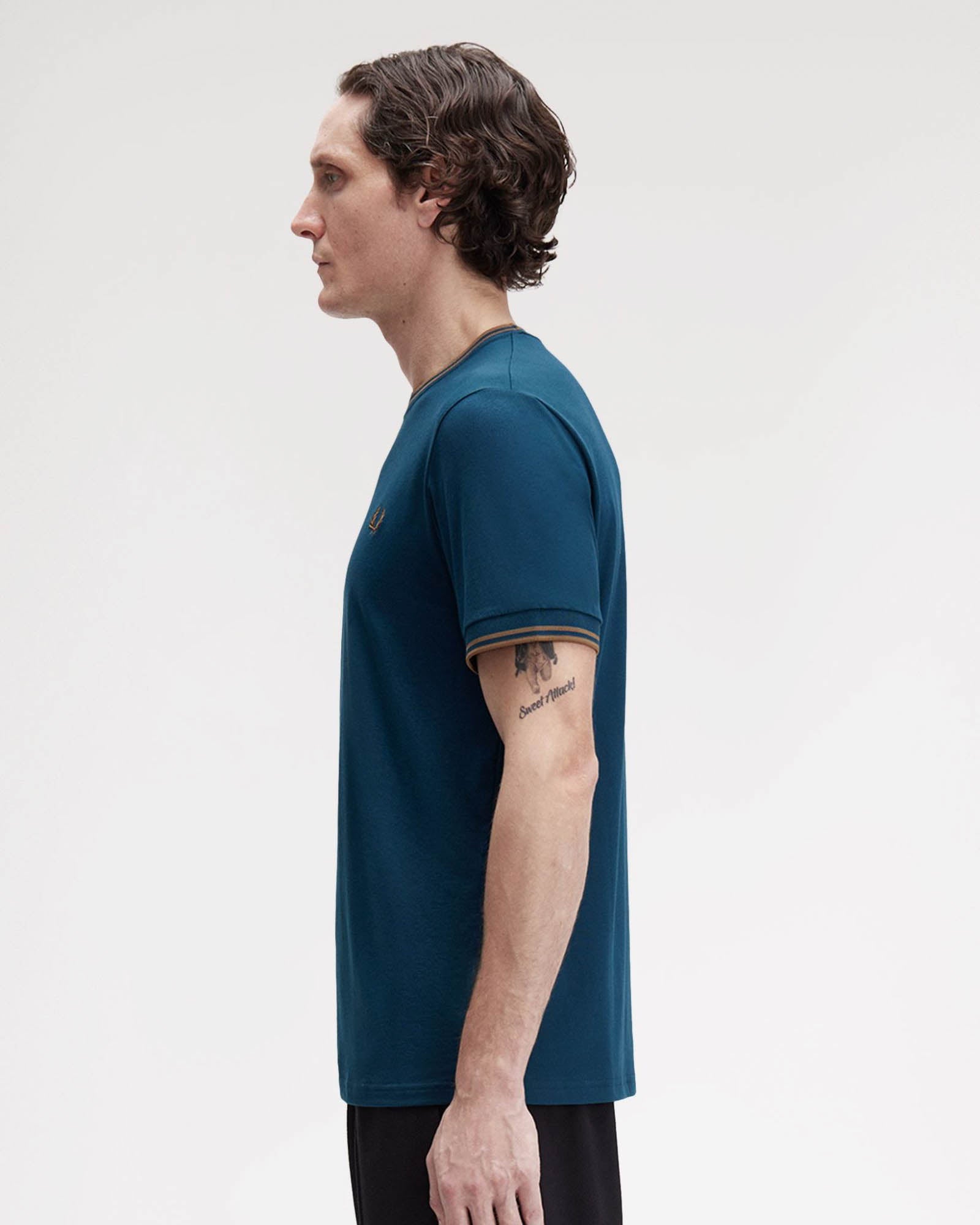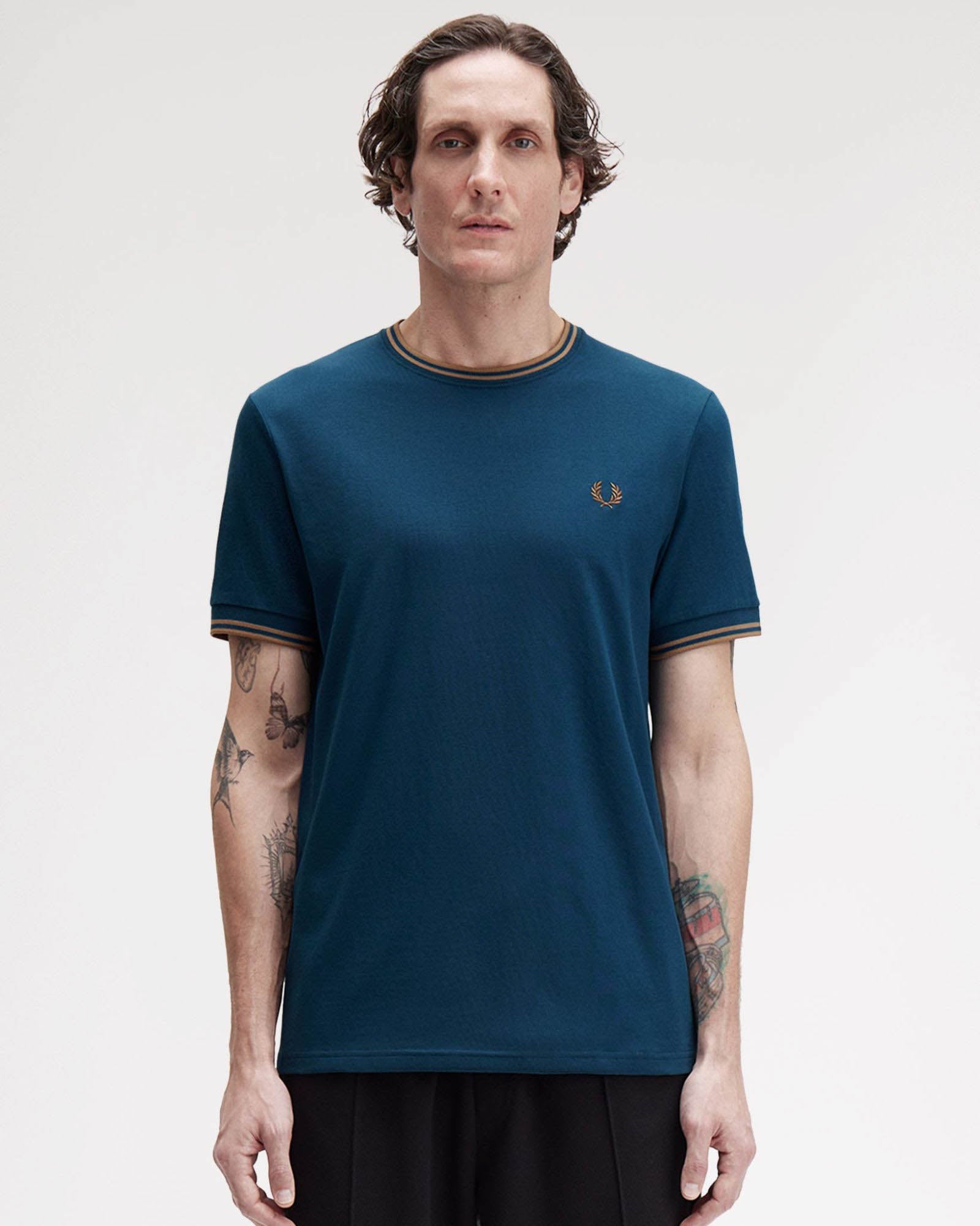 Fred Perry Mens Twin Tipped T-Shirt - Dark Airforce/Light Ice/Bayleaf Z47 - Dark Airforce/Light Ice/Bayleaf Z47