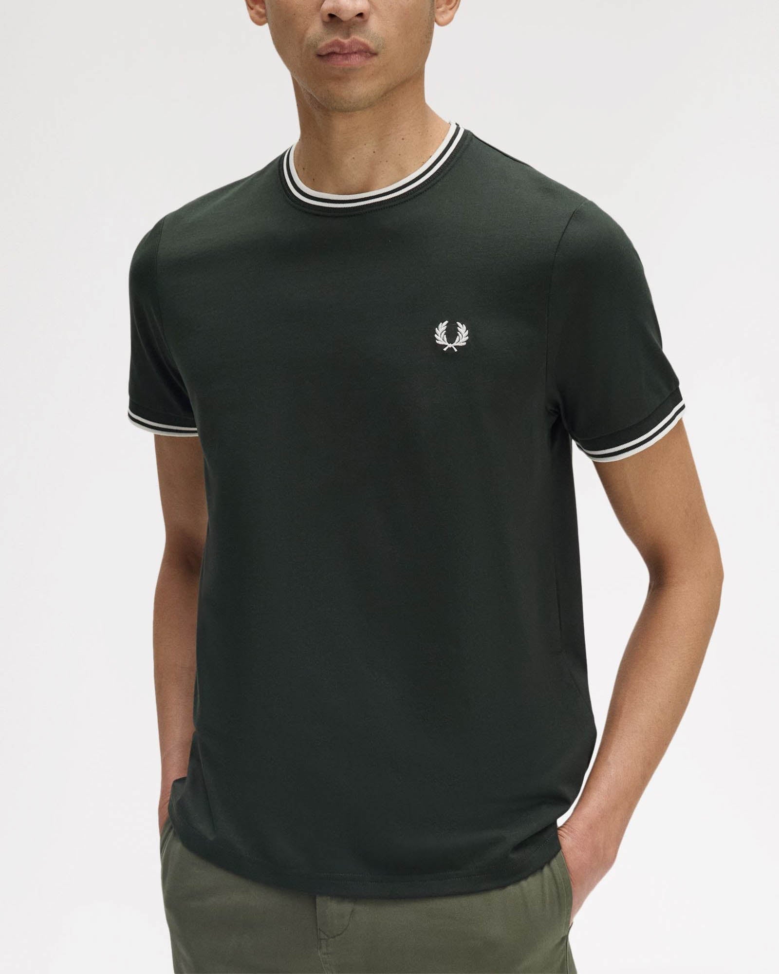Fred Perry Mens Twin Tipped T-Shirt - Laurel Wreath Green/Black/Black Z50 - Laurel Wreath Green/Black/Black Z50