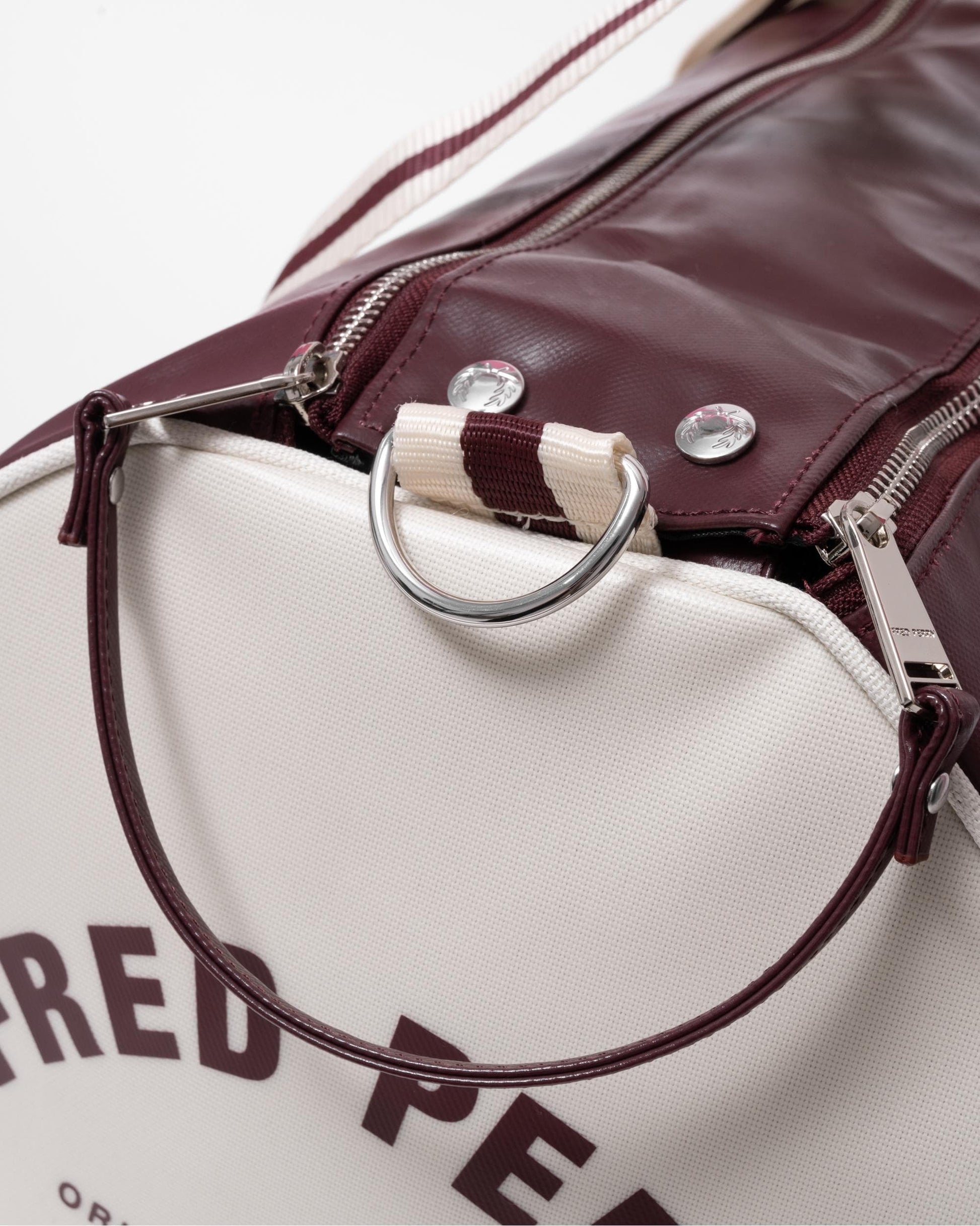 Fred Perry Recycled Polyester Classic Barrel Bag in Oxblood/Ecru R82