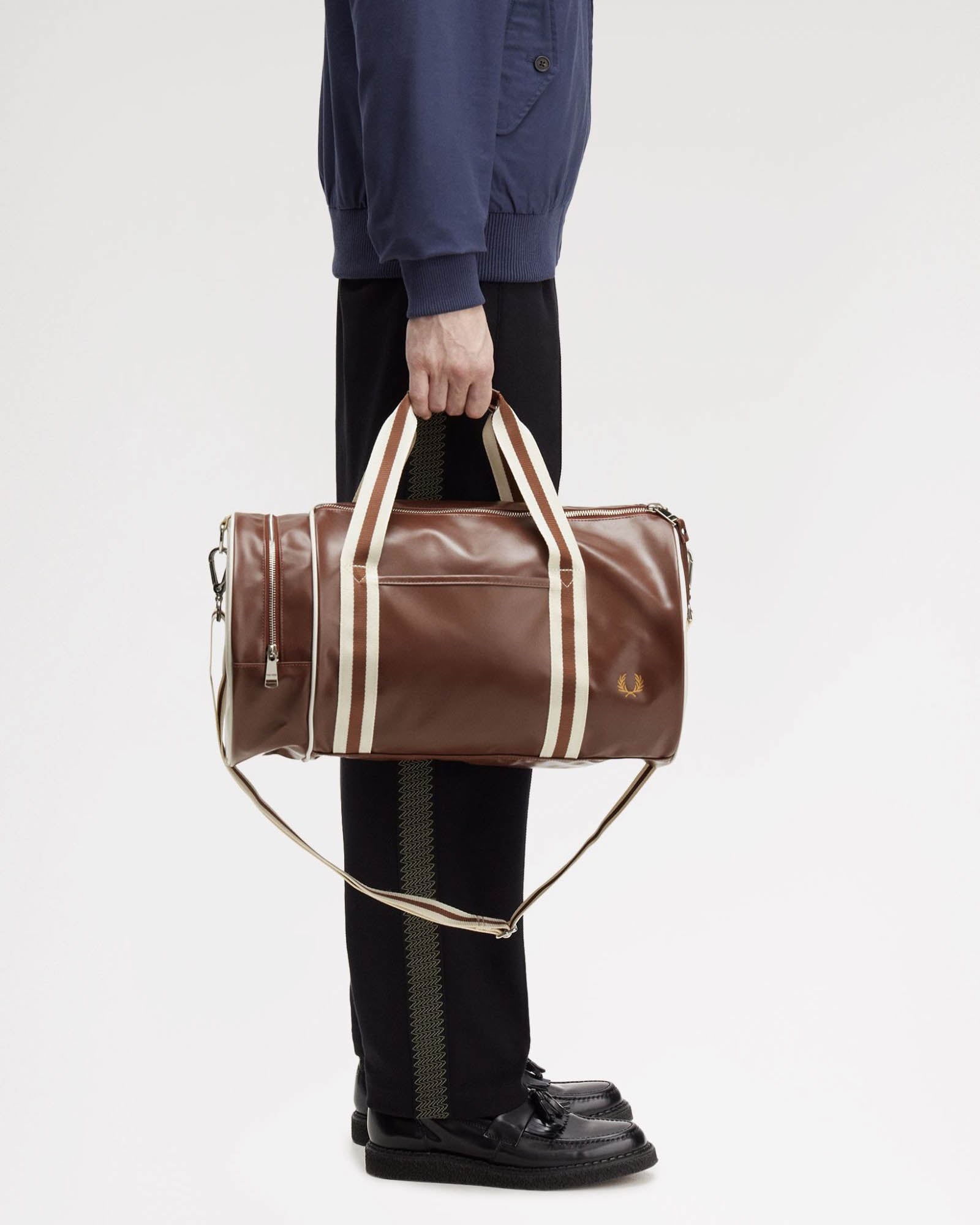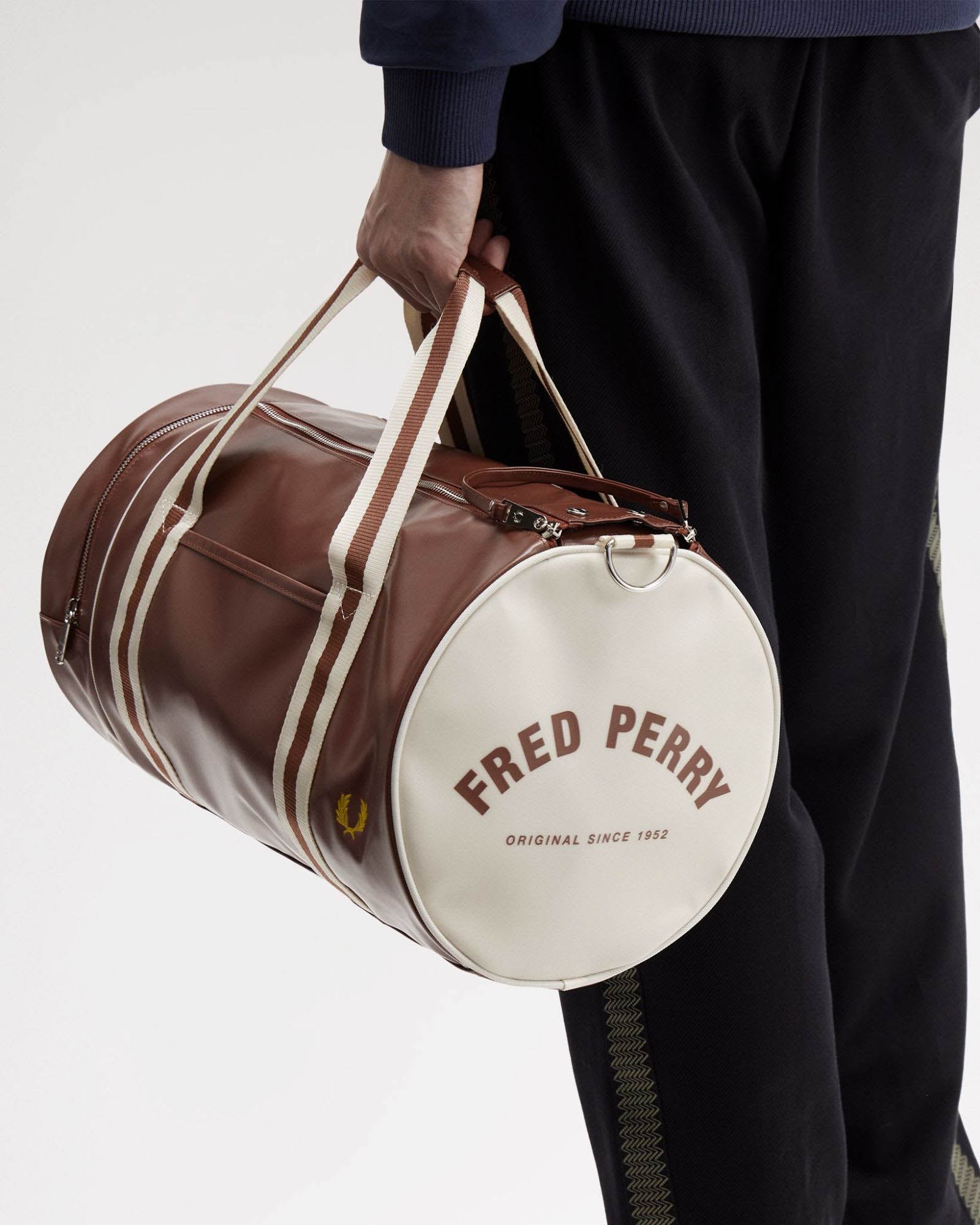 An essential for sports players, gym-goers and commuters alike, our barrel bag is built with serious resistance to wear and tear, secure pockets for all your gear, and signature Fred Perry details.