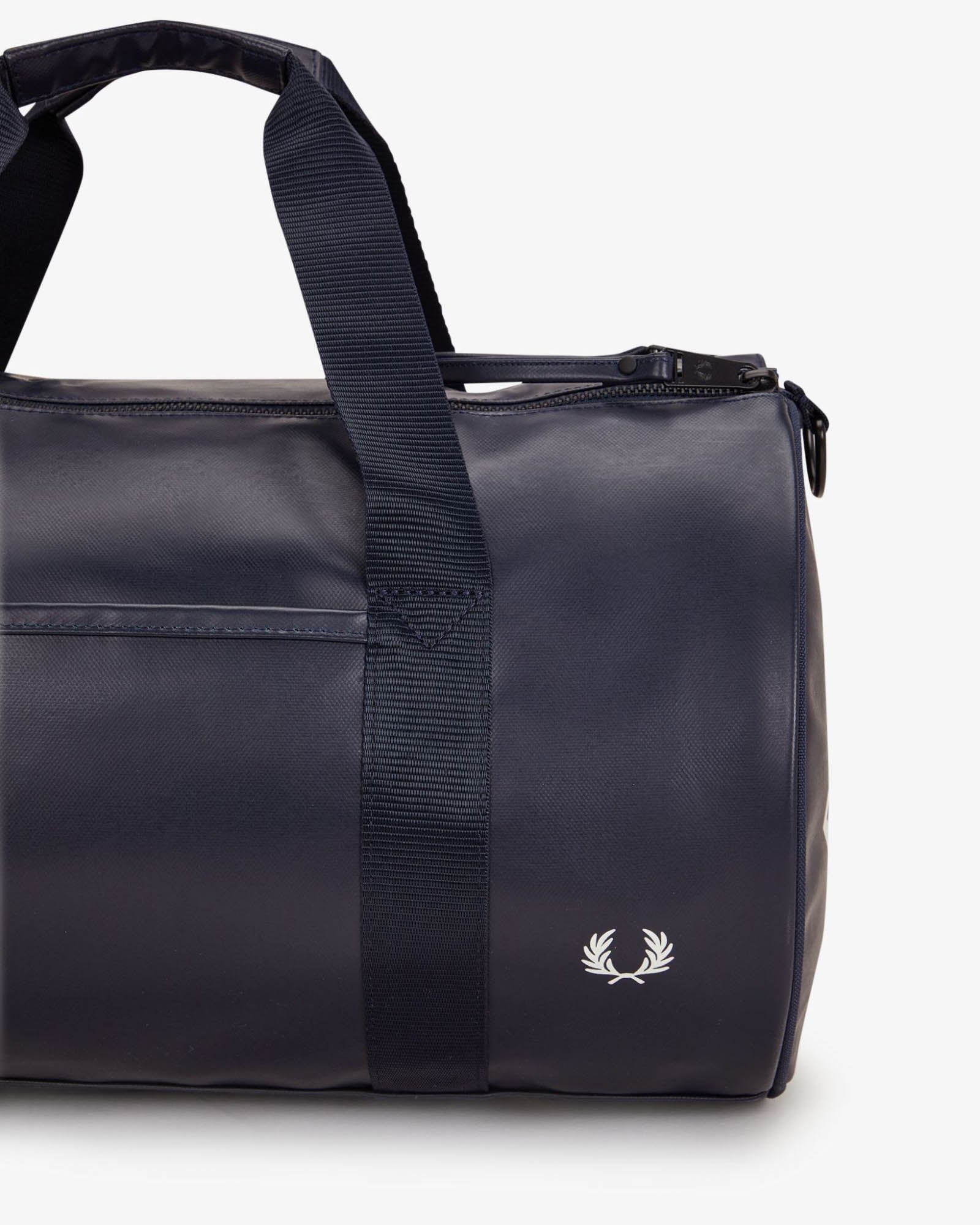 Now constructed from fully recycled polyester and coated in TPU which makes it water, UV, and abrasion resistant, the classic Fred Perry barrel bag gets even more time added to its long shelf life.