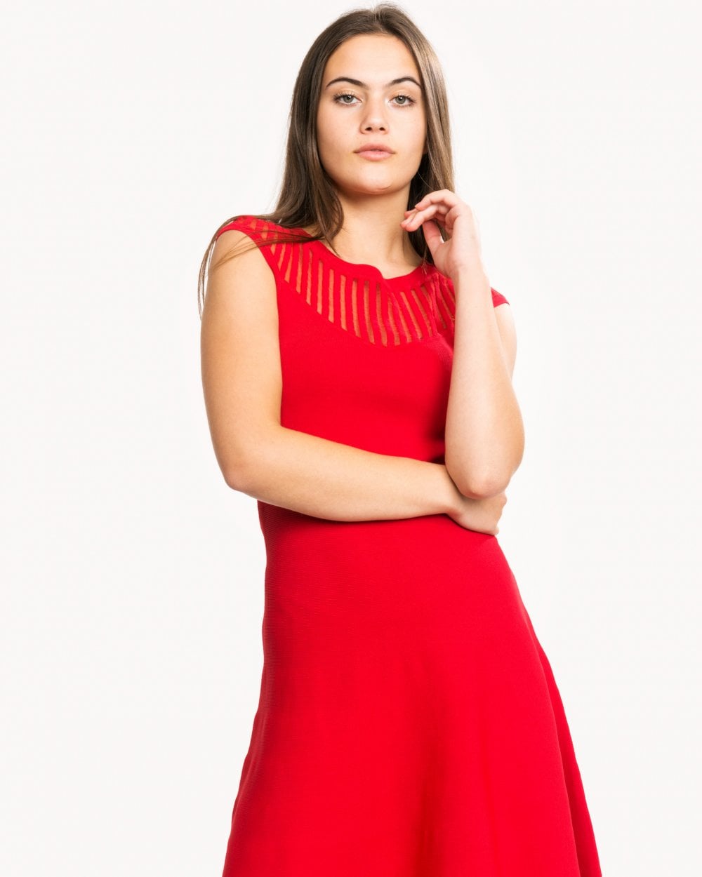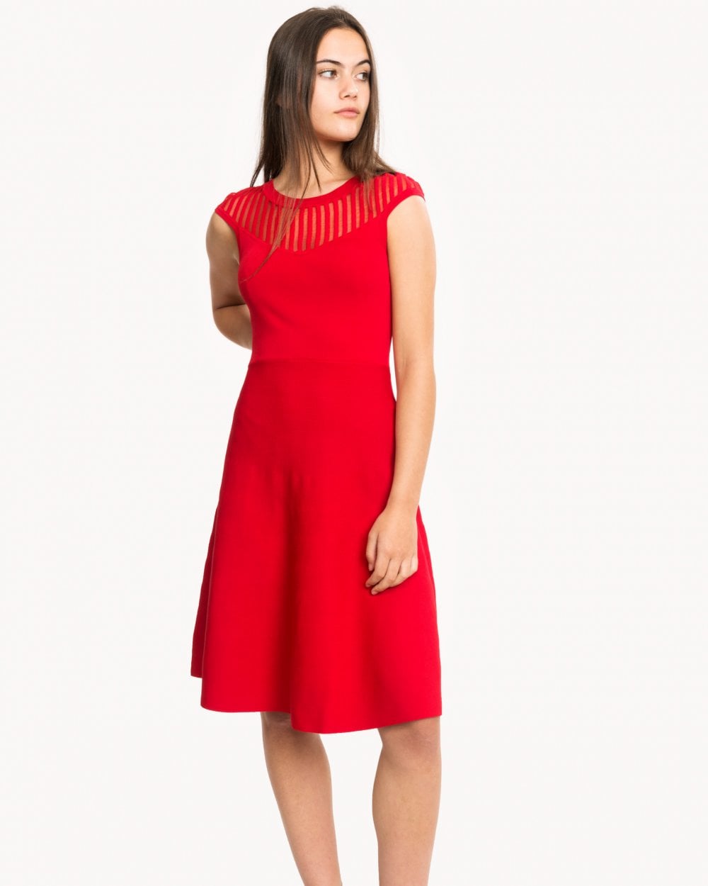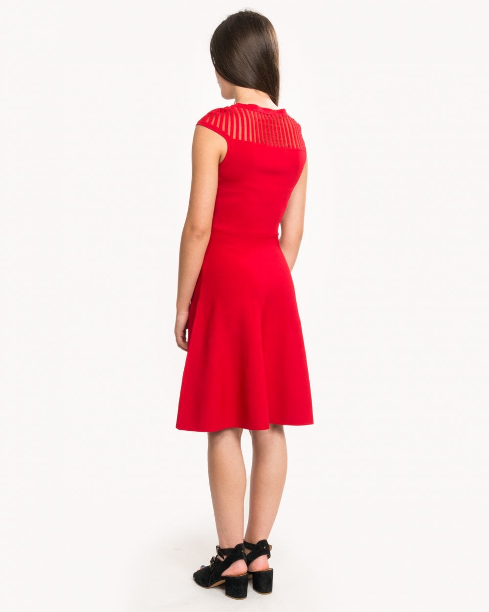 Rose Crepe Knits Capped Sleeve Round Neck Flr