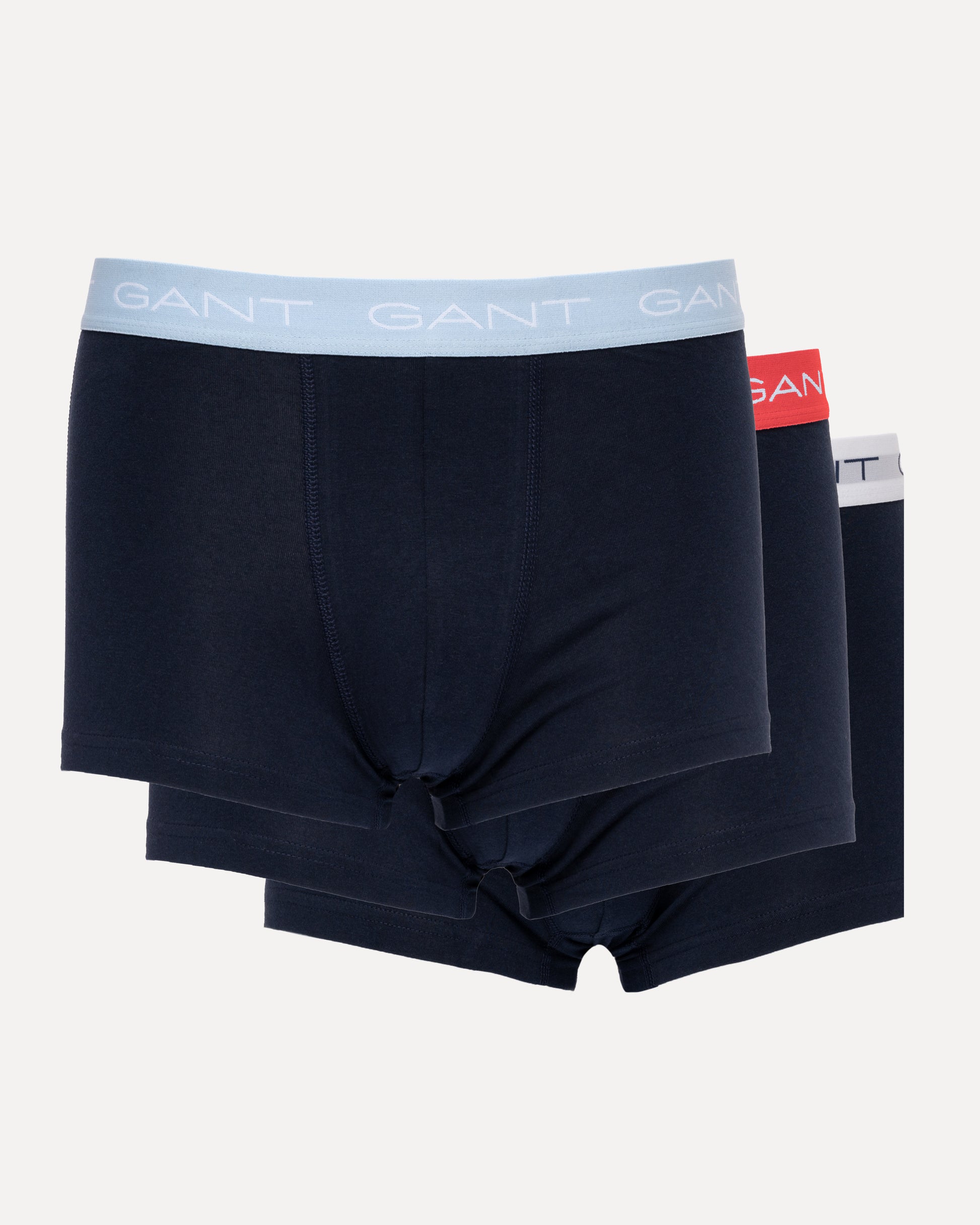 GANT 3-Pack Mens Trunks with Mixed Colour Waistbands - 433 Evening Blue - 433 Evening Blue