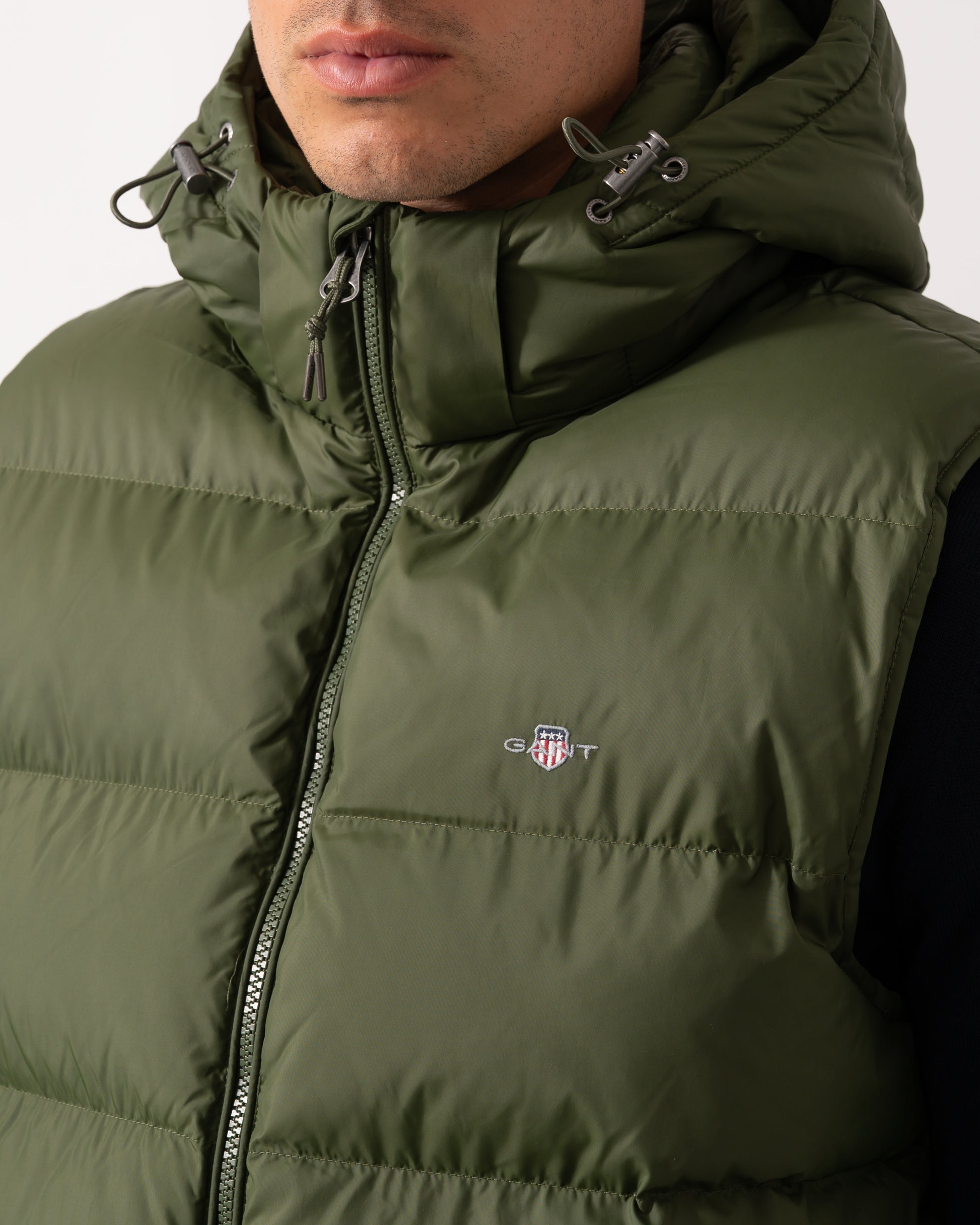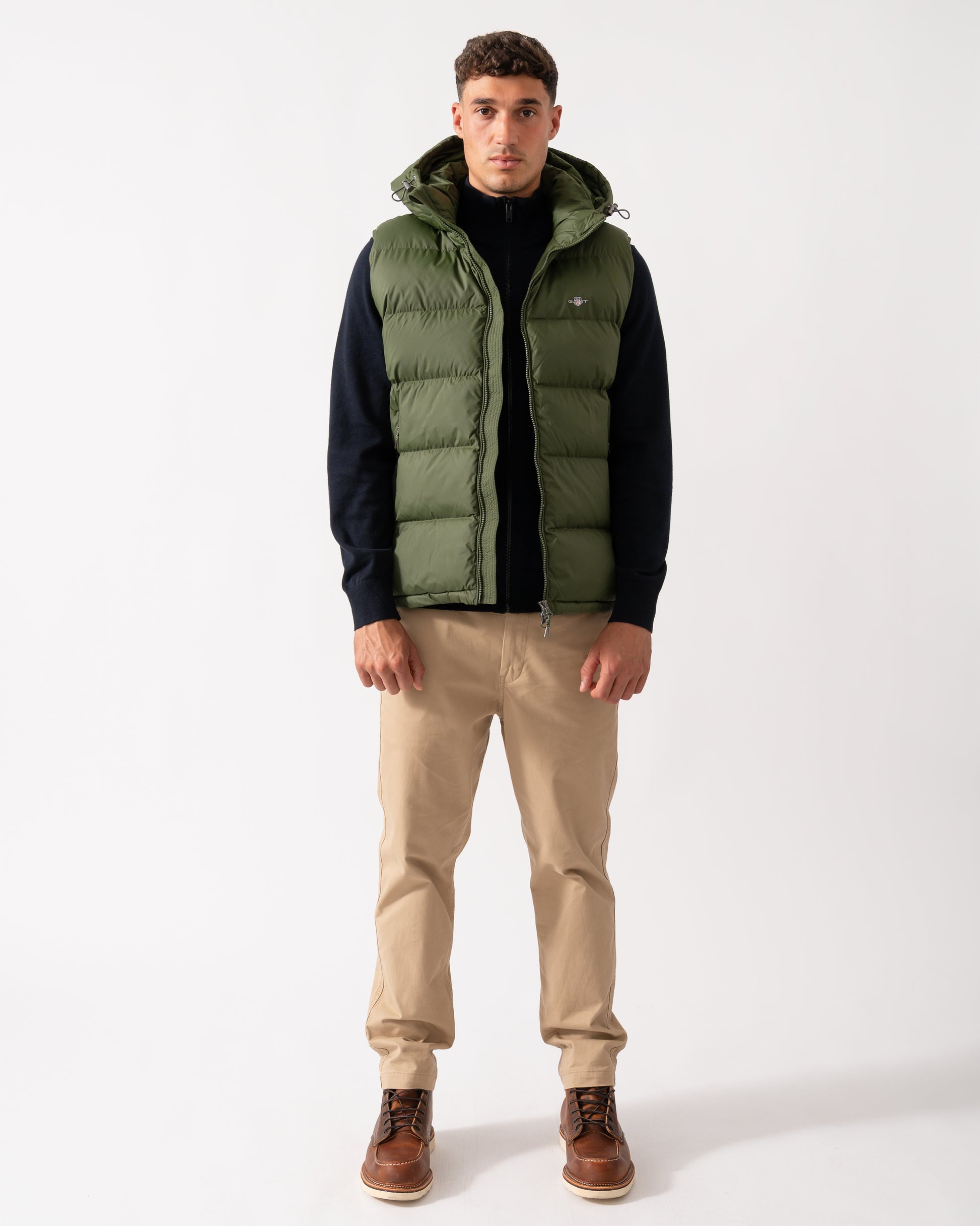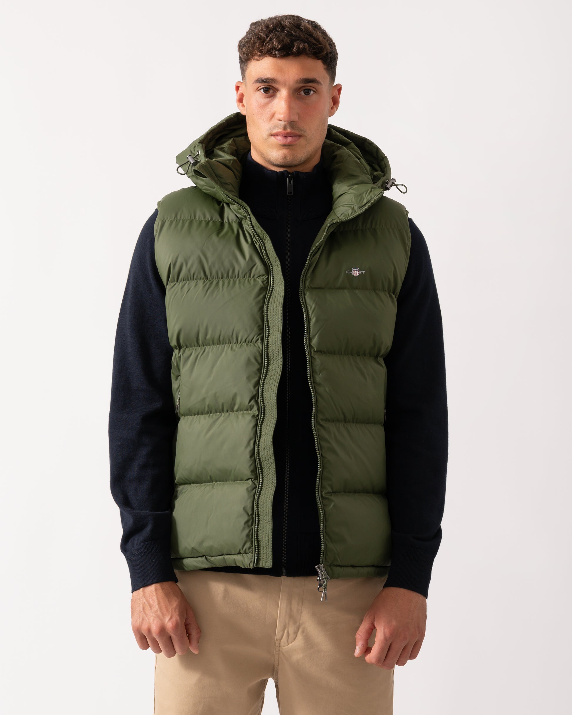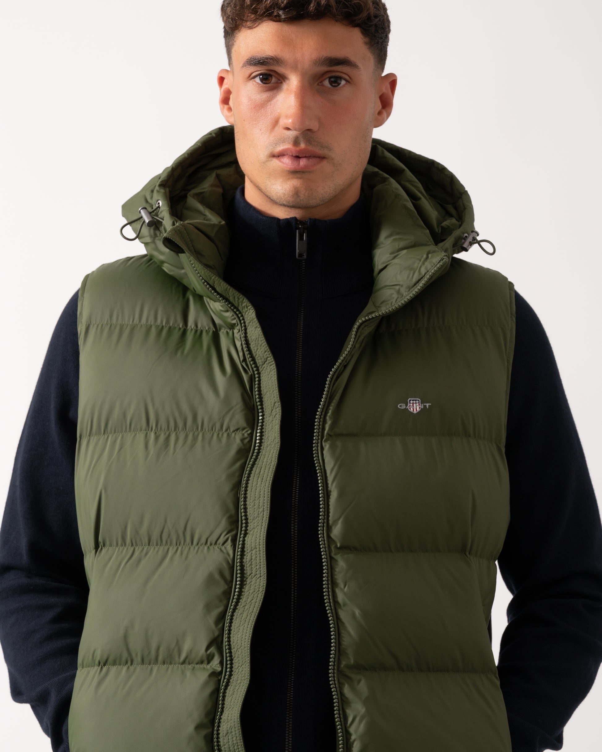 Ideal for days spent outdoors, the Active Cloud Vest from GANT is designed with a regular fit and hip-length cut. Treated with a water-repellent finish, it help protect against the elements. With a puffer vest design, it features a fully lined padded interior for warmth, a detachable hood, and slanted side zip pockets for convenience. The vest is completed with a sleek front zip closure and a GANT shield graphic at the chest for a stylish touch. This product is made with recycled polyester, aligned with GANT's sustainability strategy to support circularity.